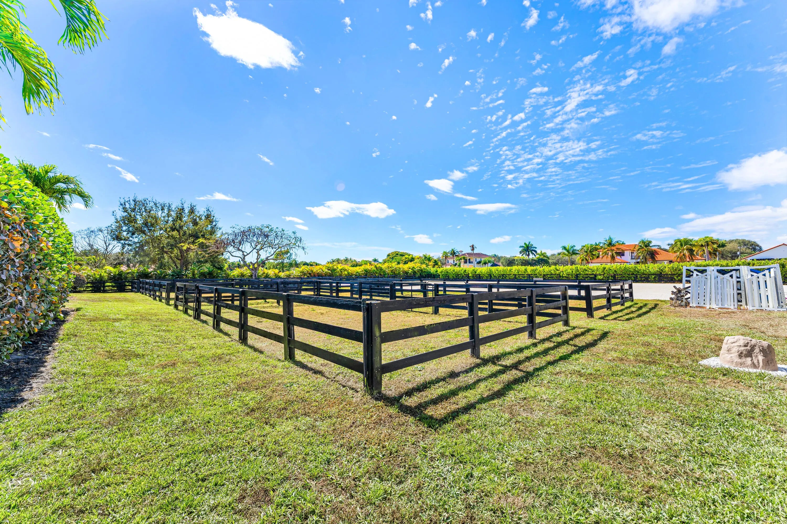 Listed price is per dry stall, per month, for annual lease. Exceptional annual rental opportunity in desirable Paddock Park! This well-maintained equestrian farm features 8 stalls, 6 paddocks, and a 100' x 200' riding ring with a full set of jumps. The hurricane-proof CBS center-aisle barn offers rubber-matted stalls, fans, and automatic waterers throughout. Situated on a corner lot with direct access to the bridle path, this property provides both convenience and privacy for serious riders and trainers. Ideal for daily training, the property also includes a studio apartment with a full bathroom and laundry, offering convenient on-site living.