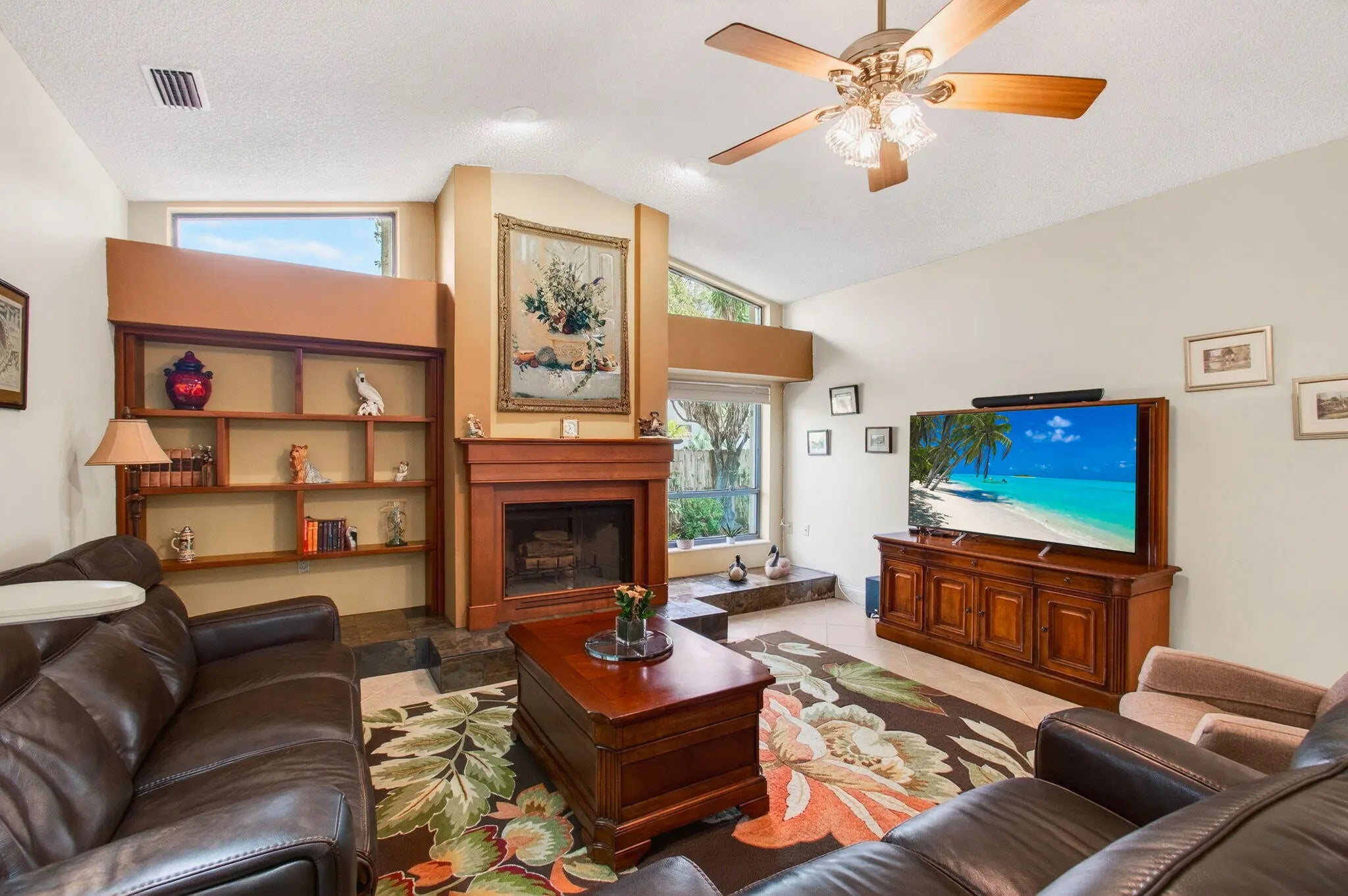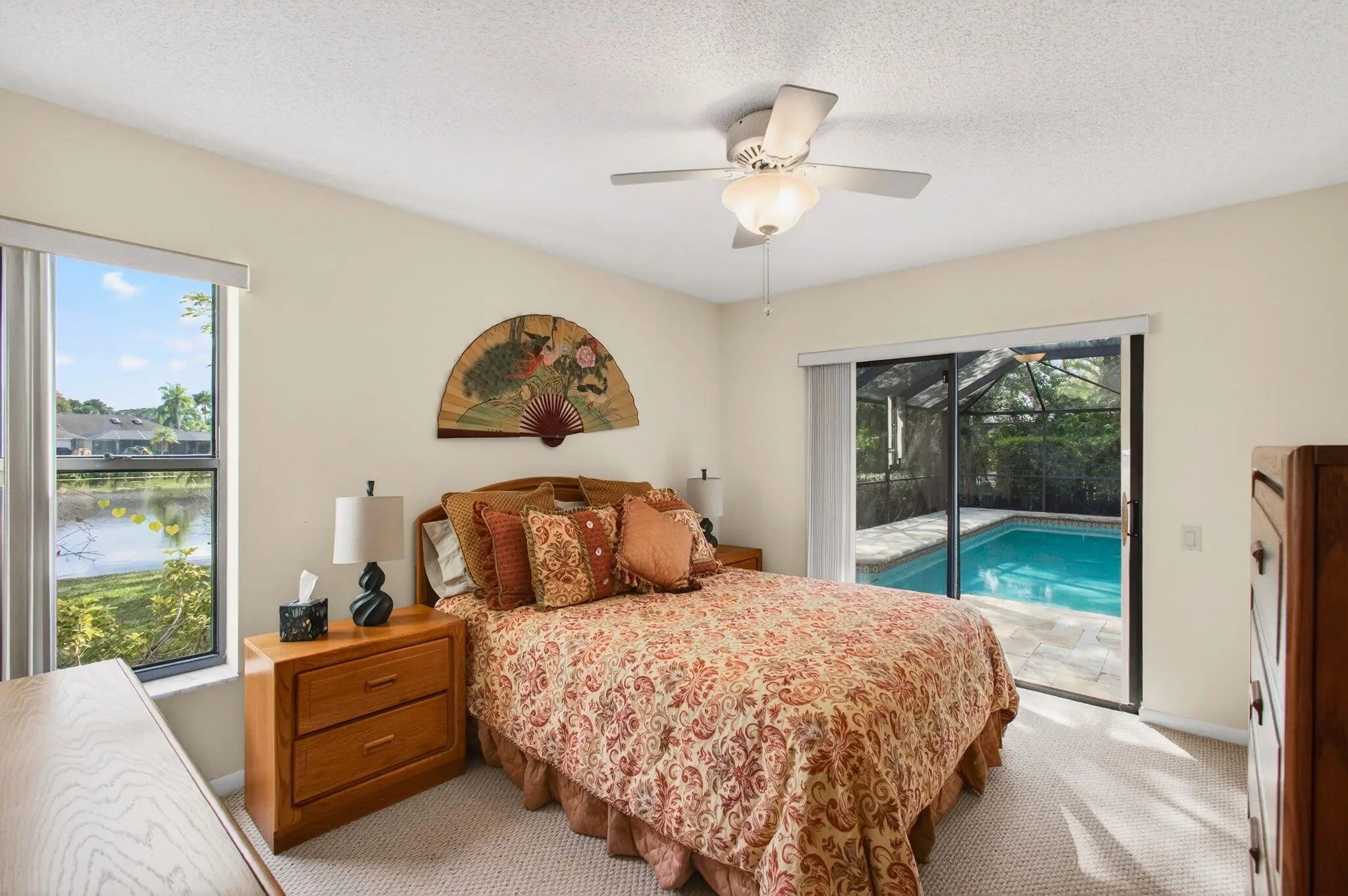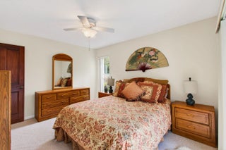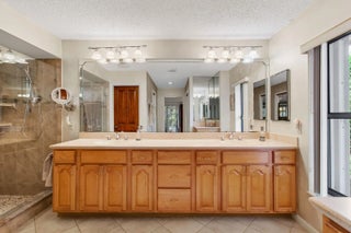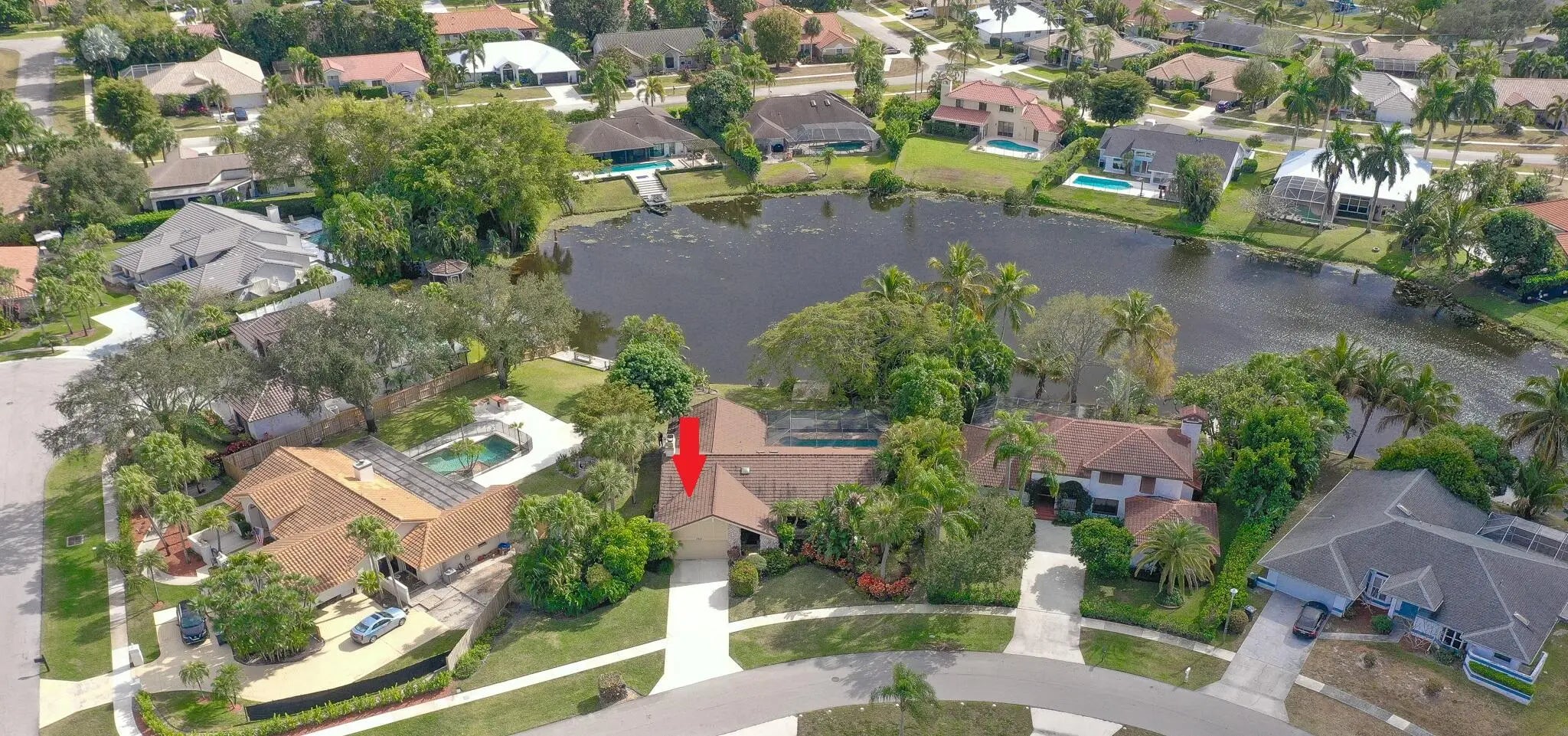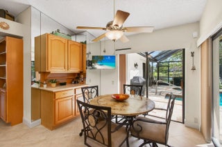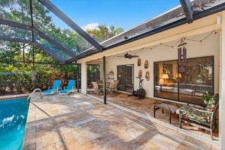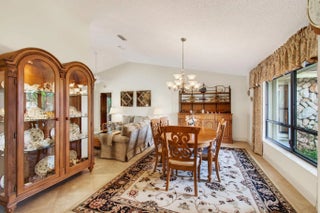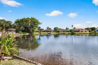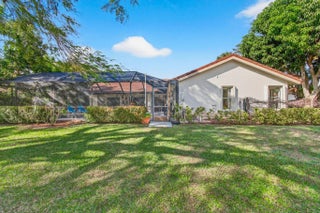 Hidden behind lush, mature landscaping and offering complete privacy, this LAKEFRONT Greenview Shores home delivers a rare sense of tranquility in Wellington-NO HOA and a dedicated area for your BOAT or RV. The four-bedroom residence features a large, screened pool with marble decking, a private dock accented by a magnificent Royal Poinciana, expansive green space, and a large, covered patio with accordion shutters that allow the space to be easily enclosed-ideal for effortless furniture storage while traveling. As you enter through the impact-rated double fiberglass doors with elegant decorative glass, you are welcomed into a bright and flexible living and dining area. The current layout features a spacious dining room with the ability to expand, while the living room captures beautiful views of the lush backyard and lake beyond. When this quality Ruttenberg home was thoughtfully renovated years ago, quality finishes were selected throughout-choices that have stood the test of time. The kitchen offers abundant maple cabinetry, glass cabinets, Corian countertops, pull-outs, a Lazy Susan, under-cabinet lighting, and stainless-steel appliances including a slide-in range, French-door refrigerator, and wine refrigerator. Numerous sliders throughout the home create a seamless connection to the outdoor living areas and highlight the tranquil lakefront setting. The primary suite features sliders opening directly to the covered patio-an ideal spot to enjoy morning coffee overlooking the water. Two closets and a spacious primary bath complete the suite, featuring an upgraded shower, enhanced tilework, a seamless glass enclosure, and generous cabinetry and counter space that continues the cohesive maple cabinetry found throughout the home. Adjacent to the guest bedroom wing, a large family room offers a welcoming gathering space with a wood-burning fireplace, vaulted ceilings accented by transom windows, and an inviting atmosphere for everyday living or entertaining. The guest bedrooms are in their own separate wing, allowing for excellent privacy, and can be closed off with pocket doors-ideal for guests or multi-generational living. Two of the guest bedrooms enjoy views of the lake or pool. The guest bath also serves as a cabana bath and features upgraded tile and listello detailing. The laundry room is equipped with cabinetry, a sink, and a built-in pull-down ironing board. The oversized garage includes built-in cabinetry and shelving, along with a convenient side service door. Additional features include solid wood interior doors, three hurricane-rated skylights that bring in abundant natural light, mature mango tree, star fruit tree, banana trees, accordion shutters, front screened-in porch, an RV plug on the side of the home, pump to the lake for sprinkler, and two outdoor storage sheds. Ideally located in the heart of Wellington, this home is close to world-class equestrian venues, hospitals, shopping, dining, A-rated schools, and is just a short golf cart ride to everyday conveniences. This impeccably maintained residence reflects true pride of ownership and offers a rare combination of privacy, flexibility, and location. Opportunities like this in Greenview Shores are seldom available.