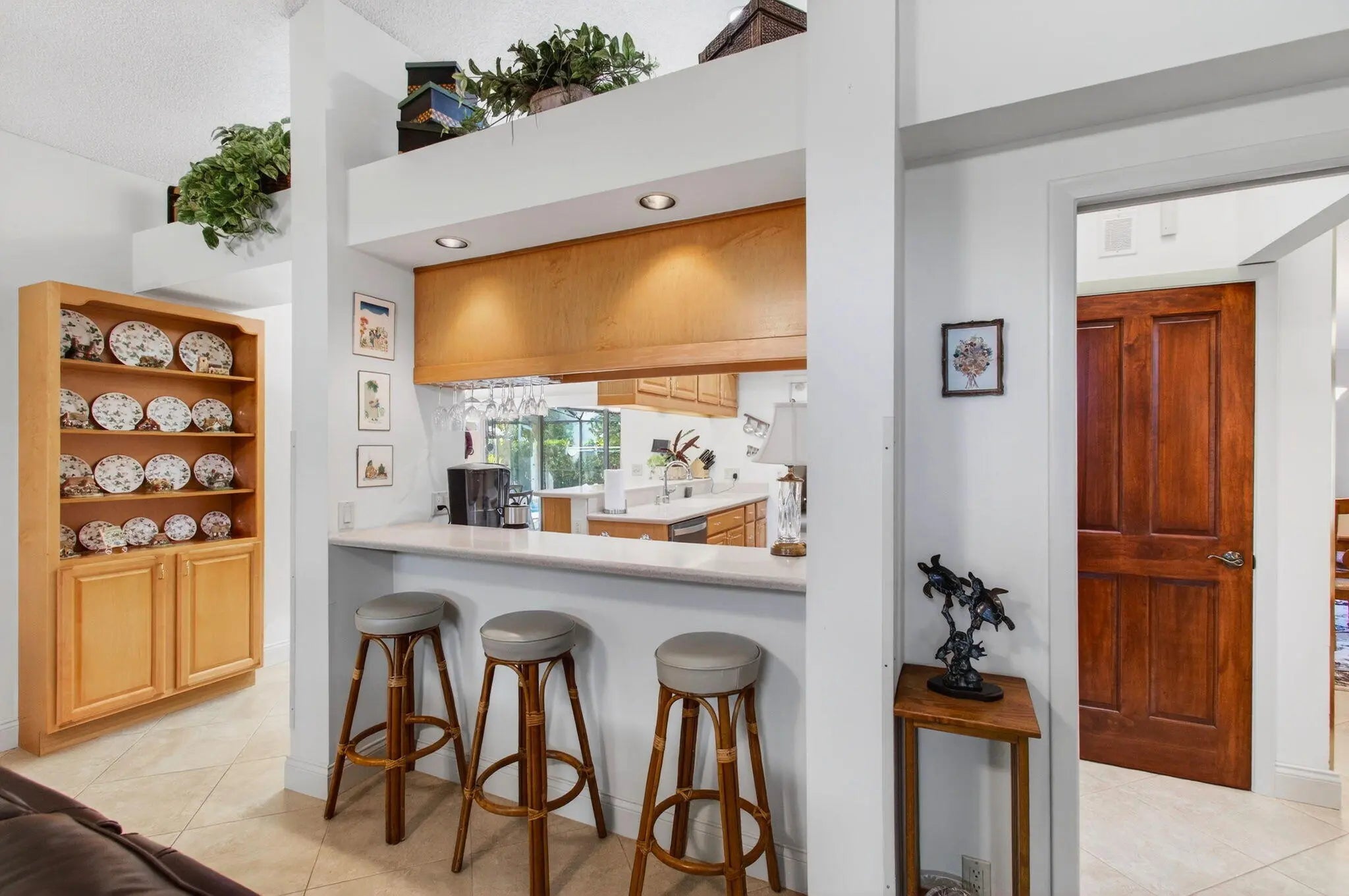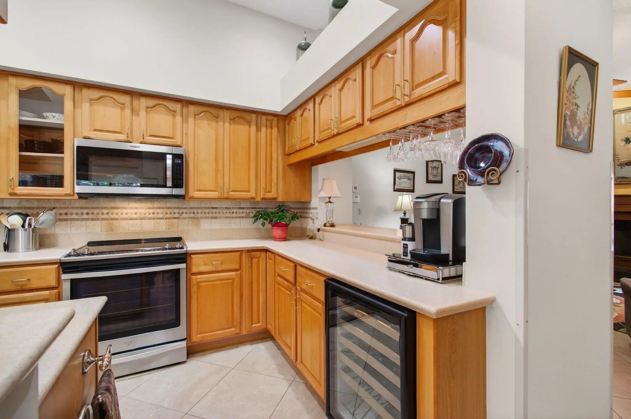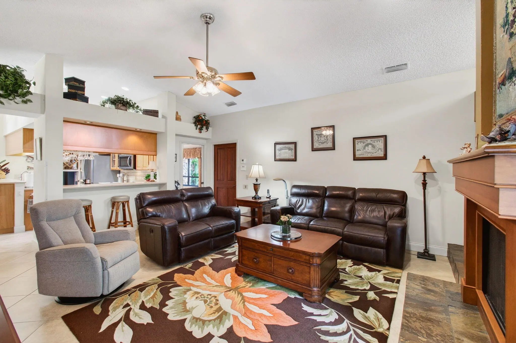 Hidden behind lush, mature landscaping and offering complete privacy, this LAKEFRONT Greenview Shores home delivers a rare sense of tranquility in Wellington-NO HOA and a dedicated area for your BOAT or RV. The four-bedroom residence features a large, screened pool with marble decking, a private dock accented by a magnificent Royal Poinciana, expansive green space, and a large, covered patio with accordion shutters that allow the space to be easily enclosed-ideal for effortless furniture storage while traveling. As you enter through the impact-rated double fiberglass doors with elegant decorative glass, you are welcomed into a bright and flexible living and dining area. The current layout features a spacious dining room with the ability to expand, while the living room captures beautiful views of the lush backyard and lake beyond. When this quality Ruttenberg home was thoughtfully renovated years ago, quality finishes were selected throughout-choices that have stood the test of time. The kitchen offers abundant maple cabinetry, glass cabinets, Corian countertops, pull-outs, a Lazy Susan, under-cabinet lighting, and stainless-steel appliances including a slide-in range, French-door refrigerator, and wine refrigerator. Numerous sliders throughout the home create a seamless connection to the outdoor living areas and highlight the tranquil lakefront setting. The primary suite features sliders opening directly to the covered patio-an ideal spot to enjoy morning coffee overlooking the water. Two closets and a spacious primary bath complete the suite, featuring an upgraded shower, enhanced tilework, a seamless glass enclosure, and generous cabinetry and counter space that continues the cohesive maple cabinetry found throughout the home. Adjacent to the guest bedroom wing, a large family room offers a welcoming gathering space with a wood-burning fireplace, vaulted ceilings accented by transom windows, and an inviting atmosphere for everyday living or entertaining. The guest bedrooms are in their own separate wing, allowing for excellent privacy, and can be closed off with pocket doors-ideal for guests or multi-generational living. Two of the guest bedrooms enjoy views of the lake or pool. The guest bath also serves as a cabana bath and features upgraded tile and listello detailing. The laundry room is equipped with cabinetry, a sink, and a built-in pull-down ironing board. The oversized garage includes built-in cabinetry and shelving, along with a convenient side service door. Additional features include solid wood interior doors, three hurricane-rated skylights that bring in abundant natural light, mature mango tree, star fruit tree, banana trees, accordion shutters, front screened-in porch, an RV plug on the side of the home, pump to the lake for sprinkler, and two outdoor storage sheds. Ideally located in the heart of Wellington, this home is close to world-class equestrian venues, hospitals, shopping, dining, A-rated schools, and is just a short golf cart ride to everyday conveniences. This impeccably maintained residence reflects true pride of ownership and offers a rare combination of privacy, flexibility, and location. Opportunities like this in Greenview Shores are seldom available.