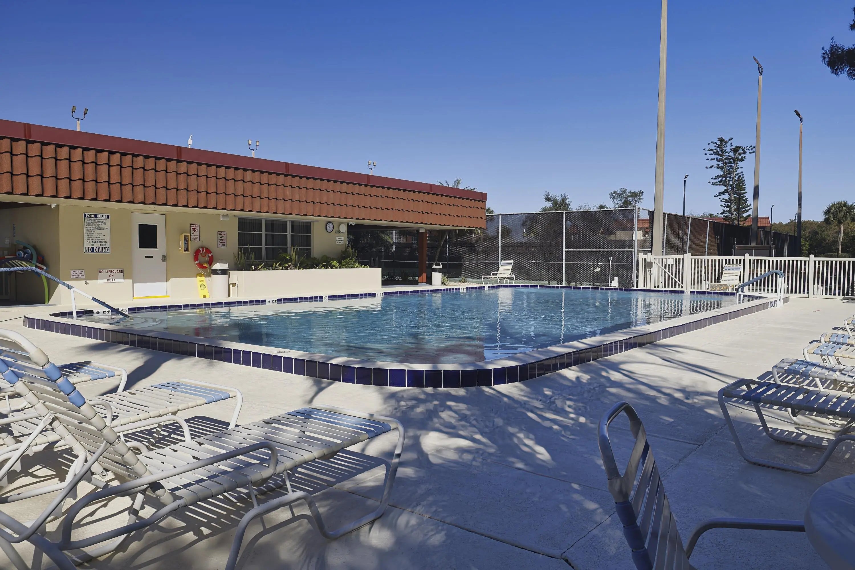 Billiard Room, Clubhouse, Fitness Center, Golf Course, Parking, Pool, Sauna, Shuffleboard Court, Spa/Hot Tub, Tennis Court(s), Manager On Site, Bike Storage, Cafe/Restaurant, Internet Included, Pickleball Court(s), Sidewalks
