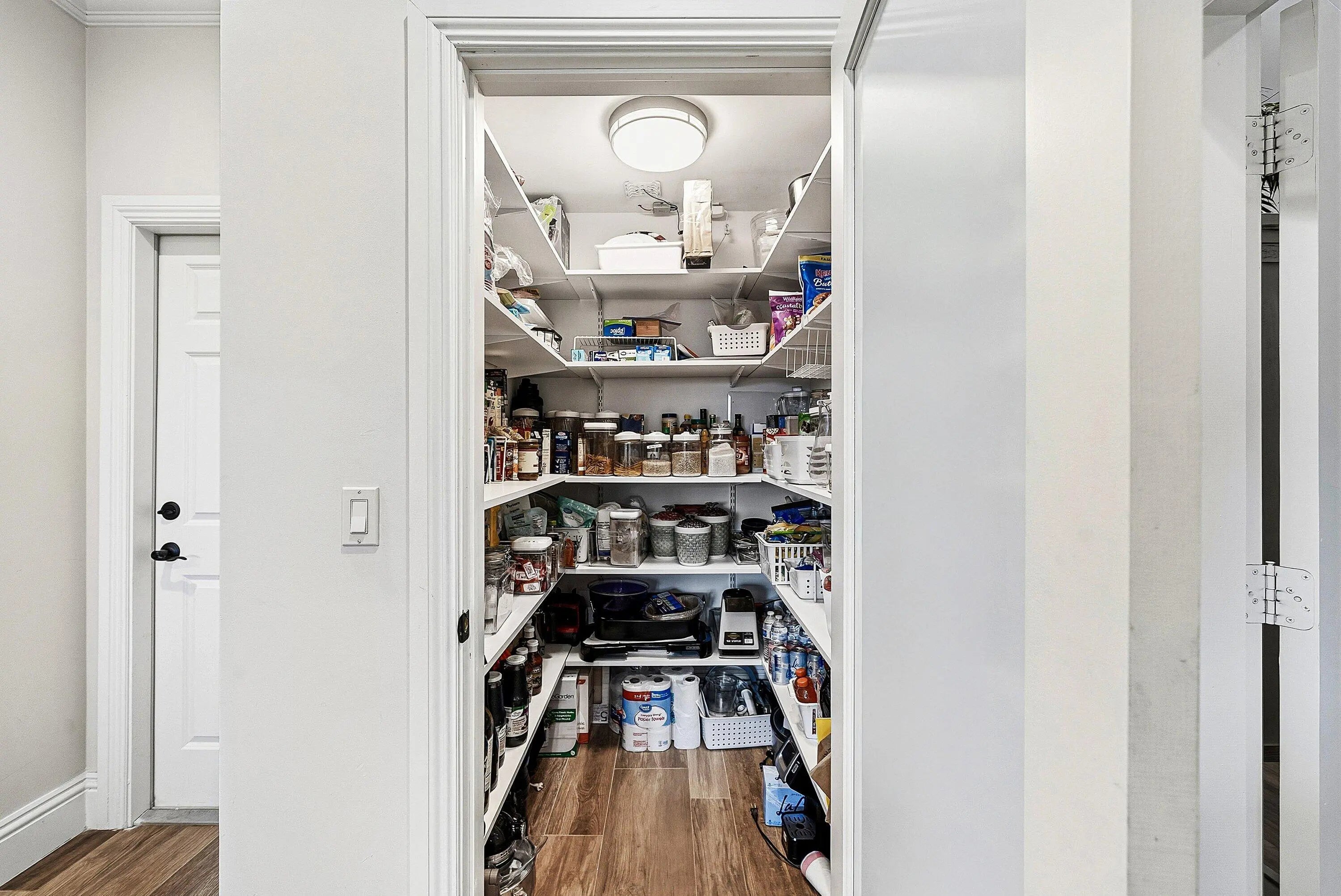 High Ceilings, Pantry, Walk-In Closet(s), Bedroom Layout - Split, Closet Cabinetry, Pull Down Stairs, Upstairs Living Area, Cabana Bath, Storage