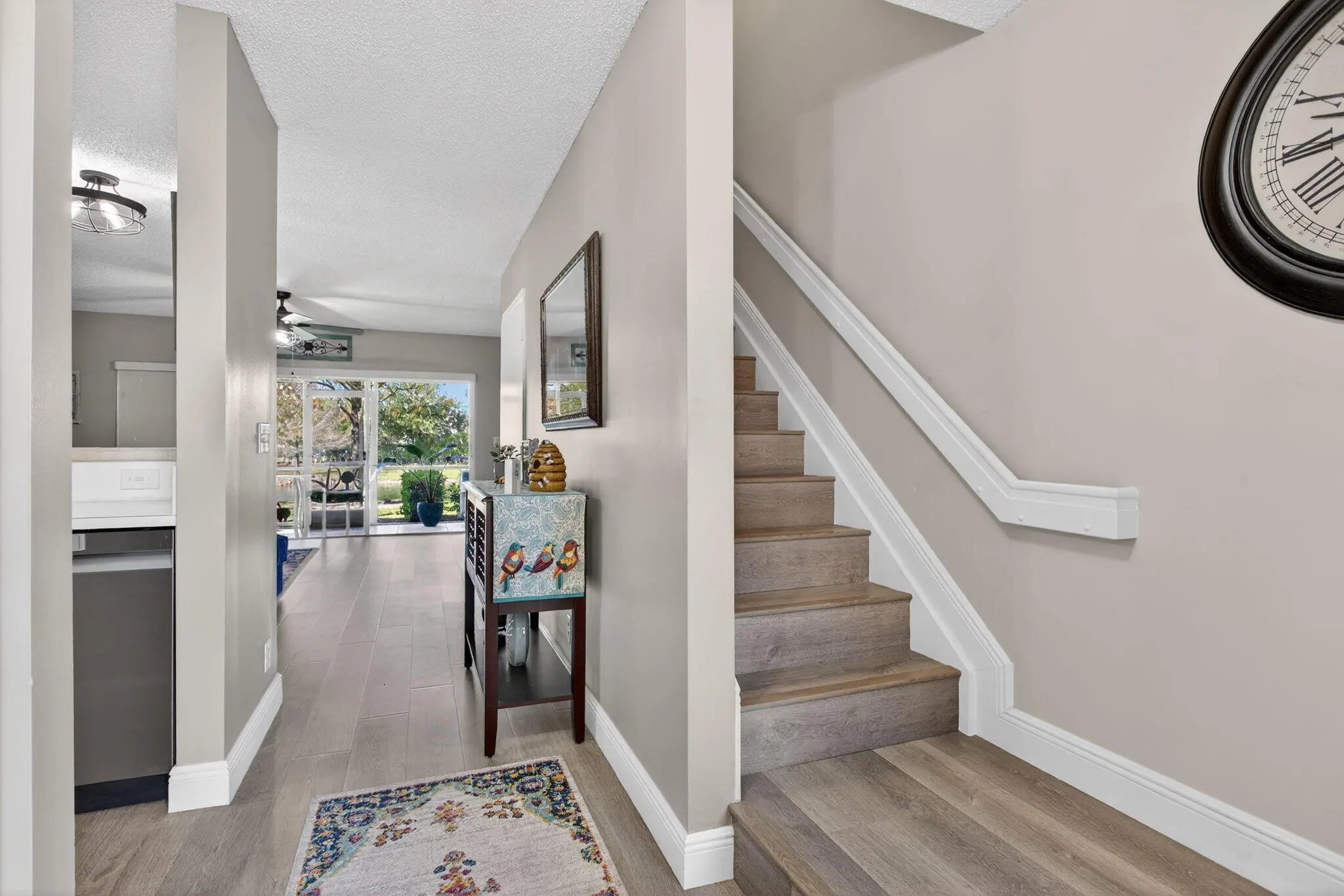 Centrally located in gated Cobblestone Walk, this 3-bedroom, 2.5-bath townhome delivers it all + a low HOA fee that DOES cover exterior maintenance of the home (roof too!). The first floor features an open, connected layout kitchen, dining, and living plus a convenient half bath. Step out to a screened-in patio overlooking the lake -- bonus! Laminate flooring runs throughout. The kitchen is open with white cabinetry and stainless appliances (2022). Upstairs, the primary suite offers generous walk-in closet + private bathroom with two vanities & remodeled shower. A/C replaced in 2018, roof in 2014, and a one-car garage, driveway + extra nearby parking. Small community with less than 50 homes + pool & space for parties. Max 2 pets allowed & 3 vehicles.