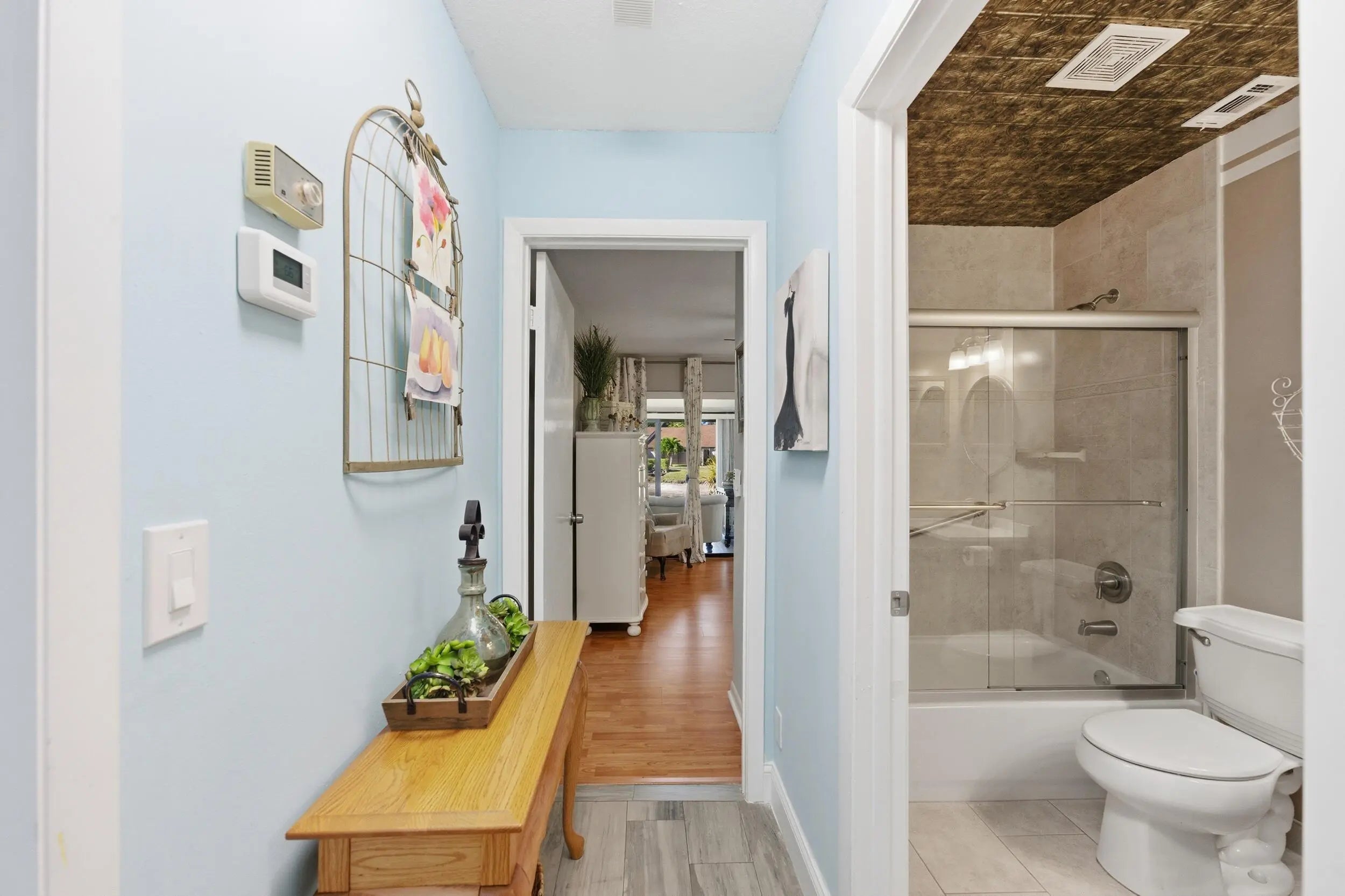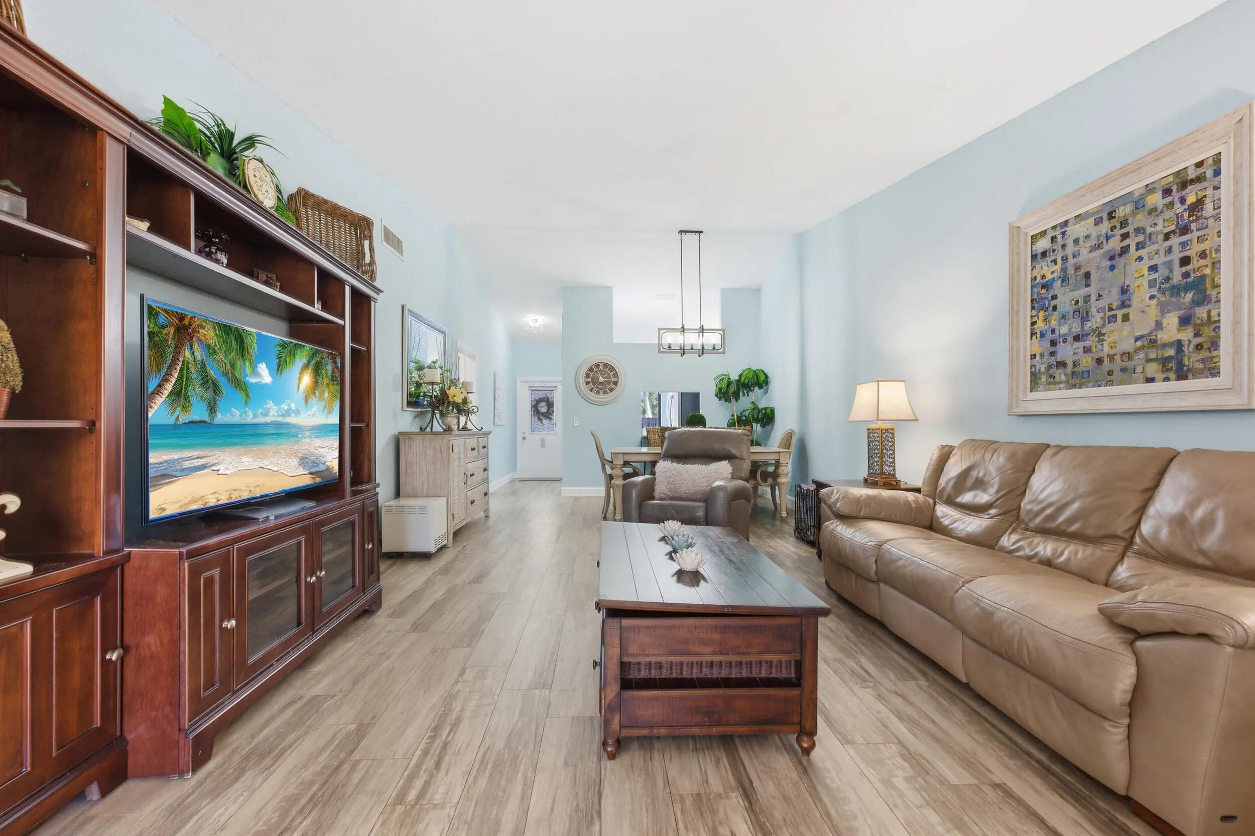 THIS HOME QUALIFIES FOR A $15K BUYER GRANT. Spacious lakefront corner villa that's truly move-in ready. 2 bedrooms, 2 baths, vaulted ceilings and abundant natural light with flowing wood-look porcelain tile throughout the living areas. The Florida room overlooks the water and large sliders make indoor outdoor living easy. Updated kitchen with granite counters, stainless appliances and brand new washer and dryer. A/C and hot water heater replaced in 2019. Primary suite offers a walk-in closet and private bath. Fenced courtyard, accordion shutters and assigned parking. Community pool, clubhouse and tennis. HOA covers insurance, roof and basic cable. All ages welcome in a peaceful setting,