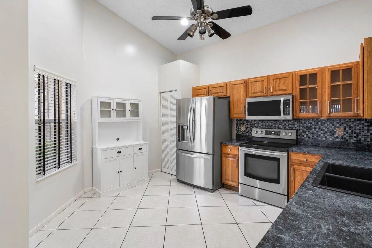 SINGLE STORY - no stairs! Perfectly prepared for the most discerning tenant! 3/2 + 1 car garage + 2 car driveway! Enjoy beautiful lake views on your screened patio. NEW neutral paint throughout. Split bedroom plan. Primary suite is large w/ walk-in closet. 2 secondary bedrooms share a hall bath. Full-size washer and dryer included. Open kitchen w/ newer stainless appliances. AC 2021. Tranquil and serene setting. Wellington's Edge is a gated community offering tennis, community pool, playgrounds & fitness center + close to everything! Walk to shopping, restaurants, library, Wellington hospital, Wellington Green mall - you don't even need to get in the car to live here!
