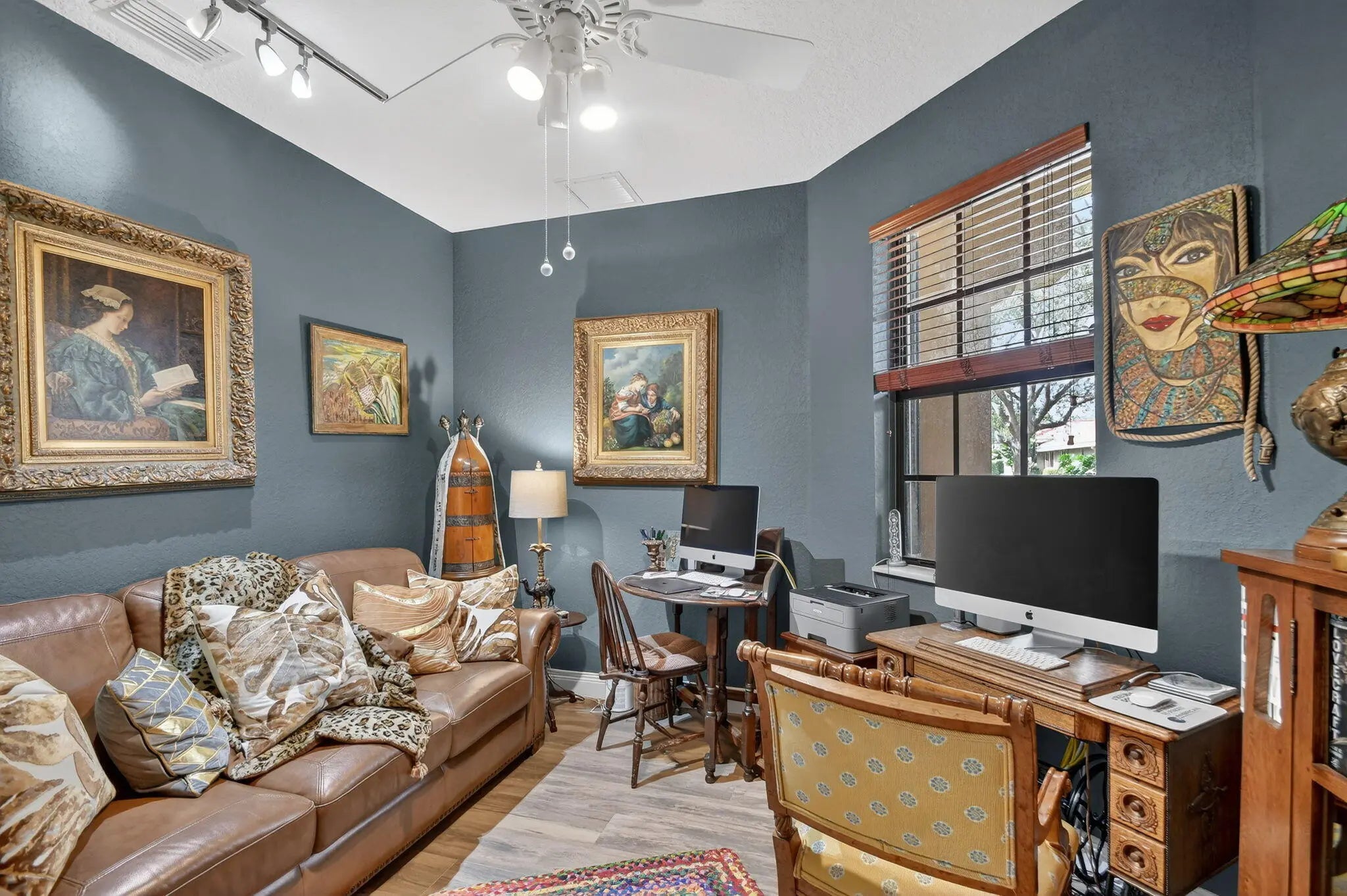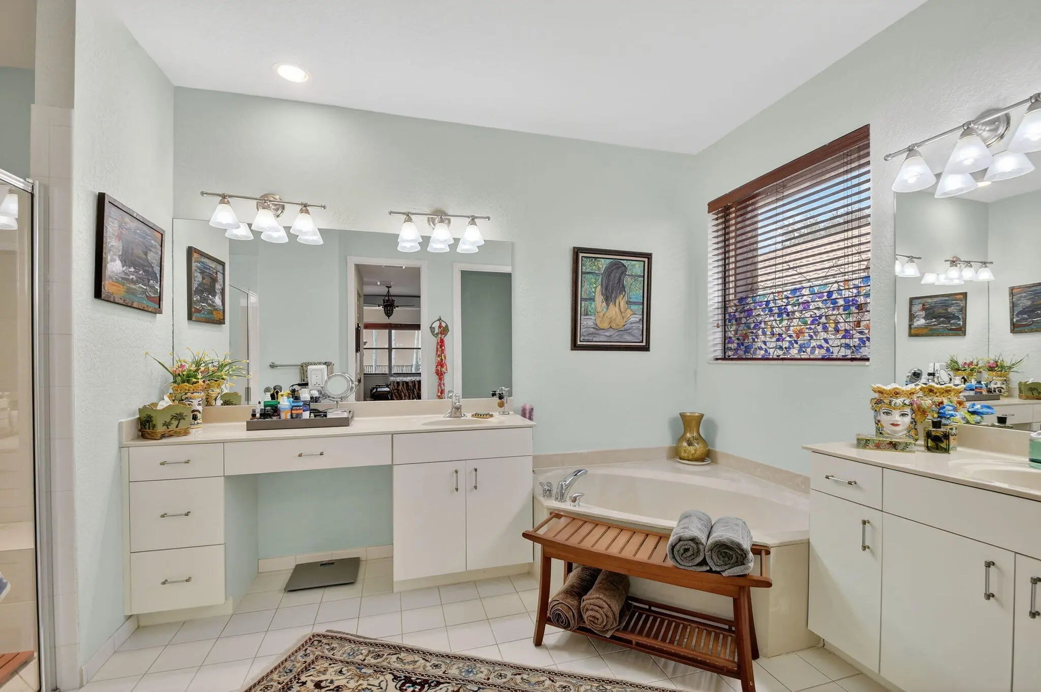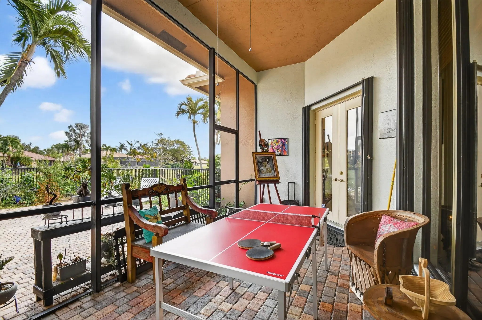 PRICED TO SELL!! Welcome to this exceptional residence nestled within the prestigious, guard-gated community of Tivoli Reserve. This impeccably maintained 3-bedroom, 2.5-bath home offers an elegant blend of refined luxury, thoughtful upgrades, and effortless Florida living in one of the area's most sought-after 55+ communities. From the moment you enter, you're greeted by soaring ceilings, porcelain wood-look tile flooring throughout, and an abundance of natural light that enhances the home's spacious, open feel. The thoughtfully designed floor plan provides the perfect balance of formal entertaining and relaxed everyday living, featuring a gracious great room, a formal dining area, and seamless indoor-outdoor flow to the screened and open patios. At the heart of the home is a beautifully appointed kitchen designed to impress. Classic white cabinetry, tiled countertops and backsplash, a convenient snack bar, and a charming breakfast nook create both functionality and style. Whether hosting guests or enjoying a quiet morning coffee, this inviting space is as practical as it is beautiful. The expansive primary suite is a true retreat, highlighted by a tray ceiling and dual custom walk-in closets outfitted with California Closet systems for optimal organization. The luxurious en-suite bath offers dual vanities, a relaxing soaking tub, and a separate walk-in shower--providing a spa-like experience in the comfort of your own home. Two additional bedrooms and a well-appointed half bath offer flexibility for guests, hobbies, or a home office. Step outside to your private screened patio--perfect for enjoying peaceful mornings, evening breezes, or entertaining friends. The open patio space provides additional room for outdoor gatherings and soaking up the Florida sunshine. This home is loaded with valuable upgrades for comfort and peace of mind, including a brand-new AC system with UV light and a new hot water heater (2024), accordion hurricane shutters, and a whole-house generator powered by a substantial 500-gallon propane tank--ensuring reliability year-round. The spa jacuzzi and outdoor furniture are also included. Residents of Tivoli Reserve enjoy resort-style amenities and an active social lifestyle, with a stunning clubhouse, state-of-the-art fitness center, billiards, social hall, resort-style pool, tennis and pickleball courts. Ideally located near upscale shopping, dining, entertainment, major highways, and airports, this home offers both tranquility and convenience. This is more than a home -- it's a lifestyle defined by elegance, comfort, and community.