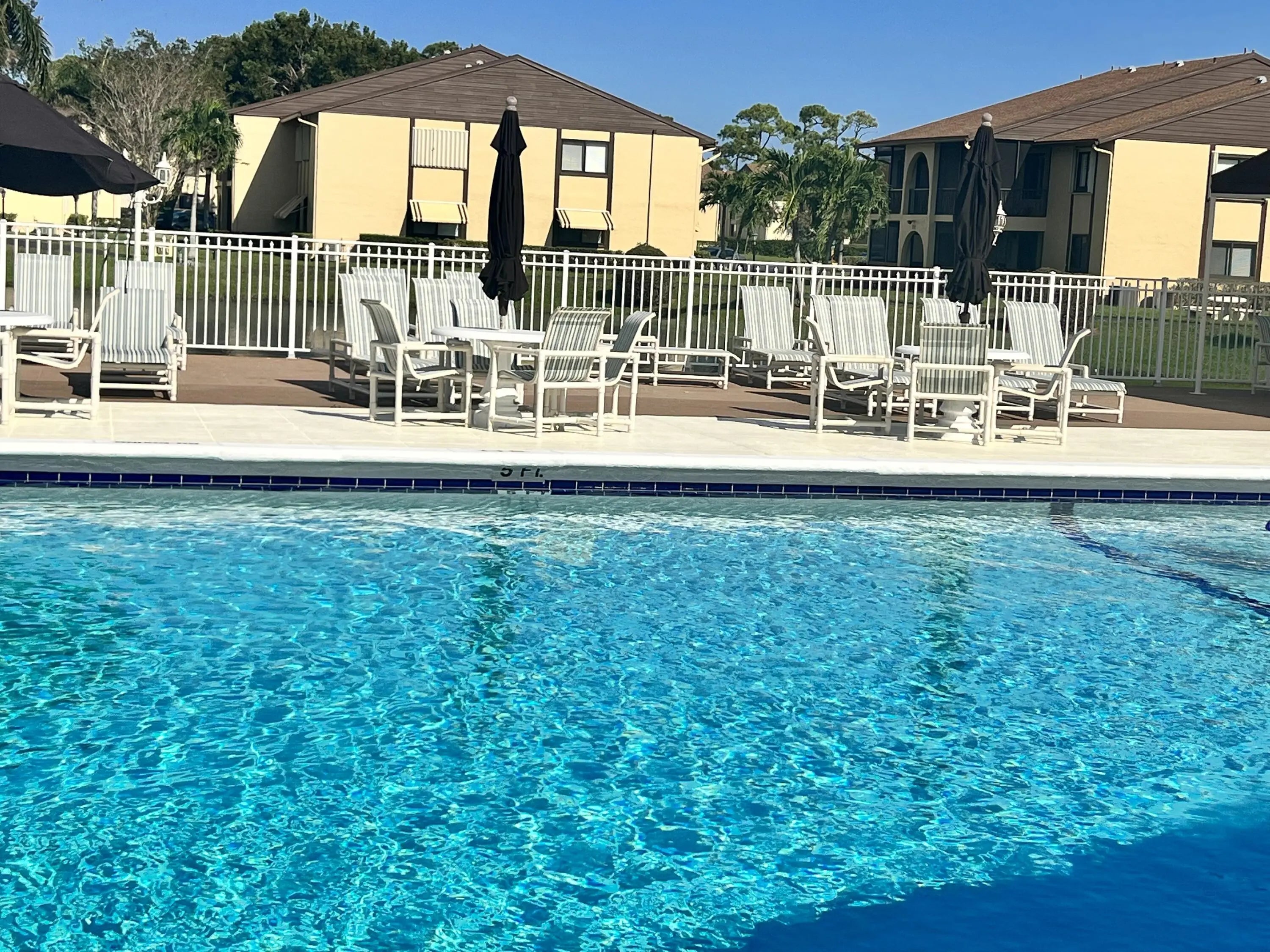 Welcome home to this light and bright ground-floor condo in the desirable 55+ community of Pine Ridge! Ideally located near shopping, grocery stores, and everyday conveniences. This well-maintained unit features a spacious enclosed sitting room entry, open kitchen overlooking the dining and living areas, a generously sized bedroom, and a laundry room with full-sized washer and dryer. Enjoy the ease of being just steps from the clubhouse and very close to your reserved parking space. Pine Ridge spans 25 beautifully landscaped acres and offers exceptional amenities, including a heated and cooled pool for year-round enjoyment, clubhouse, scenic lake, and walking trails.