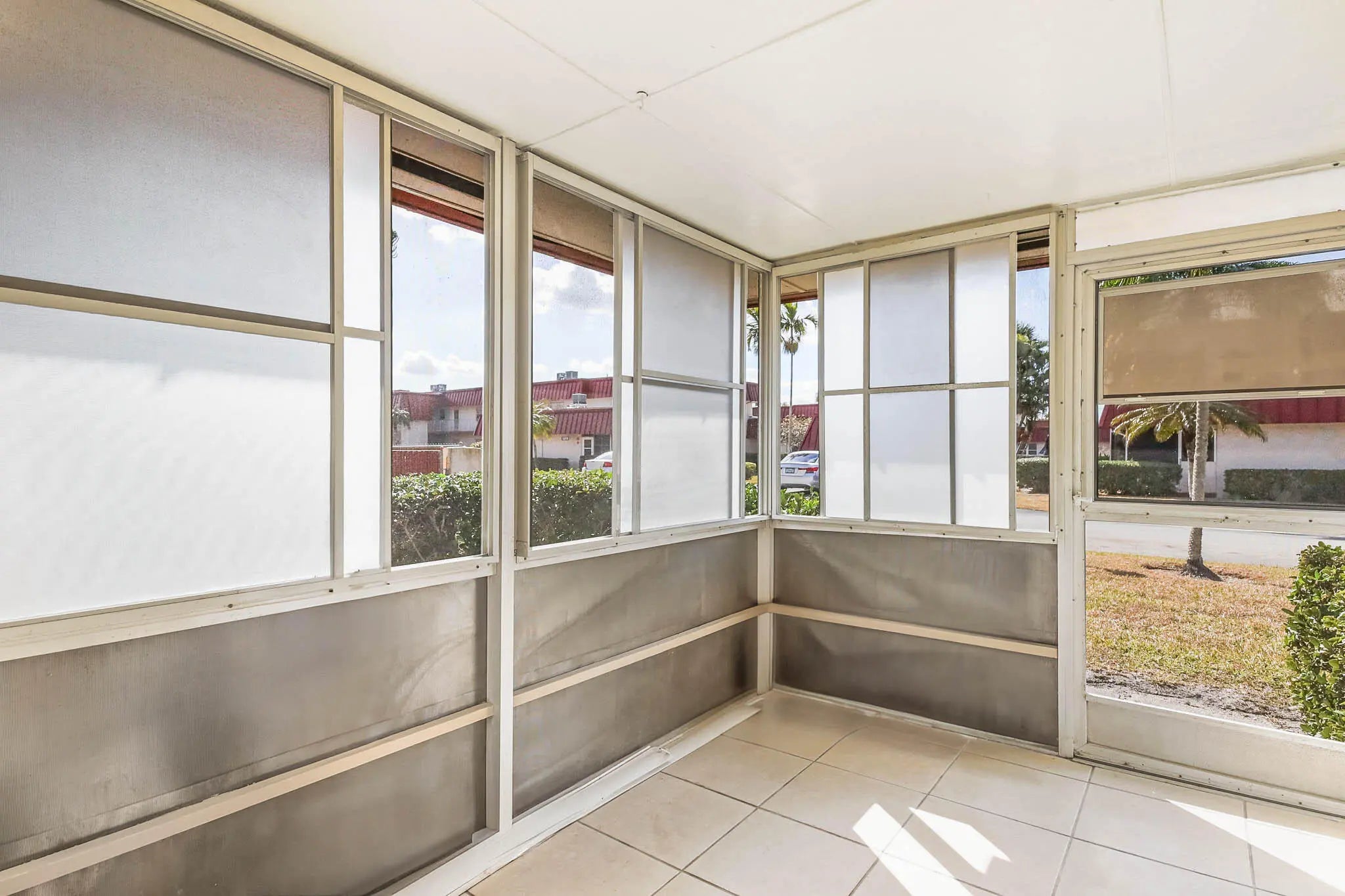 Well-maintained first-floor corner condo (no unit above) featuring tiled floors, fresh interior paint, newer cabinets, and a new roof. Bright and airy layout with abundant natural light. Both the living room and bedroom open to a screened-in porch, perfect for enjoying the Florida lifestyle. Located in a desirable 55+ community with amenities including a clubhouse, fitness center, pool, sauna, billiards, shuffleboard, and free shuttle service. Low HOA fees and assessments paid. Conveniently located near Commons Park with a 6-mile walking trail, shopping, dining, cultural center, public library, hospital, and municipal services. Ideal for full-time living or seasonal use.