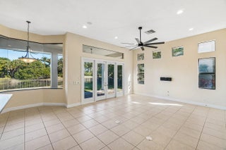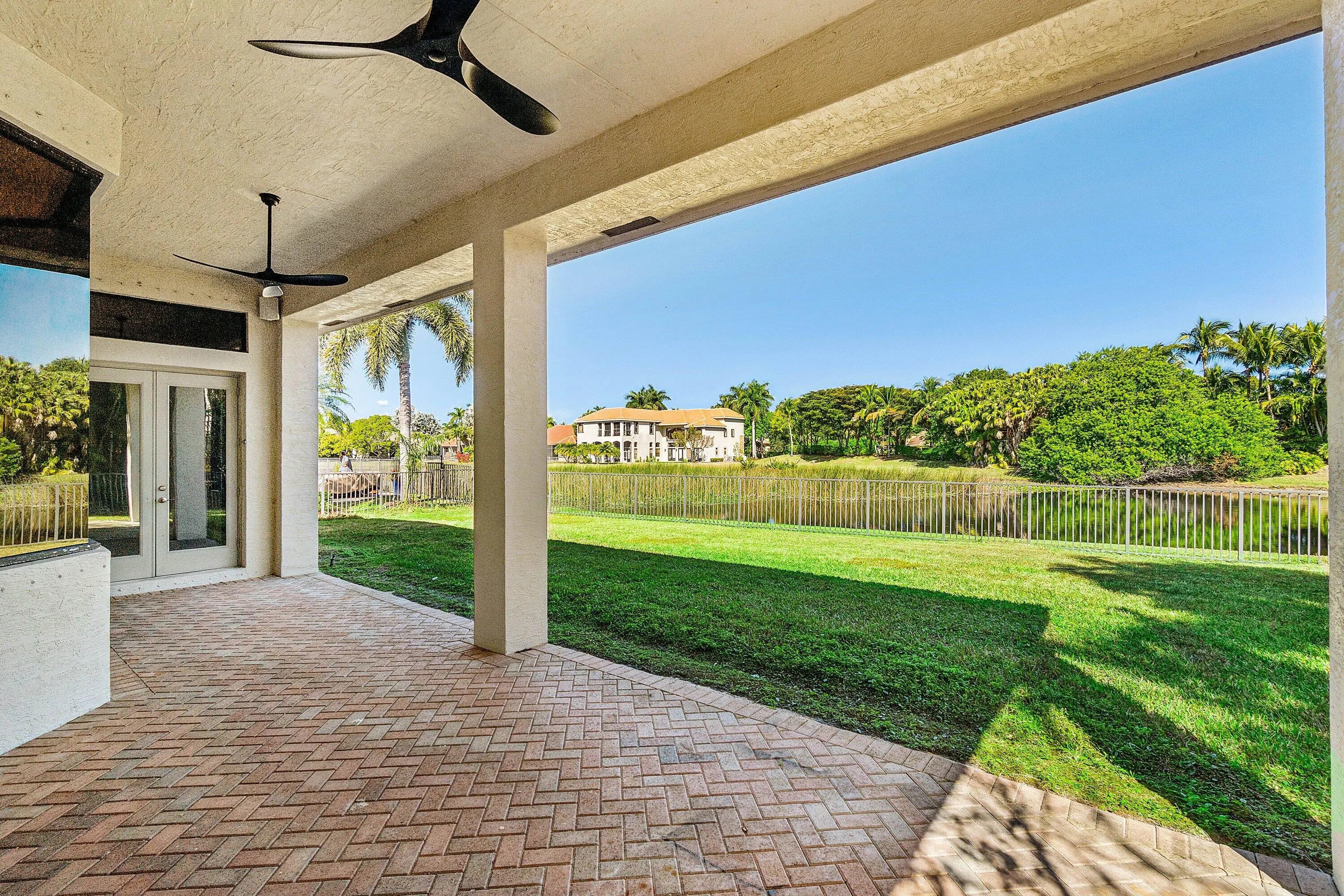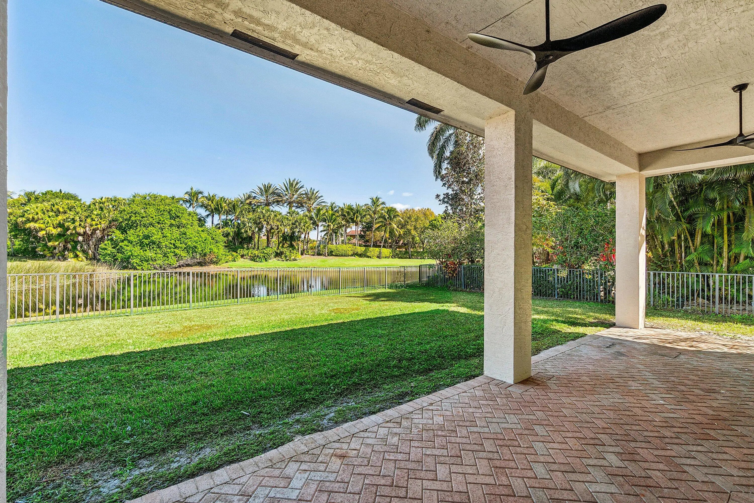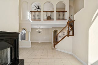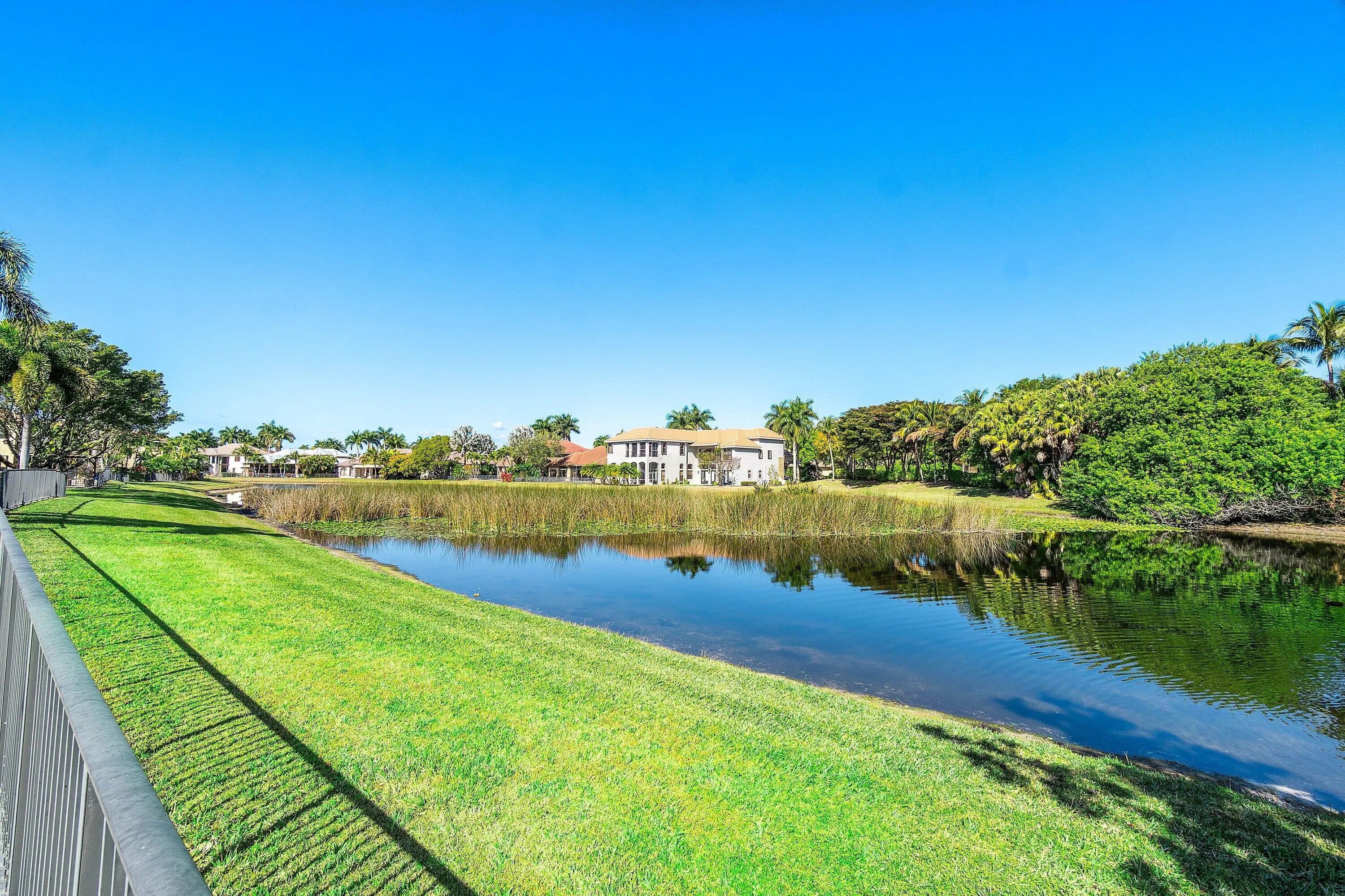 Grand Cannes II model lives large with a gorgeous lake view! Hard-to-find 2 bedrooms + 3 bathrooms on main floor (primary and 2nd bedroom w/ adjacent full bath). 3 additional bedrooms + loft + 3 car garage! Fenced yard. Souring ceilings and grand staircase create a WOW impression. Bedrooms have LVP flooring (the only carpet is on the stairs). Brand NEW 48'' commercial style gas range. Large built-in refrigerator in island kitchen. New fans throughout. All bedrooms are generous proportions. HOA INCLUDES FUSION TV & INTERNET, LAWN CARE, ALARM MONITORING & AMENITIES. Located in the premier 'Versailles of Wellington' - 400 homes with top amenities including 24/7 manned & gated security, management on-site, luxury pool, spa, fitness center, tennis, basketball, playground, miles of professionally landscaped walking paths and top schools!