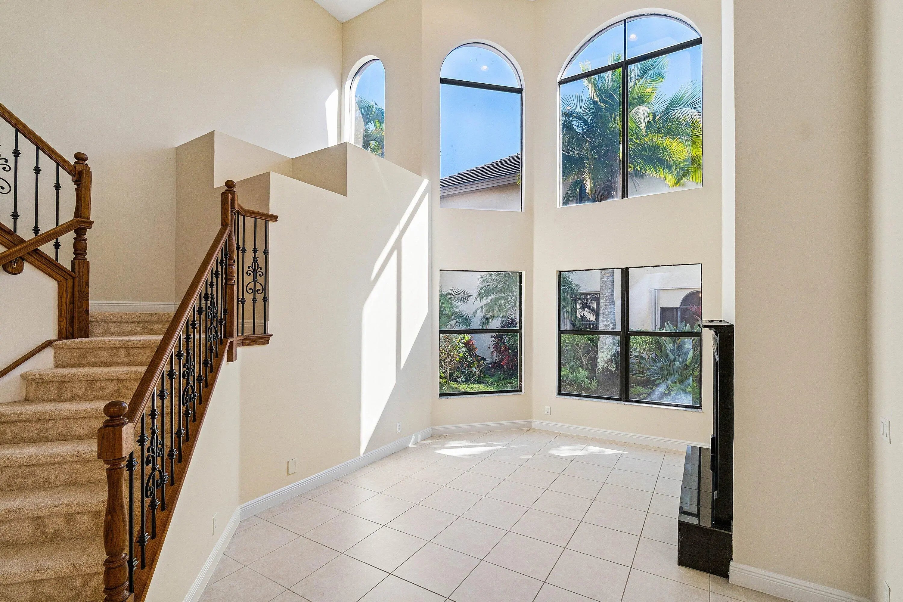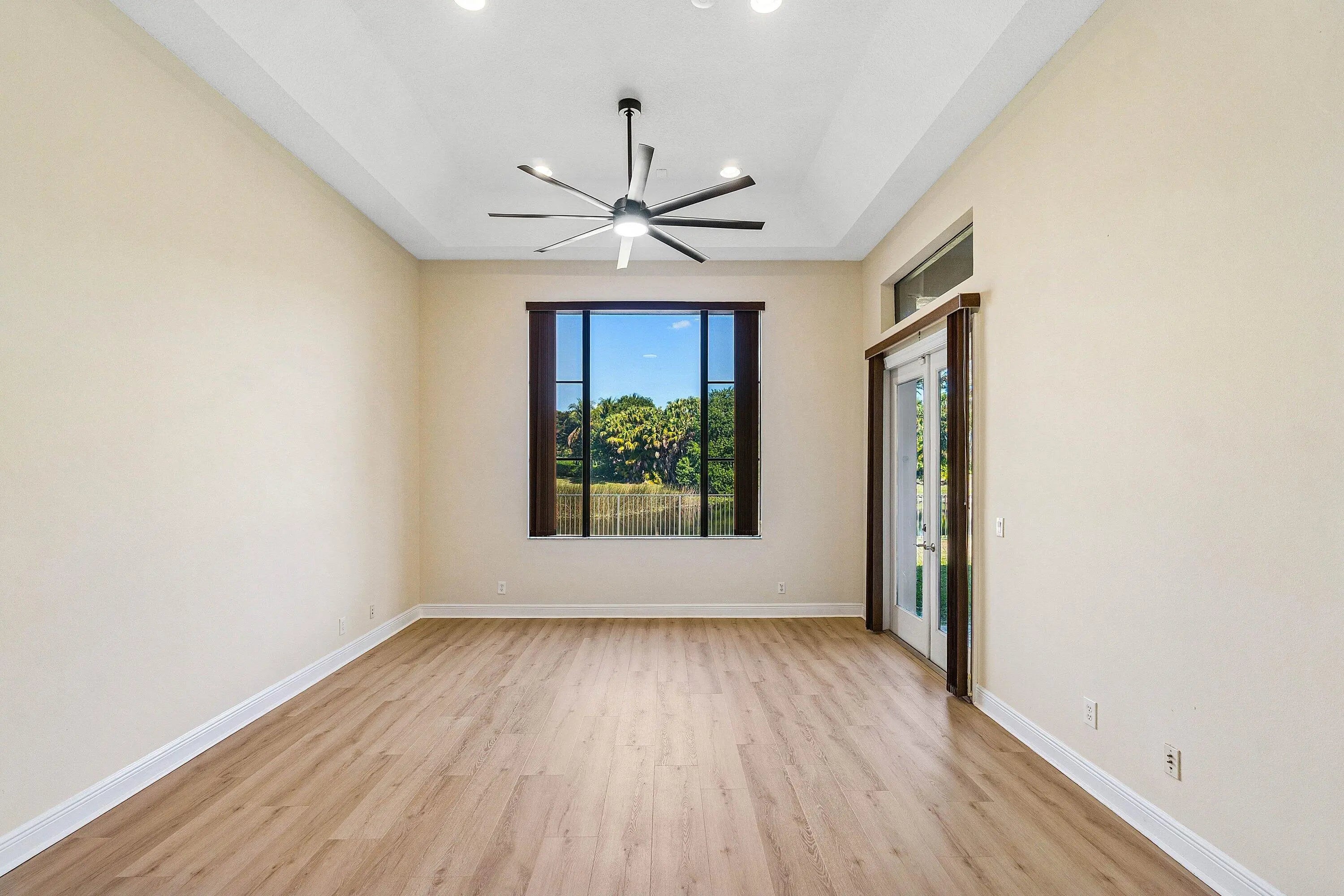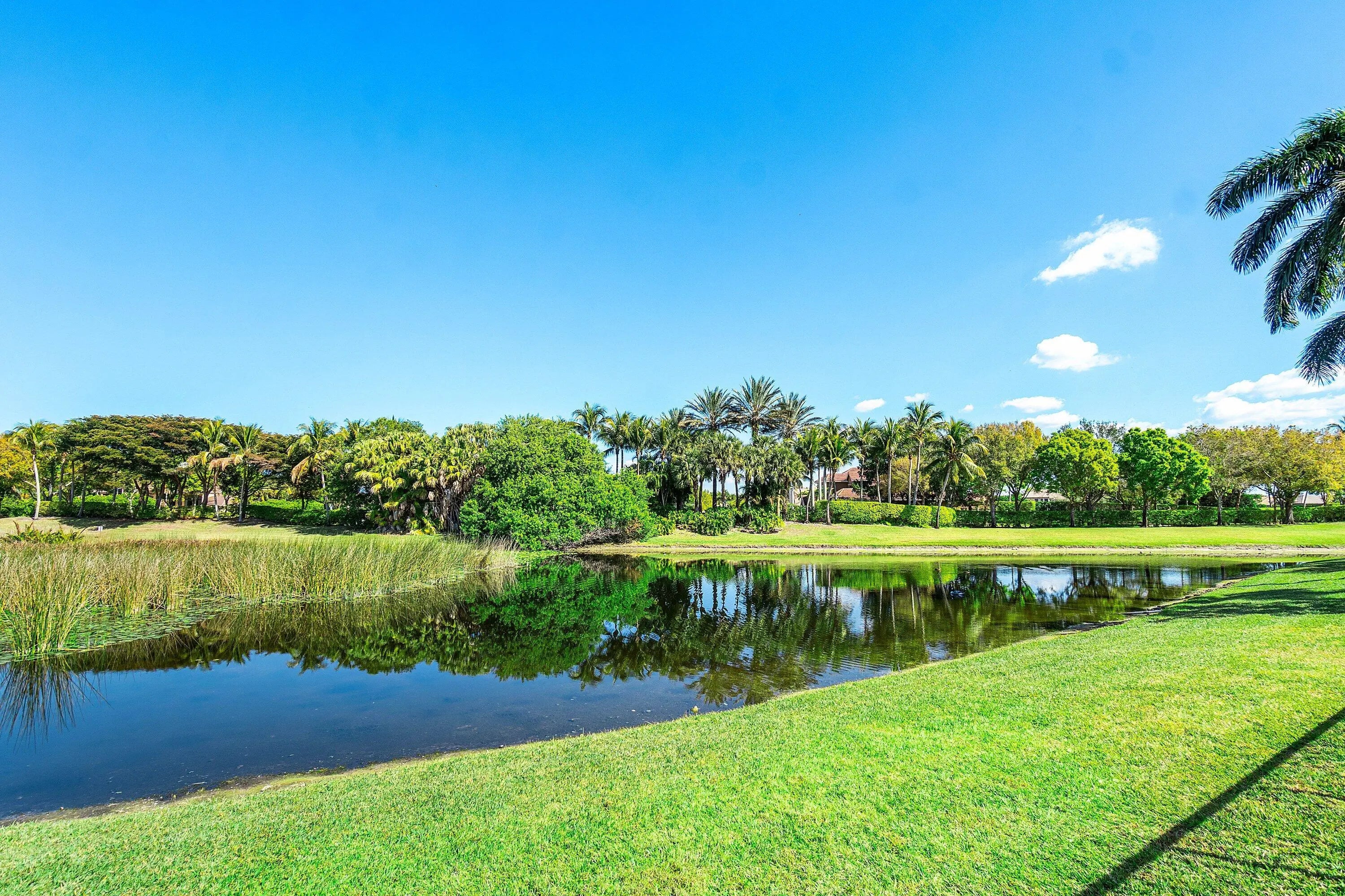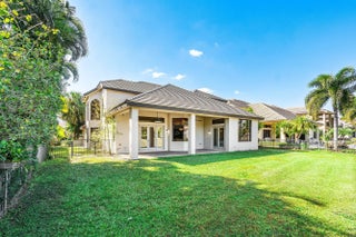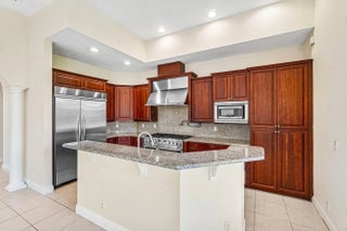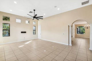 Grand Cannes II model lives large with a gorgeous lake view! Hard-to-find 2 bedrooms + 3 bathrooms on main floor (primary and 2nd bedroom w/ adjacent full bath). 3 additional bedrooms + loft + 3 car garage! Fenced yard. Souring ceilings and grand staircase create a WOW impression. Bedrooms have LVP flooring (the only carpet is on the stairs). Brand NEW 48'' commercial style gas range. Large built-in refrigerator in island kitchen. New fans throughout. All bedrooms are generous proportions. HOA INCLUDES FUSION TV & INTERNET, LAWN CARE, ALARM MONITORING & AMENITIES. Located in the premier 'Versailles of Wellington' - 400 homes with top amenities including 24/7 manned & gated security, management on-site, luxury pool, spa, fitness center, tennis, basketball, playground, miles of professionally landscaped walking paths and top schools!