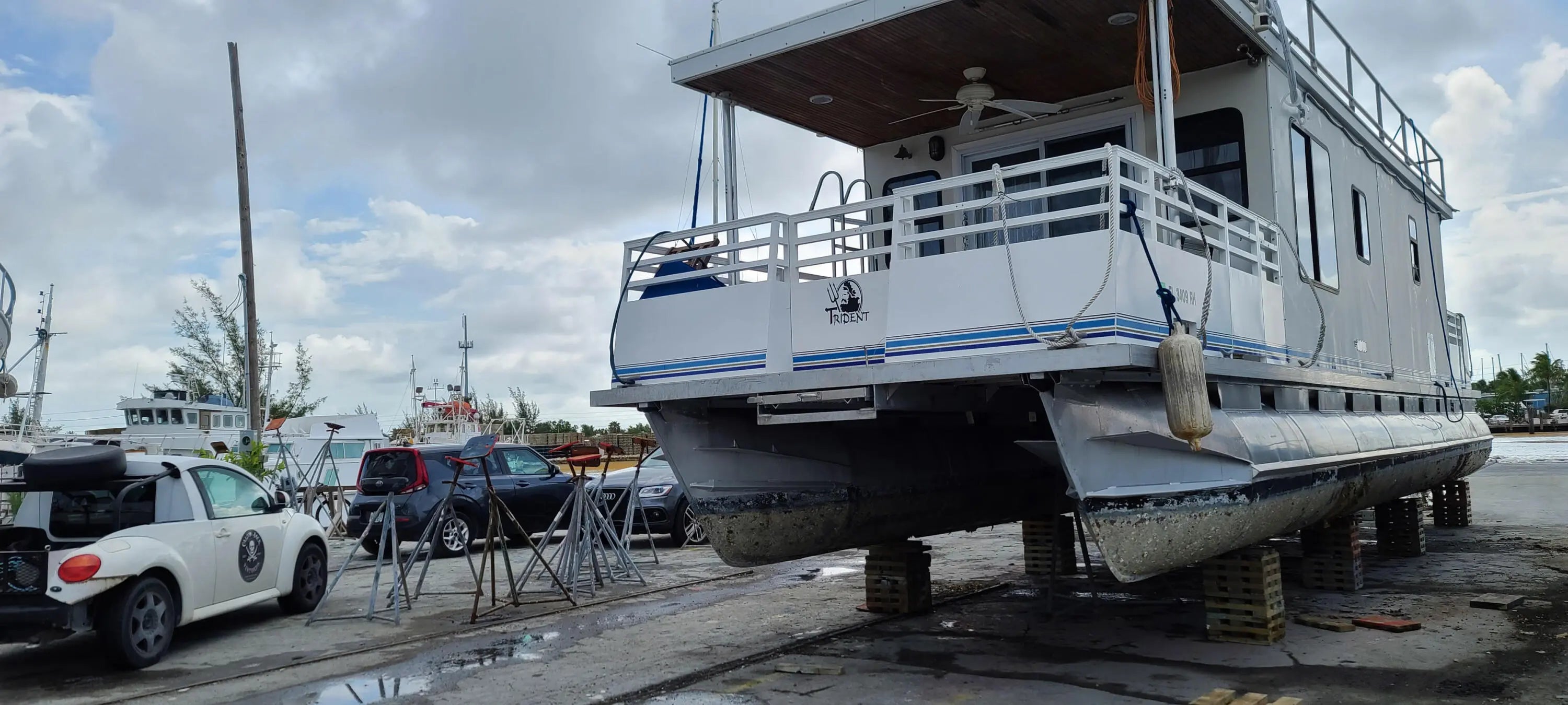 Very well maintained 2017 Trident 45' Houseboat being conveyed with a leasehold slip at City's Garrison Bight Marina.