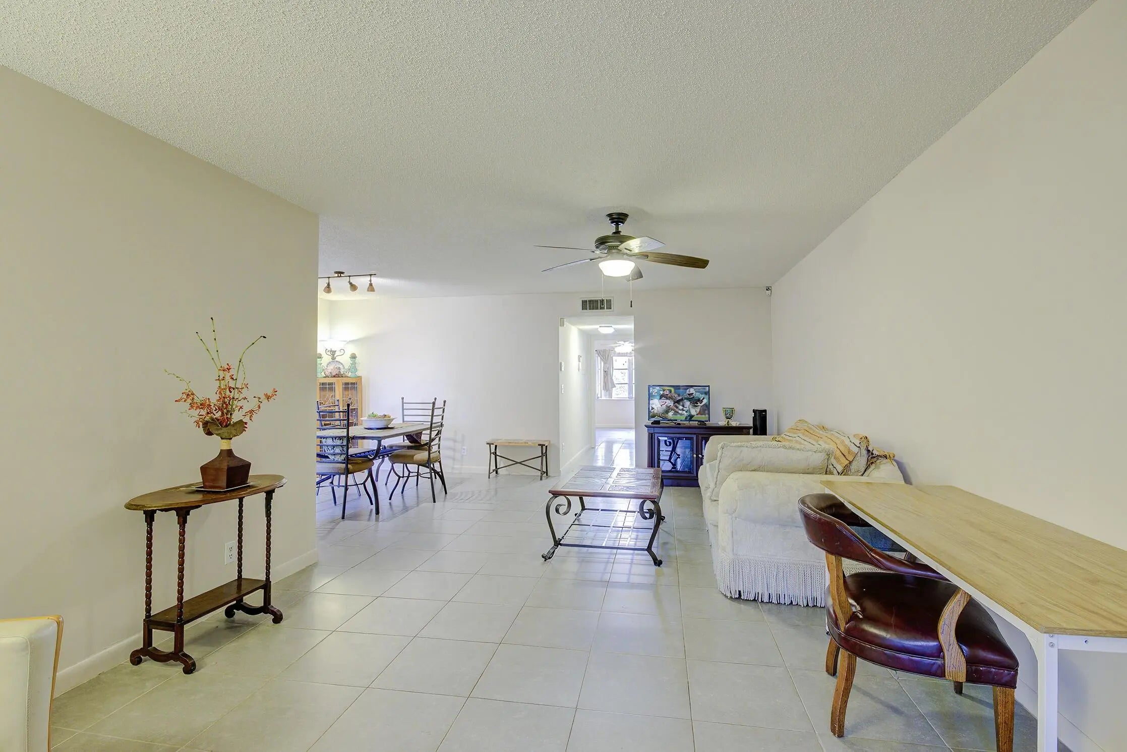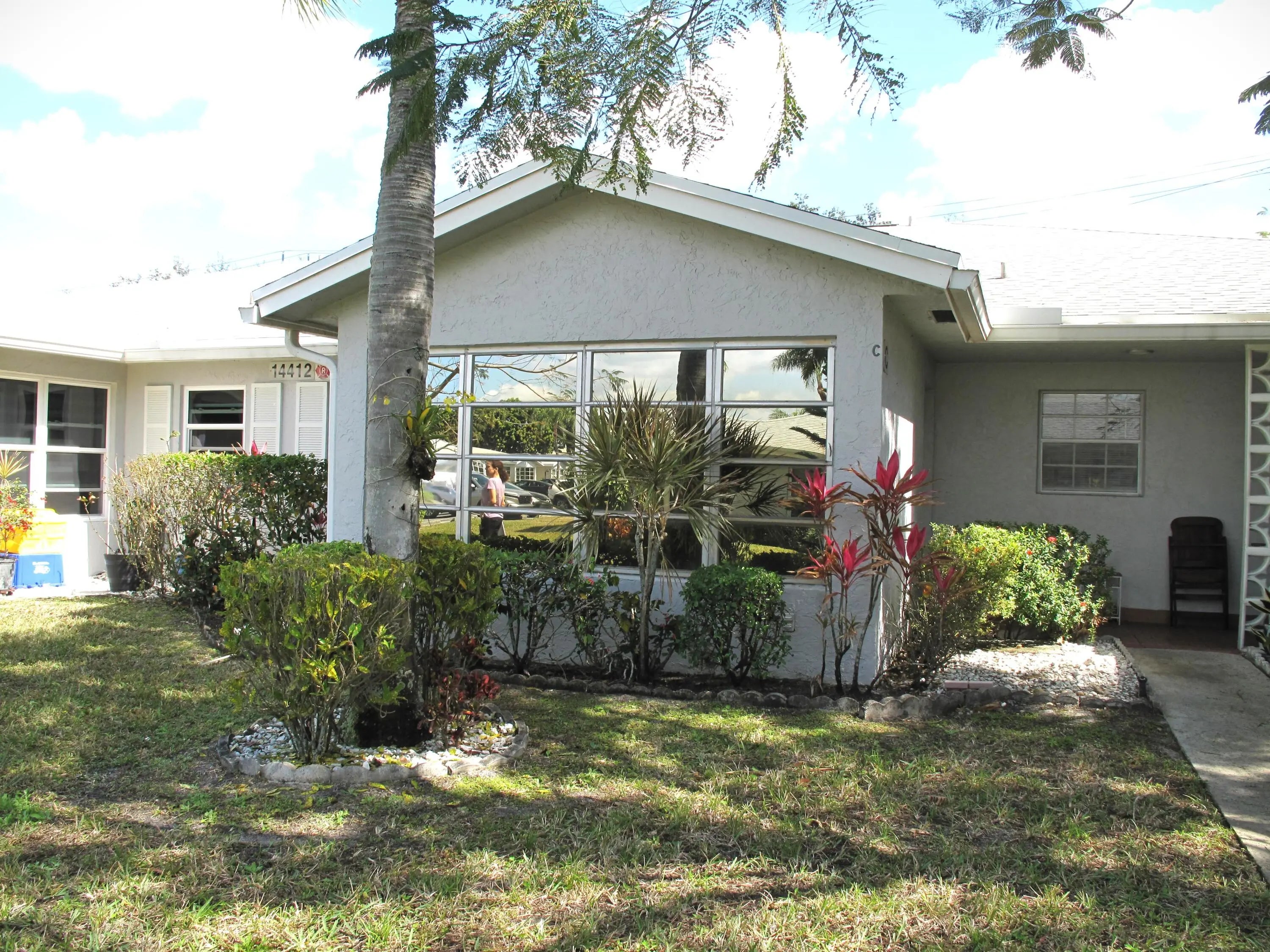 Your golden opportunity to purchase a bright, spacious, and airy 1BR/1.5BA villa. This villa is the most desired corner of a Florida Model, nestled in an active 55+ community waiting for your designer's touch. This villa features: roof installed in 2020; enclosed Florida room with air conditioning; awning shutters; large galley kitchen; AC handler and compressor installed in 1/2025; neutral tile flooring throughout. This villa is offered furnished. Enjoy Florida living at its best in this very active 55+ community, where you'll find many planned social activities, a large, heated resort-style community pool, an updated clubhouse, tennis, pickleball courts, and shuffleboard. Located close to all amenities, just minutes to the beach, discover quaint shops, open-air cafes, fine restaurants, shopping malls, theaters, close to I-95/Turnpike, and Places of worship. Each building of 4 villas shares a coin-operated washer and dryer. **All information is deemed reliable but not guaranteed and subject to change without notice. **