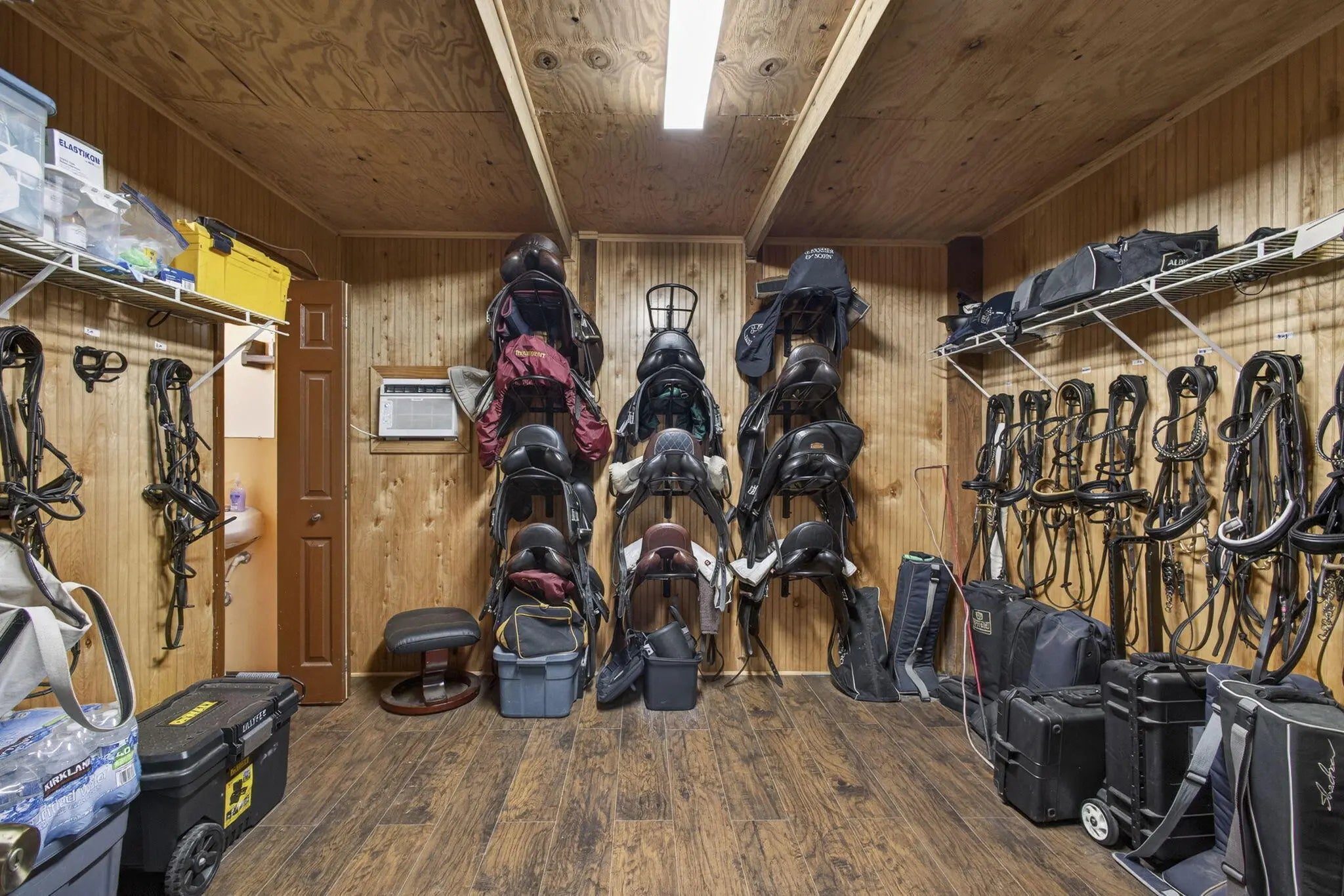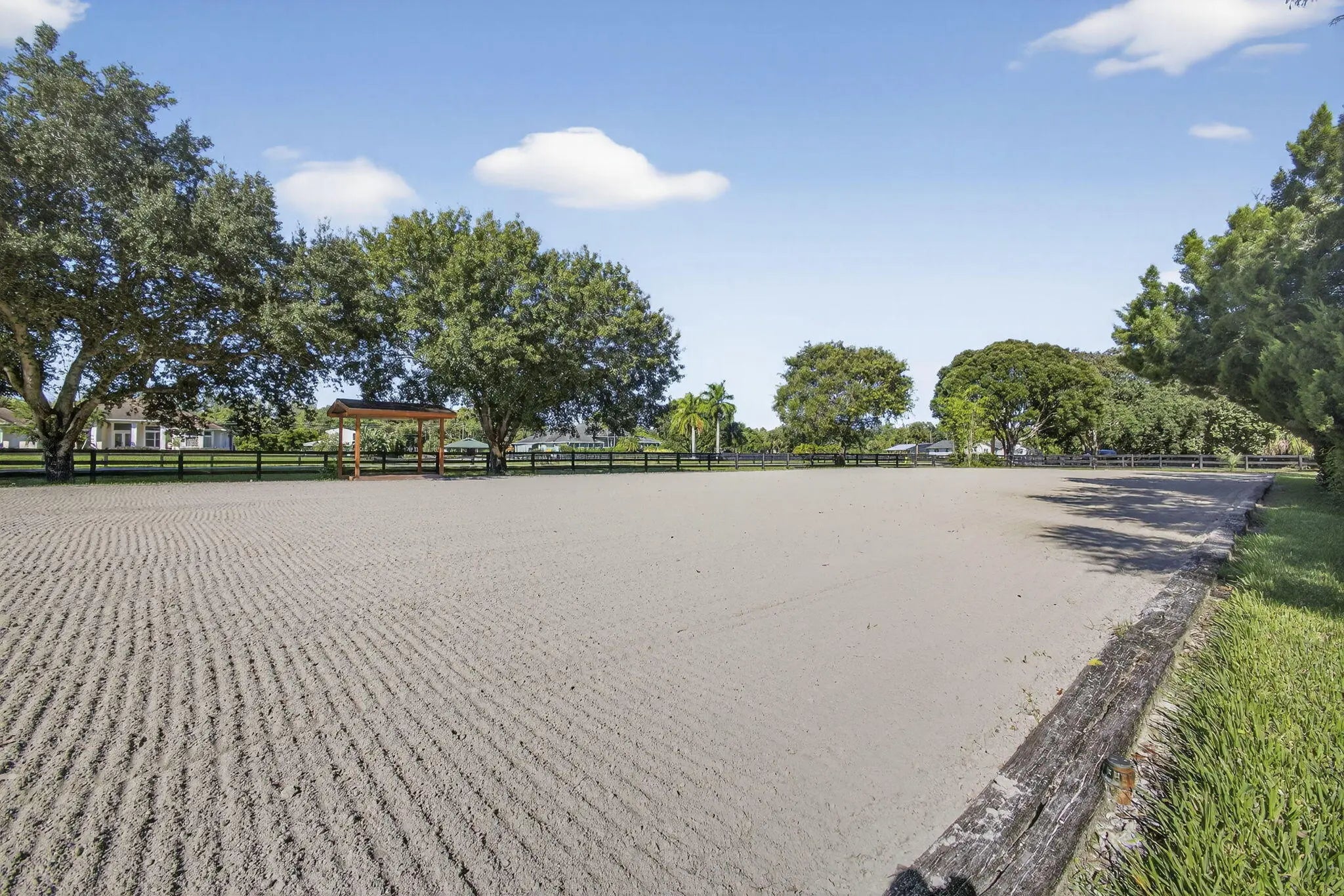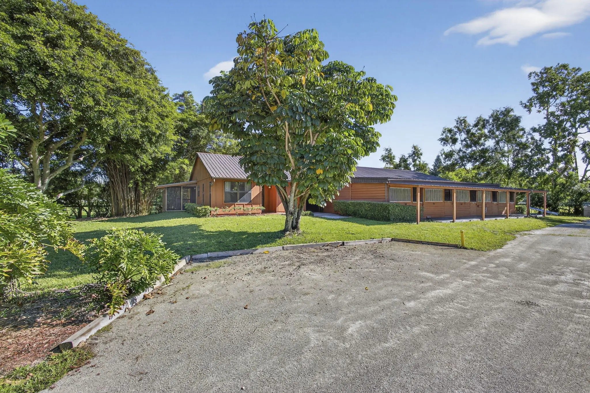 Welcome to your own equestrian retreat -- an established, beautifully appointed 3-acre farm. Train & ride at home in the dressage ring w/ mirror wall and charming viewing gazebo, then turn your horses out to 8 lush grass paddocks. Delight in the thoughtfully designed 12-stall barn, featuring a dedicated stallion stall, automatic waterers, two wash racks, a tack room with 1/2 bath, feed room, washer & dryer. A charming 3-bedroom, 2-bath main residence awaits, where a dramatic floor-to-ceiling coral fireplace creates a warm, inviting focal point. Relax on the expansive screened porch overlooking the newly refinished pool, perfect for unwinding after a day in the saddle or entertaining friends under the stars. A breezeway connects the barn to a spacious 1 bedroom apartment. Offered Turnkey.