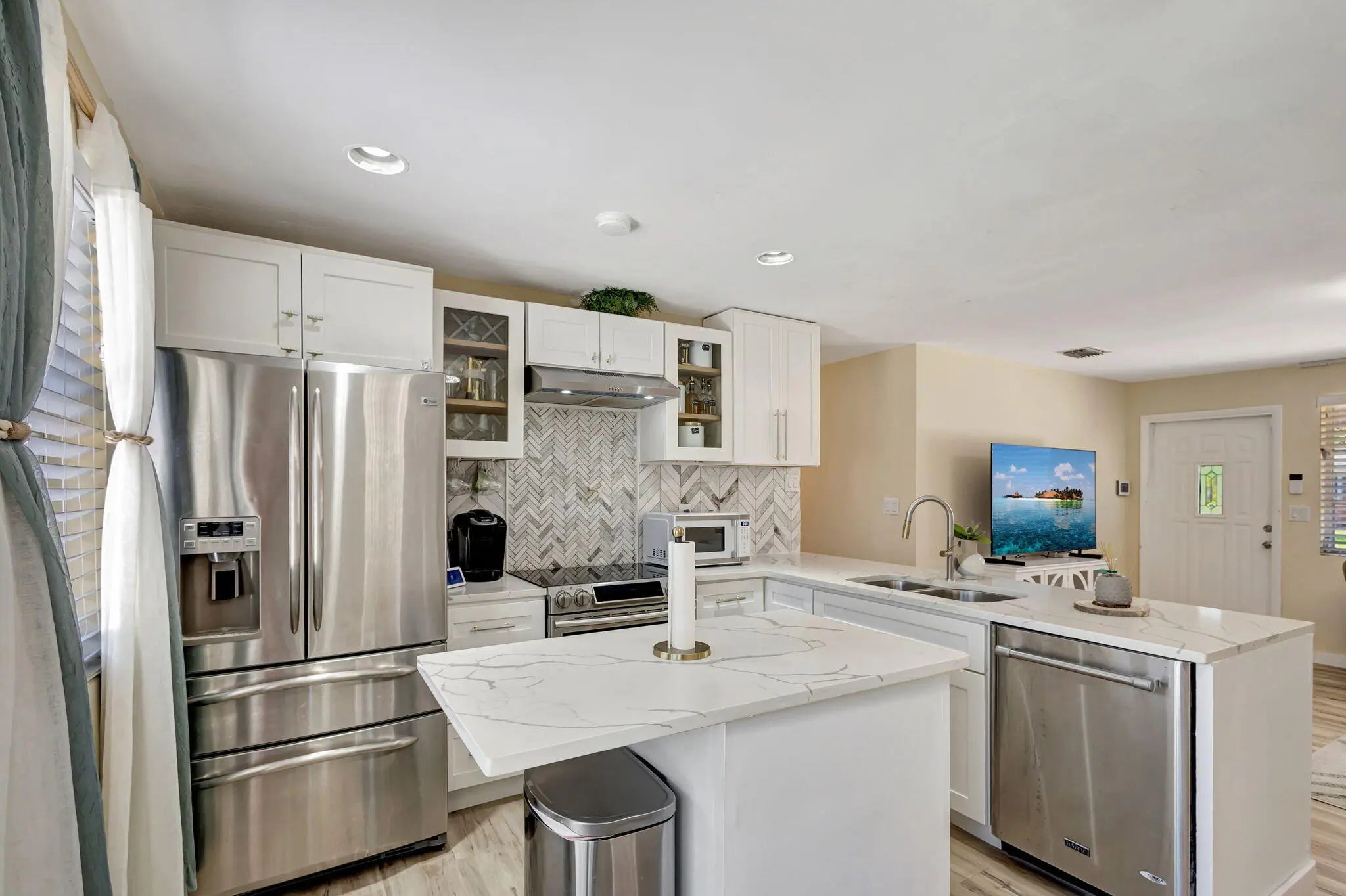 Welcome to this charming single-family home with 4 BR/2 BA. 1 huge room with an AC window unit can serve as another Master BR or an office. Newly Fully Updated Home located on a quiet street. Upon entering, you'll be greeted by a spacious central living room that opens to a split floor plan and a conveniently situated updated kitchen. With its enormous backyard, this home is perfect for those seeking a peaceful and comfortable Oasis Experience. Basketball area, updated design-inspired kitchen with island, stainless steel appliances, and microwave. Master bedroom with its own additional patio and seating area. Spa-inspired bathrooms. Full Laundry room with a Washer and Dryer. Located in a convenient location, you'll be just 2 minutes from Publix and 5 minutes from the Intracoastal. Close to local schools, parks, shopping, and dining options. Fenced-in Backyard. Private, Well-Placed, and Perfect. Don't miss out on the opportunity to make this wonderful house your new tranquil home! MOVE IN REQUIREMENTS: for 1st + Sec, you must have an application showing 650 credit, 3 Mos bank statements, proof of income, Valid ID.
