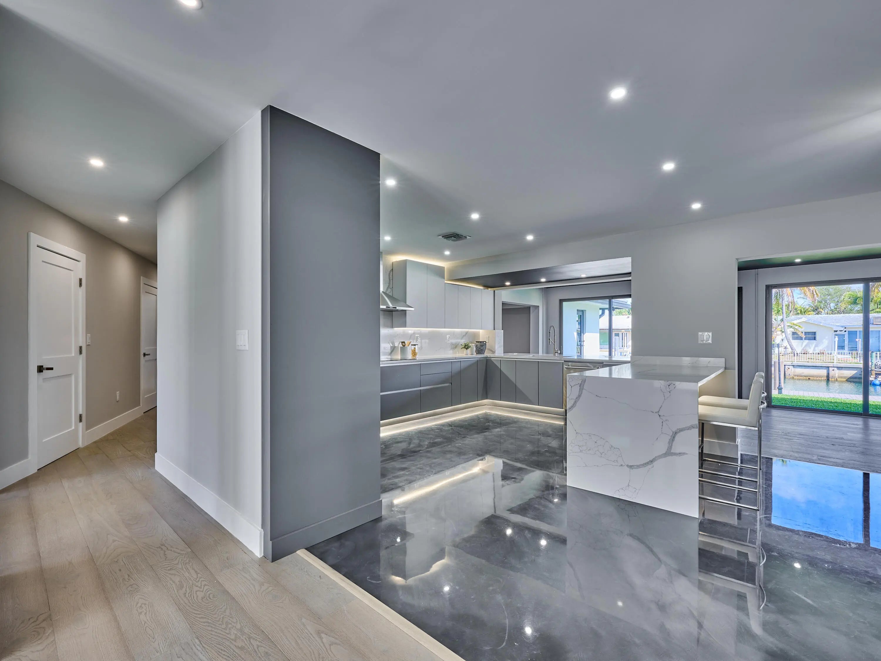 Completely remodeled waterfront home on Singer Island. 2025 New Roof, windows and doors, bathrooms, plumbing, electric, floors, water heater, AC units, washer and dryer. Enclosed florida room to expand living/entertainment space and add additional sq footage to the house. This is a beautifully redesigned home giving 5 bedrooms 4 baths, living room, sitting room, dining room, and a full two car garage with storage space.