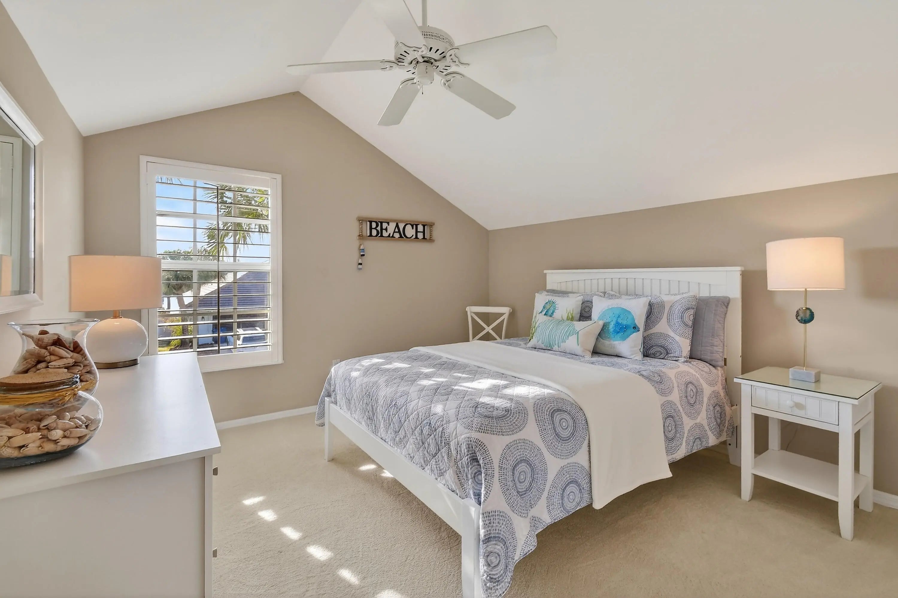Tucked within the intimate, gated seaside enclave of Jupiter Key, just steps from the Atlantic shoreline, this Key West-style residence offers a rare opportunity to own within one of Jupiter's most charming and tightly held coastal neighborhoods. Positioned along a quiet, palm-lined drive directly across from one of the area's few dog-friendly beaches, the setting feels less like a residential development and more like a private coastal village. Morning walks to the ocean, sunset strolls along the sand, and effortless access to beachside dining, fitness, and cultural venues define daily life here. This is a place where the lifestylenot densitysets the tone. Spanning approximately 2,192 living square feet, the residence offers three bedrooms, two full baths, and one half bath, including a desirable main-level primary suite. Soaring cathedral ceilings and expansive impact windows flood the interiors with natural light, while French doors open to a screened tropical porchcreating seamless indoor-outdoor living and embracing the relaxed rhythm of Jupiter's coastal environment. The kitchen is functional and inviting, featuring granite countertops with a full-height granite backsplash, stainless steel appliances, custom wood cabinetry, and generous prep space. An eat-in breakfast area flows naturally into the family room, creating a connected gathering space ideal for everyday living or hosting after a day at the beach. The primary suite enjoys tranquil garden views, tile flooring, and a customized walk-in closet with built-in shelving and cabinetry. The en-suite bath includes dual vanities with granite counters, a soaking tub, and a frameless glass walk-in shower with bench seating. Upstairs, a spacious loft offers flexible living space well suited for a home office, media lounge, or additional guest retreat, while secondary bedrooms are comfortably proportioned and filled with natural light. Outdoors, the screened porch with wood decking and ceiling fan is framed by mature palms and lush tropical landscaping, offering a quiet extension of the living space. Brick paver walkways, classic island architecture, durable Hardie board siding, and a 2017 metal roof reinforce the home's enduring coastal character. A one-car garage provides convenience and additional storage. While the residence presents an opportunity for thoughtful modernization, its volume ceilings, floor plan, and structural integrity offer exceptional bonesan ideal foundation for reimagining a bespoke beach retreat in a location that cannot be replicated. Jupiter Key offers a rare blend of privacy and walkability, with a community pool and direct beach access just moments away. From boating and waterfront dining to boutique shopping, theater, and Palm Beach International Airport, everything that defines Jupiter's coastal lifestyle is within easy reach. In a market defined by the scarcity of true walk-to-the-ocean residences, this property represents an opportunity to secure location, lifestyle, and long-term value within one of Jupiter's most desirable seaside enclaveswhere every day feels like a retreat.