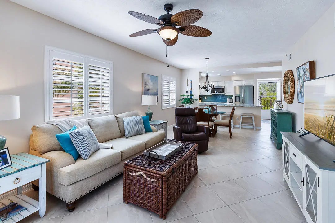 Beautifully renovated and fully furnished, this turnkey 3rd-floor corner condo in Kingswood is located in one of the newer elevator buildings for easy access. This 2BR/2BA residence offers serene views in every direction -- lush tropical greenery from the enclosed lanai with impact glass, and a peaceful lake view from the front. Enjoy coastal breezes flowing in from the nearby St. Lucie River, Indian River, and Atlantic Ocean, with beaches just a short drive away. Kingswood residents have access to a walking trail, clubhouse, heated pool, and shuffleboard, plus great shopping and dining nearby. Move in with confidence thanks to a newer A/C (2022) and water heater (2023).