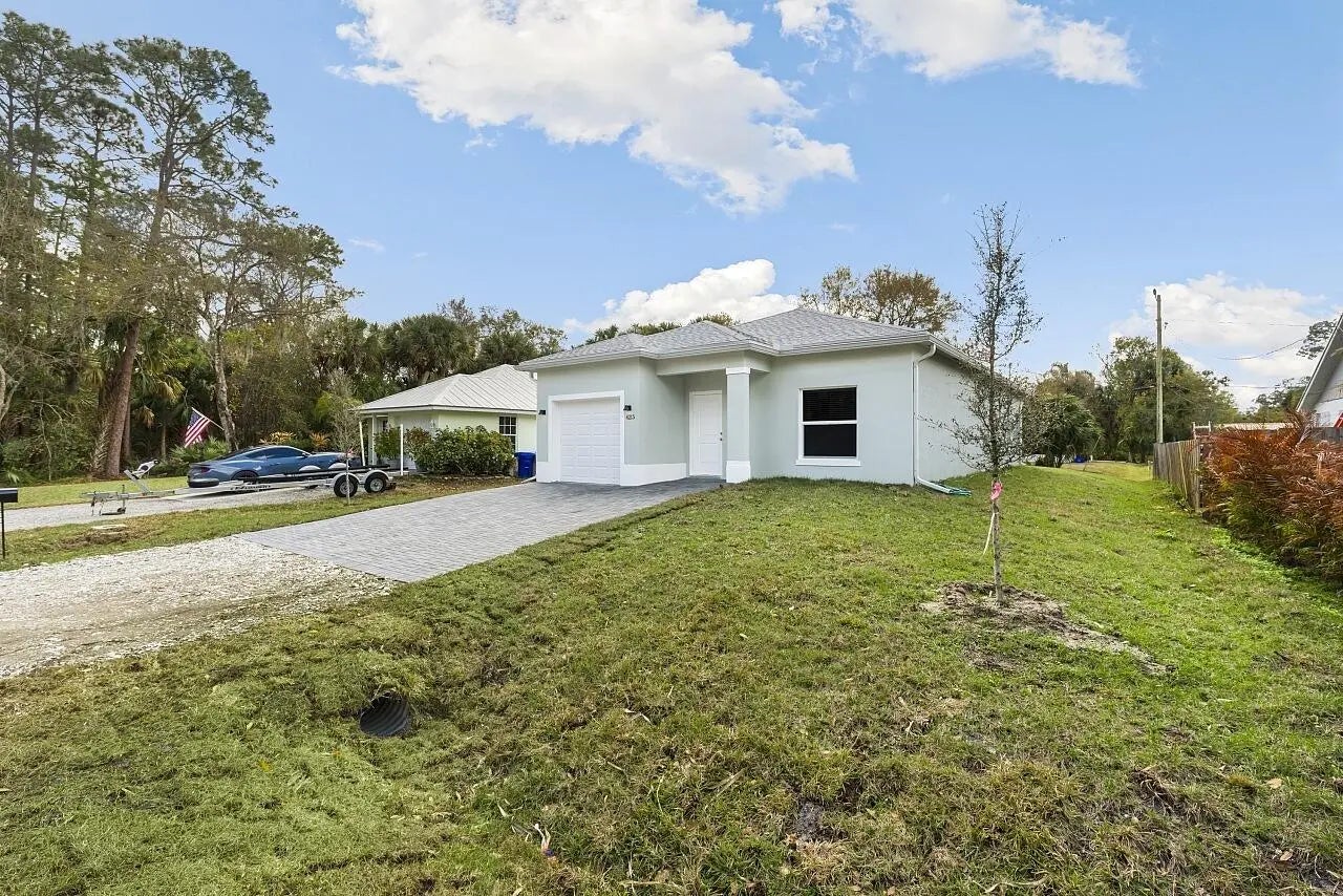 Prime Vero Beach location close to shopping, dining & airport. Short drive to the beach. This new construction CBS home features 3 beds, 2 baths, kitchen with quartz countertops, custom backsplash, large island and stainless steel appliances. Full impact windows and doors, high ceilings, an open/split floor plan. The primary suite has a walk-in closet with built-in shelving & the bathroom features quartz countertops, large vanity & a full tile shower with frameless glass enclosure. Modern tile flooring, LED lighting & neutral paint throughout. 1-car garage and a double paver driveway. NO HOA!
