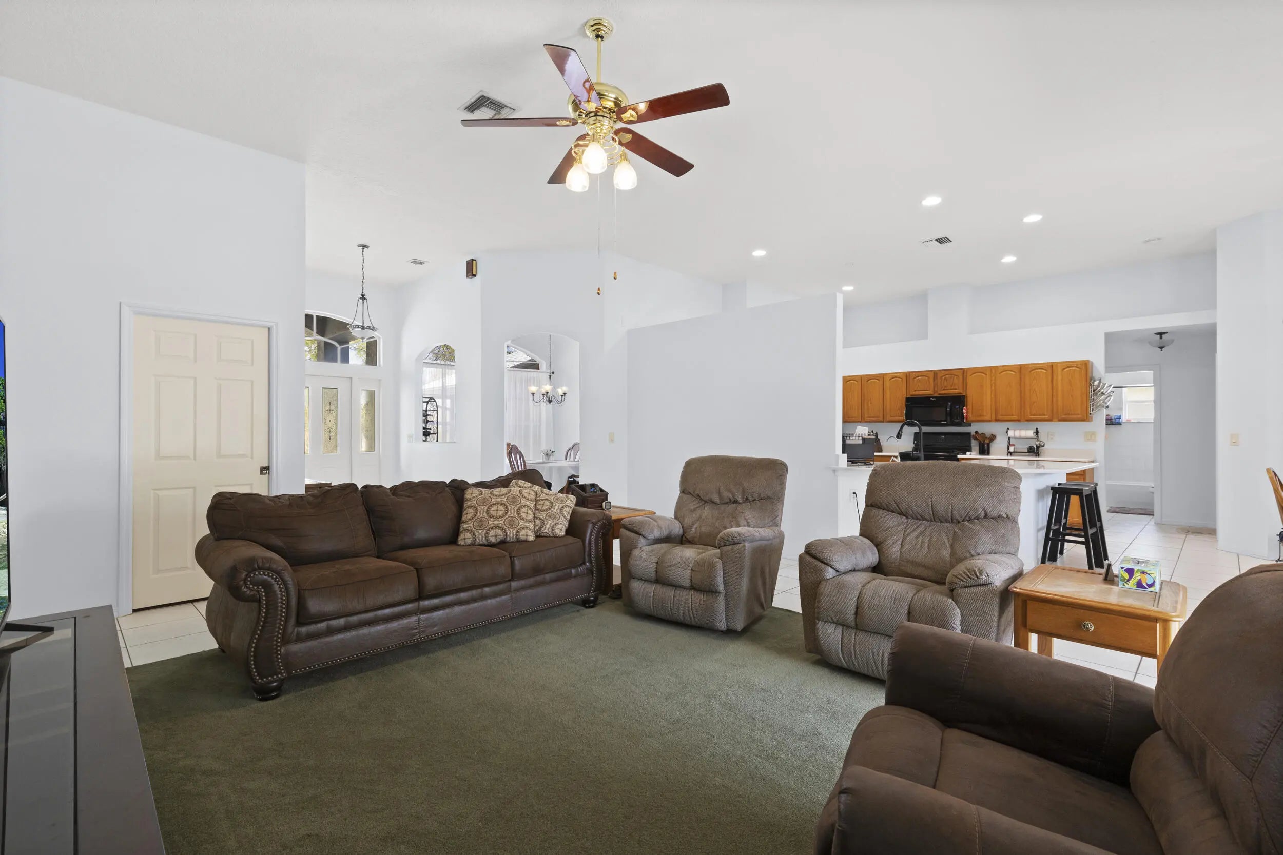 Welcome to The Acreage! This solid CBS construction home offers 3 bedrooms, 2 baths plus a private office convertable to 4th Bedroom., Has 3,103 total square feet and 2,380 sq ft under air. Vaulted ceilings and a spacious open layout creates a bright, comfortable living space. The oversized kitchen features abundant cabinet storage and flows seamlessly into the main living areas. Enjoy a desirable split-bedroom floor plan with a huge primary suite, walk-in closets, and fresh interior paint throughout. Relax year-round in the covered and enclosed patio. The home also features a 2-car attached garage and mature fruit trees, with plenty of room to enjoy the property. Room for Camper & Boat, Build a Guest house ad a pool. Original Owner