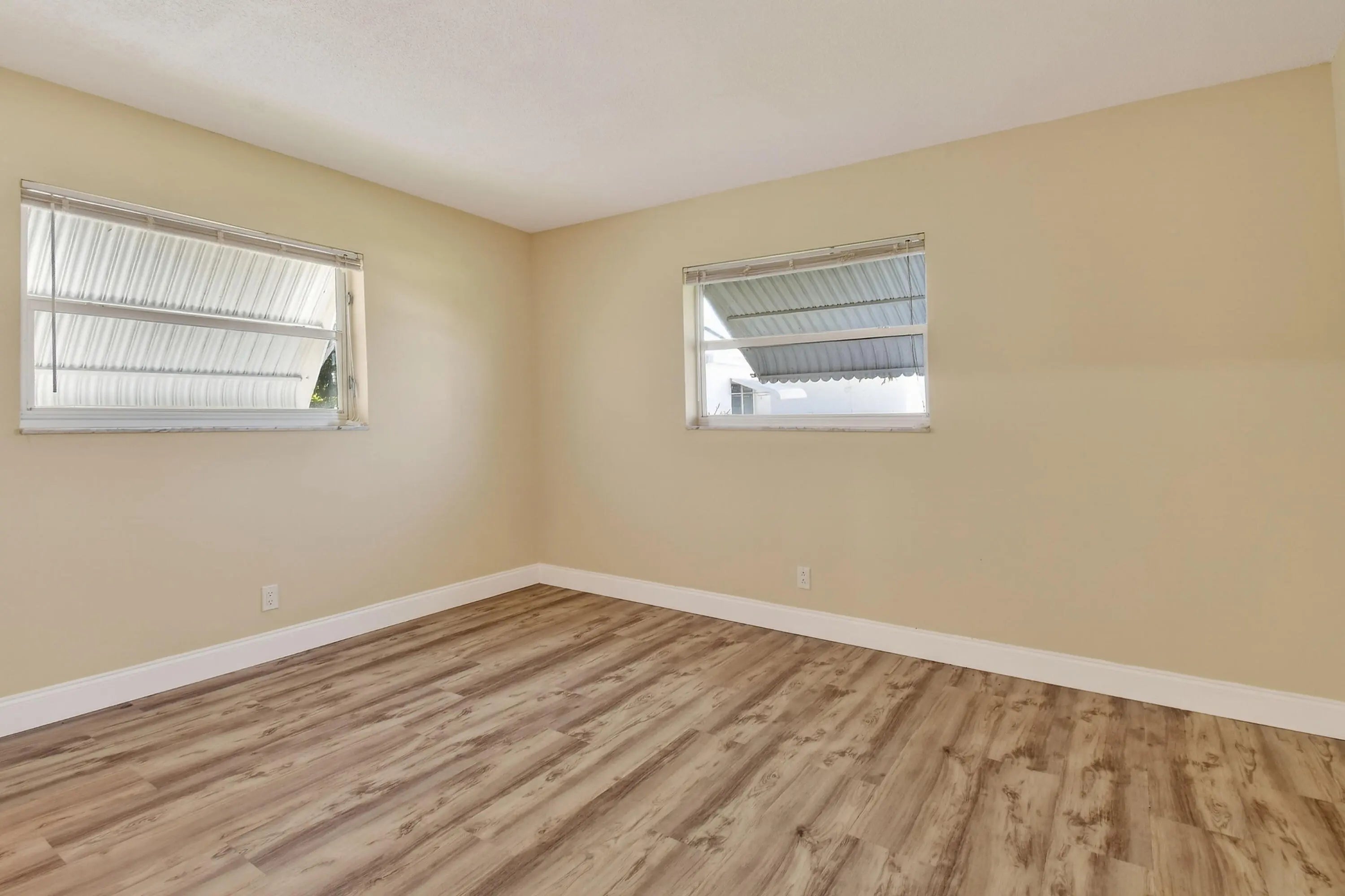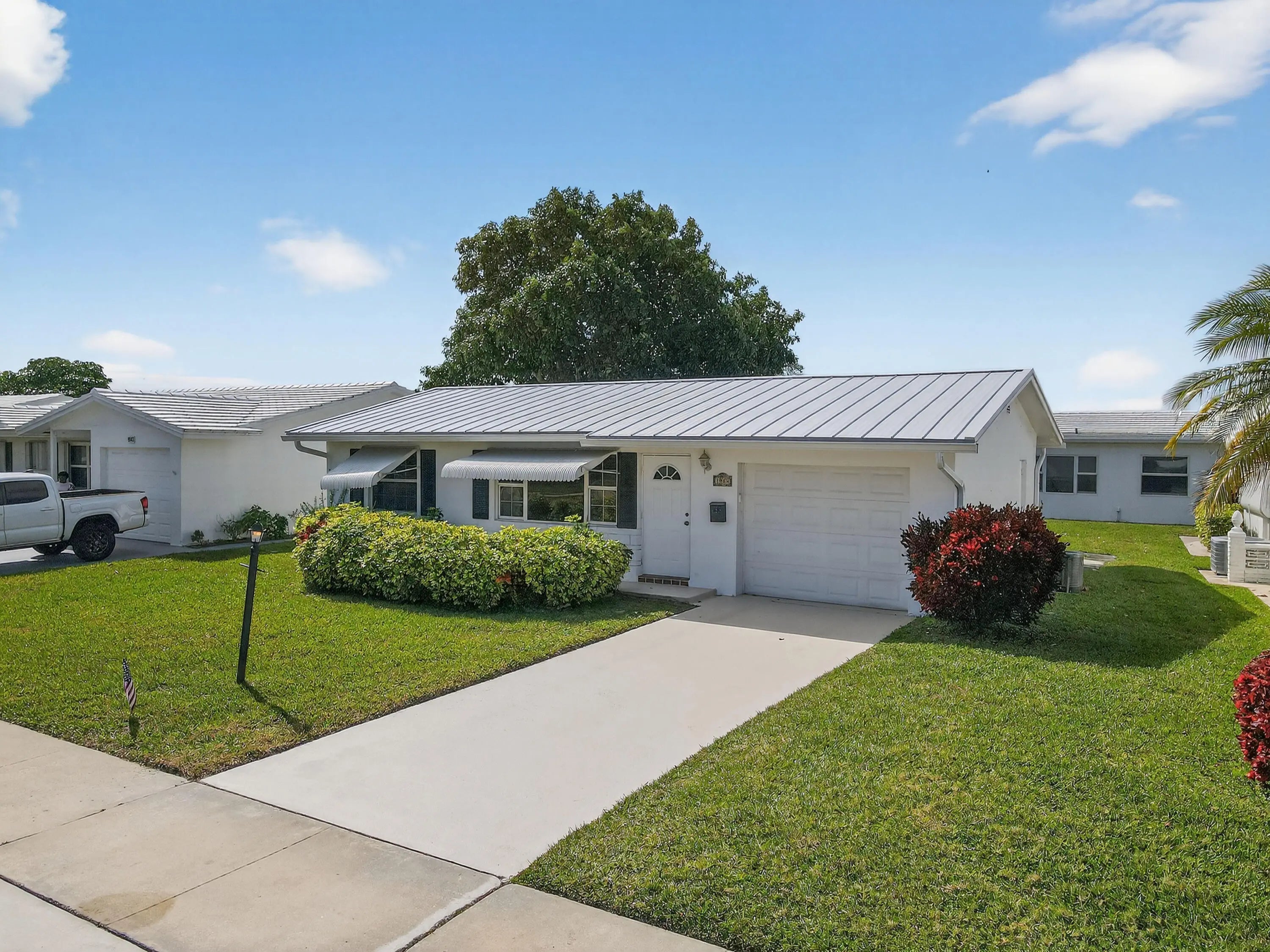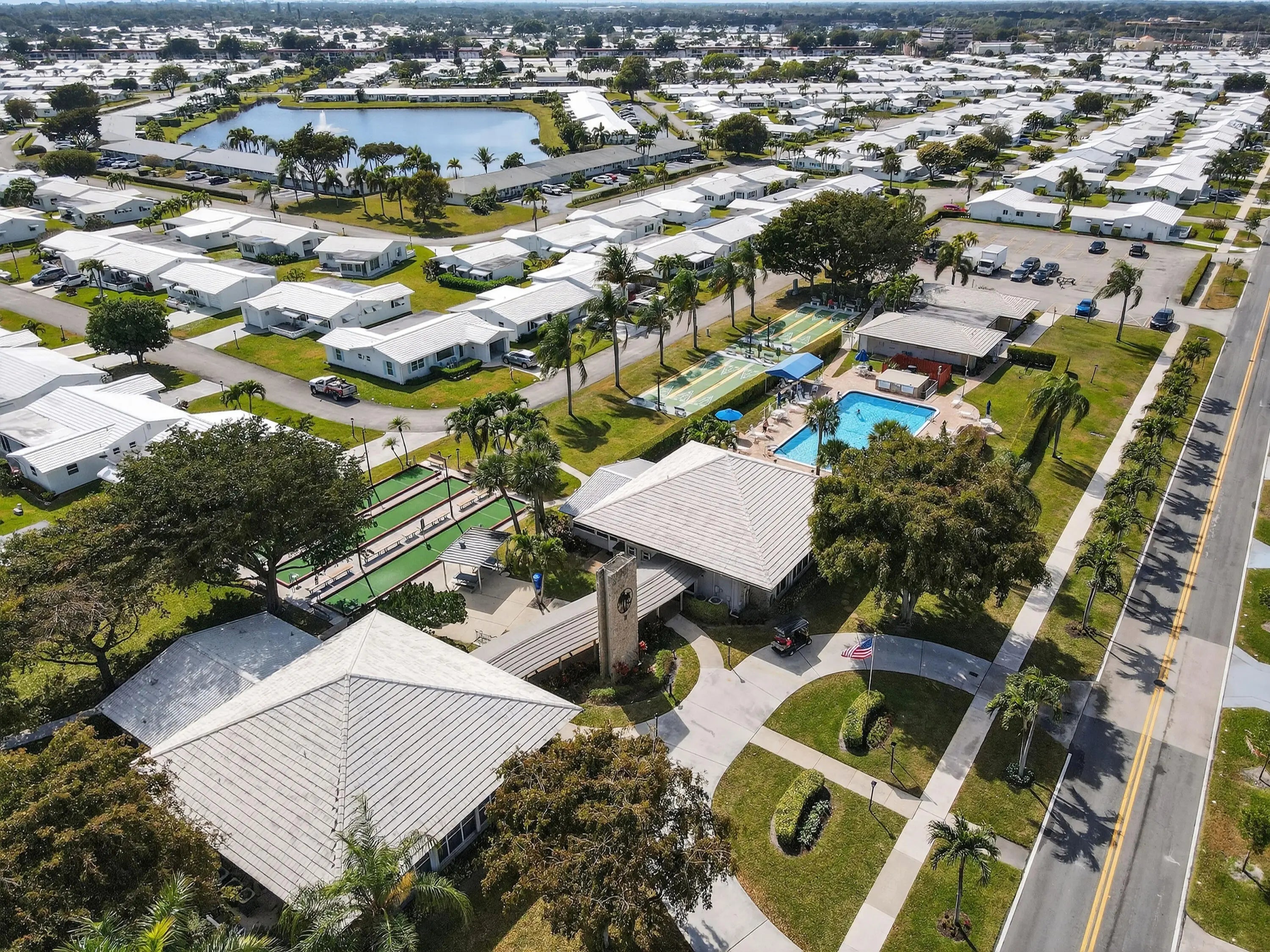 Beautifully maintained single family 2BR/1BA home with flexible bonus area in desirable Palm Beach Leisureville adult community. Investor friendly! Bonus space can easily convert to a 3rd bedroom, den, or office. Features include brand-new roof and A/C, new laminate & tile flooring throughout, washer/dryer hookups, attached 1-car garage, and extended freshly painted driveway. Enjoy private patio and yard space perfect for relaxing or entertaining. Palm Beach Leisureville offers free golf on a par-3 course, three heated pools, clubhouses, and an active social calendar. Minutes to beaches, shopping, dining, transportation, and major roadways. Easy to show.