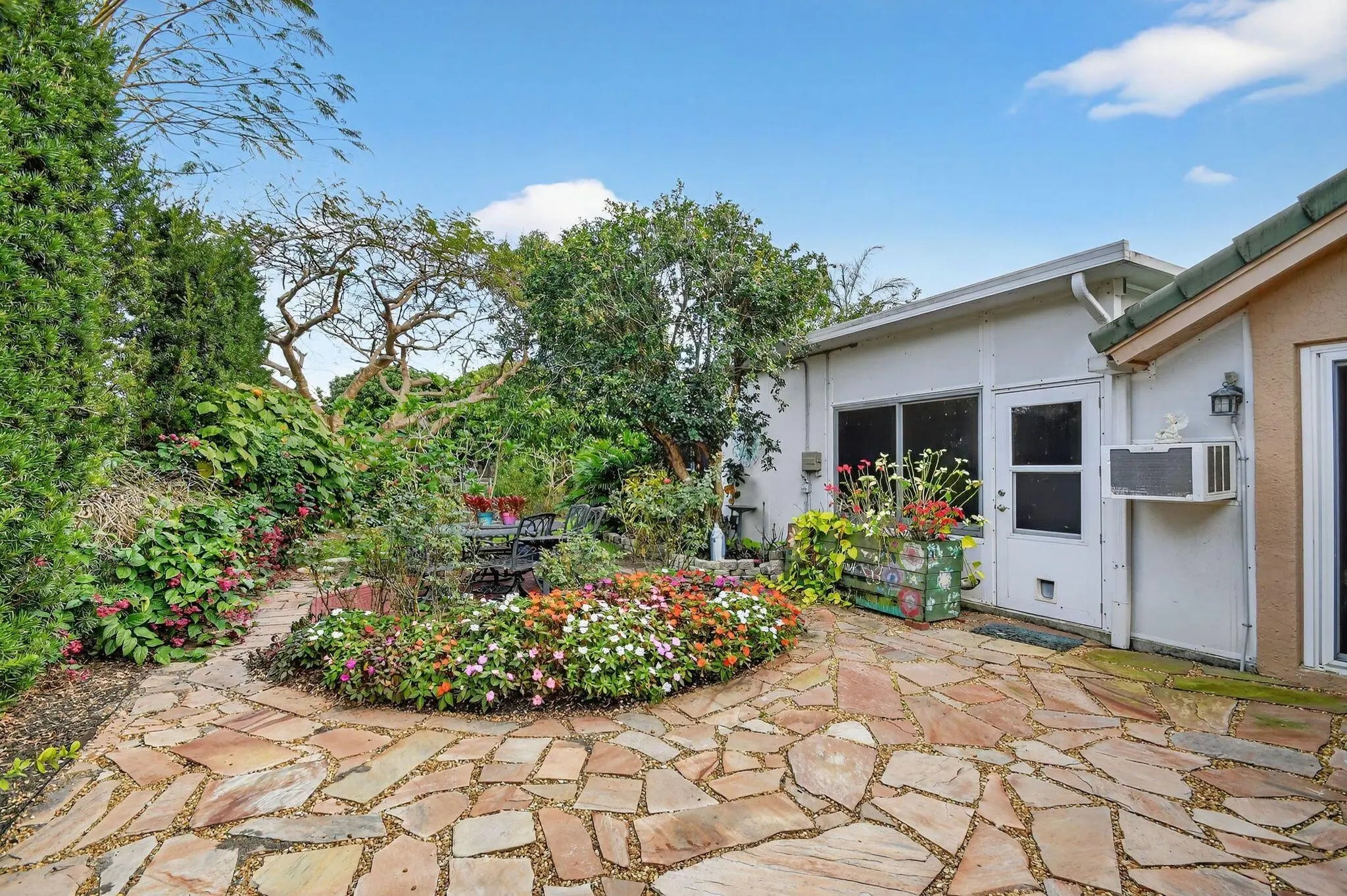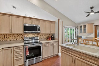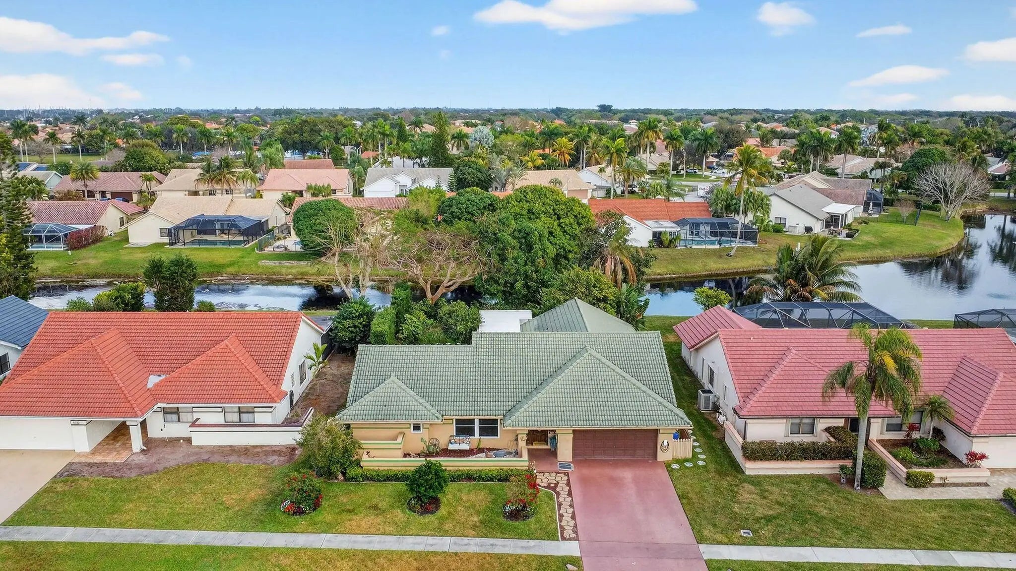 Welcome to your lakefront sanctuary in the heart of West Boynton Beach. This immaculate, ranch-style residence in the sought-after Sun Valley community offers a rare blend of space, serenity, and modern convenience. From the moment you arrive, the meticulously maintained rock garden sets a tranquil tone that carries through the interior's vaulted ceilings and elegant tile and wood flooring. The home's expansive layout is anchored by a central kitchen featuring a large island and stainless steel appliances, seamlessly connecting the formal dining room, living room, and family room for effortless entertaining. Versatility is a hallmark of this property, which features a private office built into the garage--which the seller can remove if preferred--as well as a fully air-conditioned Florida room. This flexible space is perfect for a fifth bedroom, home office, or a sun-drenched playroom. Peace of mind is guaranteed with updated windows throughout, while the inclusion of a EV charger ensures the home is ready for the future. The outdoor living space is a true tropical retreat. Step into your private zen garden, where lush landscaping and vibrant flowers lead to a peaceful water view. The property is a gardener's dream, boasting a mature fruit grove that includes starfruit, mango, avocado, and cherry trees. Combining move-in-ready comfort with the ultimate South Florida lifestyle, this lakefront gem is a must-see. Super low HOA includes pool, cable and internet. Schedule your private tour today!