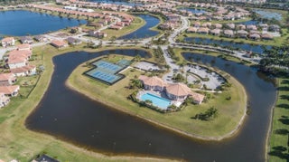 Available short-term only (6 months). Elegant lakefront home on a quiet cul-de-sac, ideal for relocation, executive housing, or seasonal stay. This light-filled residence features a spacious eat-in kitchen with granite countertops and stainless-steel appliances, den/office, large loft, and a second-floor primary suite with two generous walk-in closets. Enjoy a gorgeous, covered balcony upstairs and a covered patio overlooking lush tropical landscaping with serene lake views. Located in a gated community offering clubhouse, pool, fitness center, and tennis courts. Conveniently just minutes to the beaches, dining, and shopping. Available now.