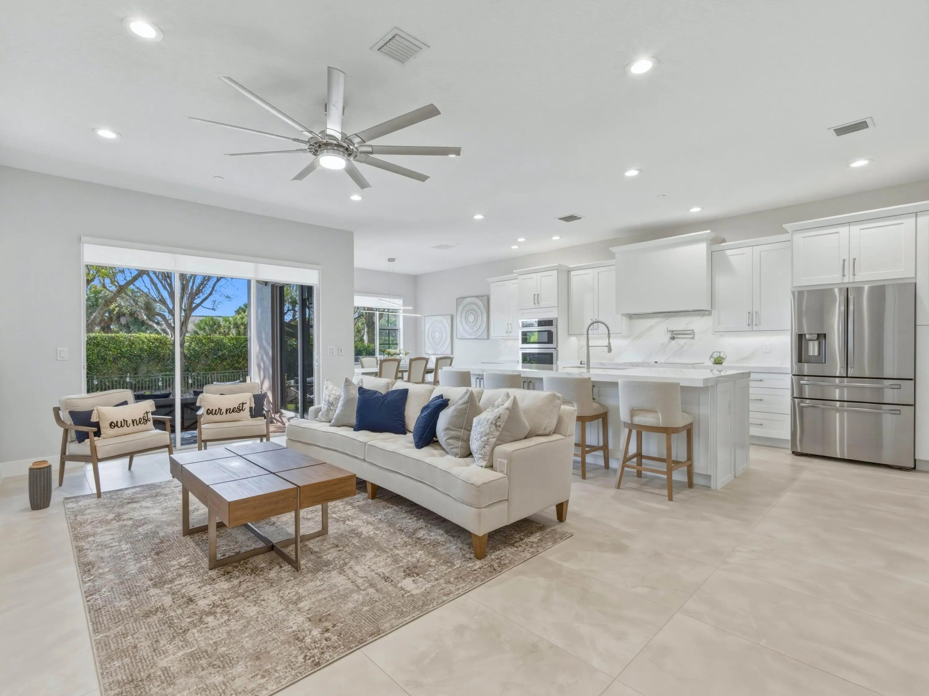 Welcome to this beautiful and exceptionally spacious townhouse in the highly desirable Carriage Pointe community of Boynton Beach. Offering over 2,200 square feet of thoughtfully designed living space, this stunning 3-bedroom, 2.5-bath residence perfectly blends comfort, style, and functionality. Step inside to discover a bright, open-concept floor plan ideal for entertaining and everyday living. The expansive kitchen features generous counter space and ample storage, seamlessly flowing into the oversized living and dining areas creating the perfect setting for gatherings or relaxed evenings at home. Upstairs, the spacious primary suite serves as a true retreat, complete with a massive walk-in closet designed to accommodate all your storage needs. A versatile loft area offers flexibility for a home office, gym, media space, or playroom. Two additional bedrooms provide comfort and privacy for family or guests. Enjoy peaceful outdoor living on your private back patio perfect for morning coffee or evening relaxation. The home also features a two-car garage plus an additional two-car driveway, offering rare and convenient parking for up to four vehicles. Carriage Pointe offers exceptional value with one of the lowest HOA fees in the area at just $189 per month, which includes access to the community pool and cable. Ideally located within walking distance to Caloosa Park, residents enjoy tennis courts, pickleball, basketball, scenic walking trails, and a tranquil lake. Plus, you're just minutes from the pristine beaches, I-95, and the vibrant dining, shopping, and entertainment of Atlantic Avenue in downtown Delray Beach.