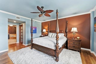 Light & bright 4th floor END UNIT w/2BR + den, 2BA overlooking the Intracoastal, rich wood floors, impact glass, semi-private elevator access. Open concept, split floor plan w spacious owners suite w/his & her walk-in closets with all custom doors throughout the condo. Stone accent wall in the foyer, renovated kitchen cabinets and countertops featuring stainless steel appliances, crown molding, updated bathrooms, all custom doors throughout, rich hardwood floors & plantation shutters! 24/7 manned gate, valet. rooftop oasis w/pool, spa, BBQ areas, tennis/pickleball. Walking path w/gazebo, clubhouse, billiard room & fitness center. Adjacent marina w/dry docks available, minutes to ocean; no fixed bridges! Pet friendly & social community