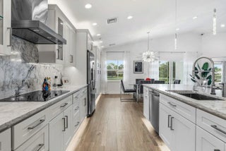 This meticulous waterfront home with the best exposure offers modern finishes, high-efficiency systems, and full smart-home integration. A true turnkey property offering modern comfort, efficiency, and peace of mind. Features include impact windows, doors, 2020 roof, hurricane-rated garage door and expanded screened enclosed patio with floating tile floor. Interior upgrades include tile flooring throughout, doors and trim, LED lighting, and ceiling fans. Expanded kitchen with white shaker cabinetry, GE Profile stainless steel appliances, induction cooktop, exterior-vented hood, touch-activated faucet, and LG front-load washer/dryer. Fully renovated bathrooms with tile, frameless shower doors, vanities, fixtures, and fans. Major system updates include high-efficiency variable-speed A/C with newer ductwork and WiFi thermostat, high-efficiency water heater with leak detection and remote programming, hot water circulator pump, plumbing replaced with PEX plumbing, updated electrical panel (Square D breakers), whole-house fire alarm and security system. Smart home/data network wiring throughout with rack, patch panels, wiring to all rooms and TV locations, plus 3 WiFi access points. Central vacuum system installed for convenience. This home was completely updated and upgraded but rarely lived in. The community has so much to offer, including a stunning two story clubhouse with cafe, theatre, card room, billiard room, library, stunning lakefront swimming pool, pickleball, sauna, shuffleboard, manager on site and so much more!