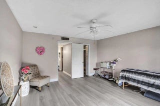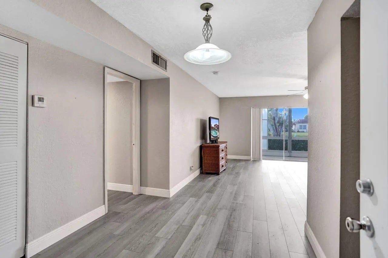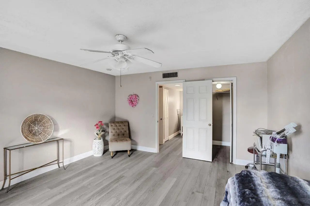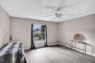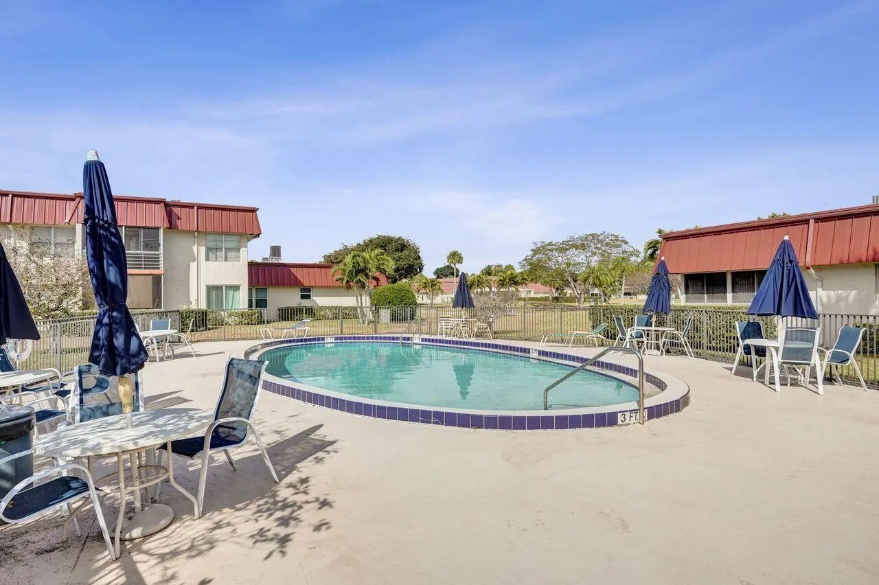 Updated groundfloor condo with peaceful waterfront views and larger room sizes than the 1.5bath models. Features include new flooring, fresh paint, no carpet, updated bathroom, and new refrigerator and range. 2024 roof. Enjoy a private screened and enclosed patio overlooking the water. Community offers a clubhouse, fitness center, and four pools. Located across from Commons Park and close to shopping, dining, PBI Airport, and beaches.