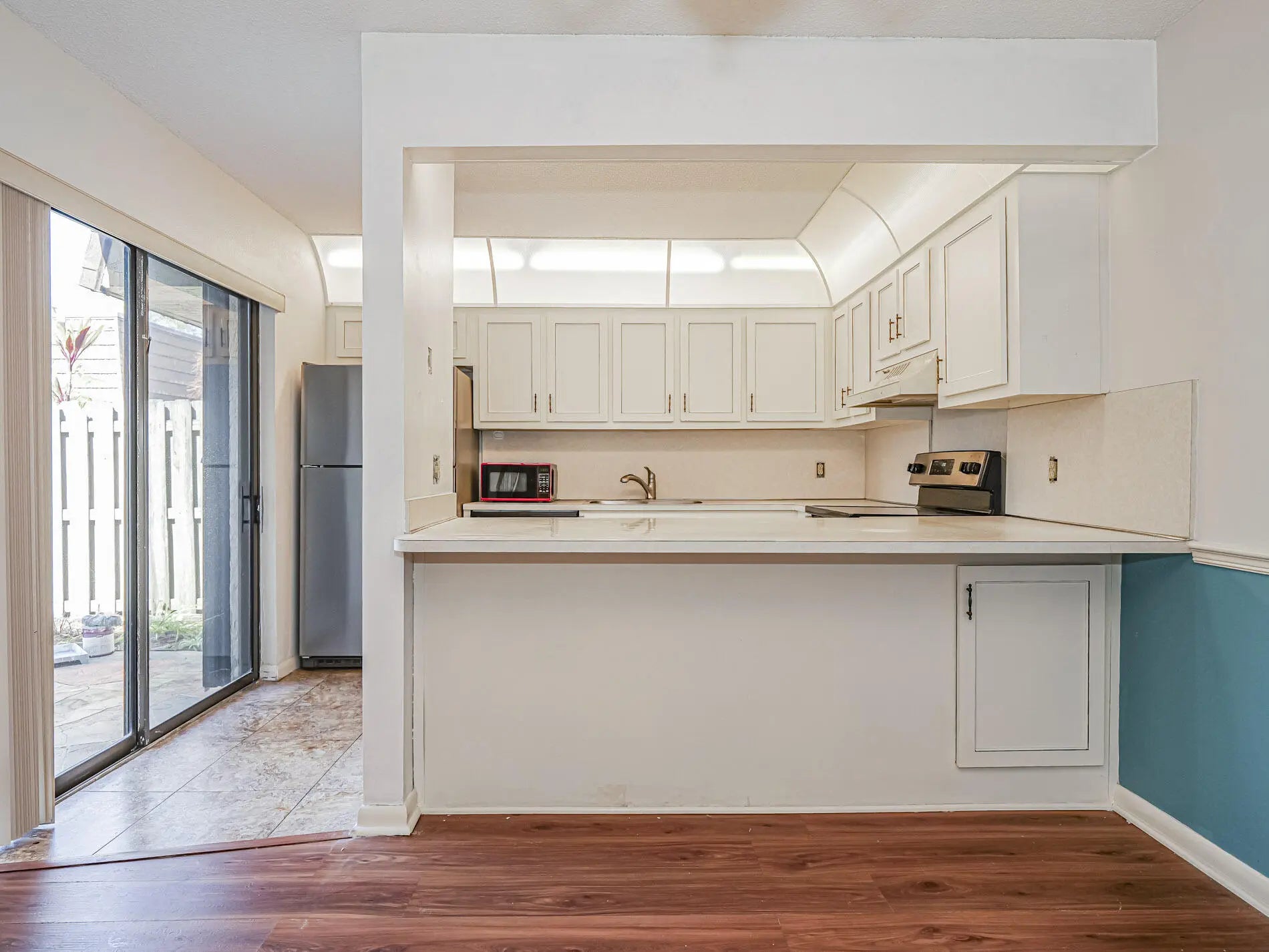 Enjoy easy coastal living in this move-in-ready villa in Tropic Grove Villas Full set of accordion style hurricane shutters. New patio installed. Solid vinyl waterproof plank floors, large living room with sliders to private patio, plus updated kitchen and separate dining room, and 2.5 updated baths. Located just 2 miles from the beaches, this two-level residence offers 1,140 sq ft of comfortable living space. The first floor features a convenient powder room and full-size washer and dryer. Residents enjoy access to a community pool, and low association dues cover exterior maintenance, master insurance water and sewer costs, plus community has pool No age restriction. Pets allowed. 2 miles to beaches!