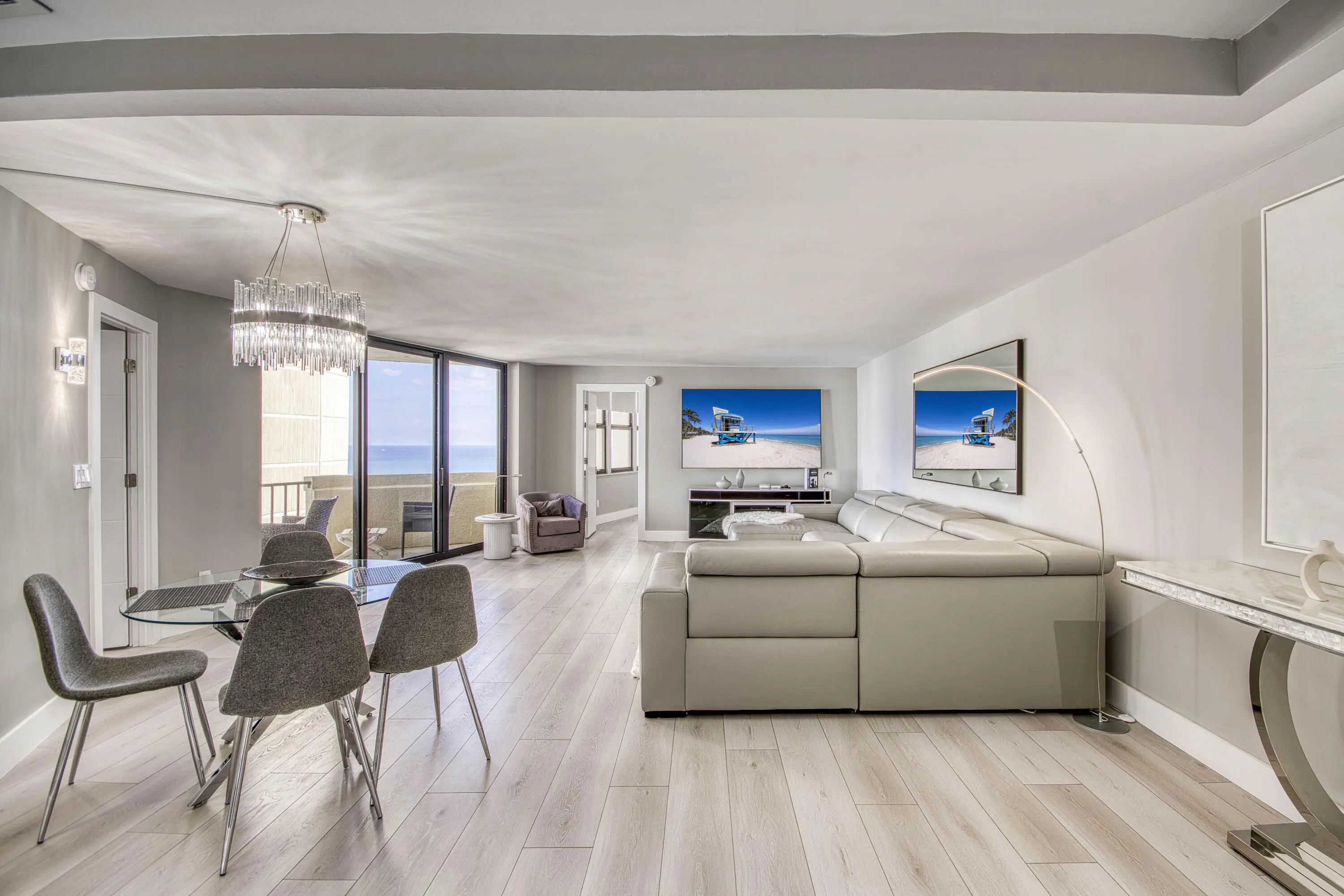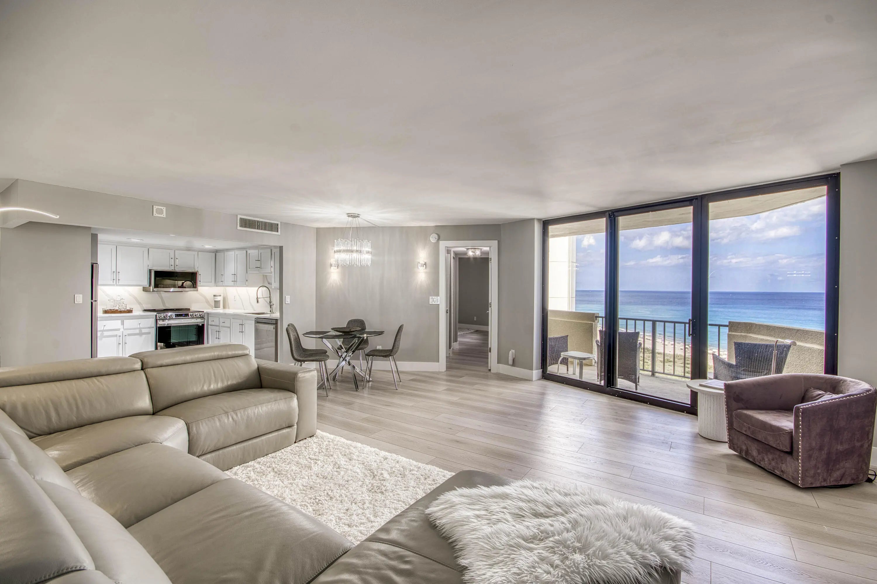 Stunning ocean views from every room define this beautifully updated and well-maintained 2BR residence in Phoenix Tower. Light-filled and inviting, this fully renovated condo offers a stylish coastal design with sweeping north- and south-facing views of the Atlantic and wide sandy beaches. The open floor plan features new flooring, updated lighting, and a bright living area with a cozy fireplace overlooking the ocean. The modern kitchen is equipped with white cabinetry, quartz countertops, under-cabinet lighting, and stainless-steel appliances. The spacious primary suite offers breathtaking ocean views, walk-in and secondary closets, and a stunningly renovated en-suite bath with glass shower doors and updated cabinetry. An expansive balcony provides the perfect setting to enjoy sunrise coffee and ocean breezes. Phoenix Tower is one of only three buildings on the island permitting 30-day rentals up to four times per year, making it highly desirable for investors and seasonal owners alike. Residents enjoy resort-style amenities including a pool, private beach access, tennis and pickleball courts, clubhouse, BBQ area, and assigned parking. The community is currently undergoing a full transformation with concrete restoration, refreshed interiors and exteriors, modernized courts, upgraded parking, and redesigned lobbies -- enhancements set to further elevate value and appeal. Conveniently located near shopping, dining, water sports, and Palm Beach International Airport, this is coastal living at its finest.