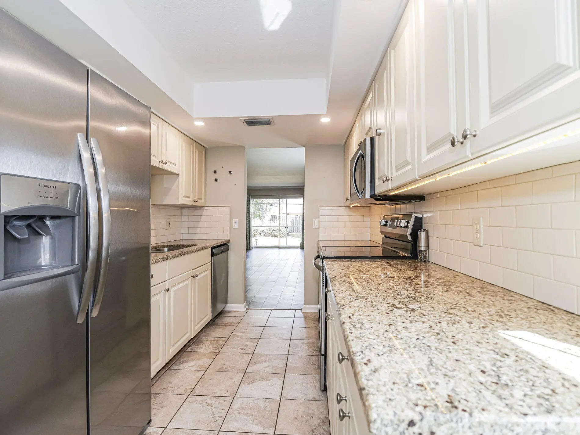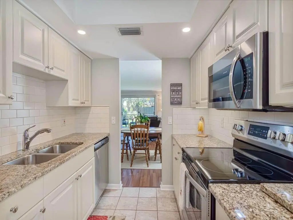 Completely renovated first-floor 2-bedroom, 2-bathroom condo in Tropic Grove Condos. Features include plank tile flooring throughout, a modern kitchen with granite countertops and newer appliances, and updated bathrooms. Unit includes washer and dryer. Conveniently located near shopping and dining, and just a short drive to the beaches.