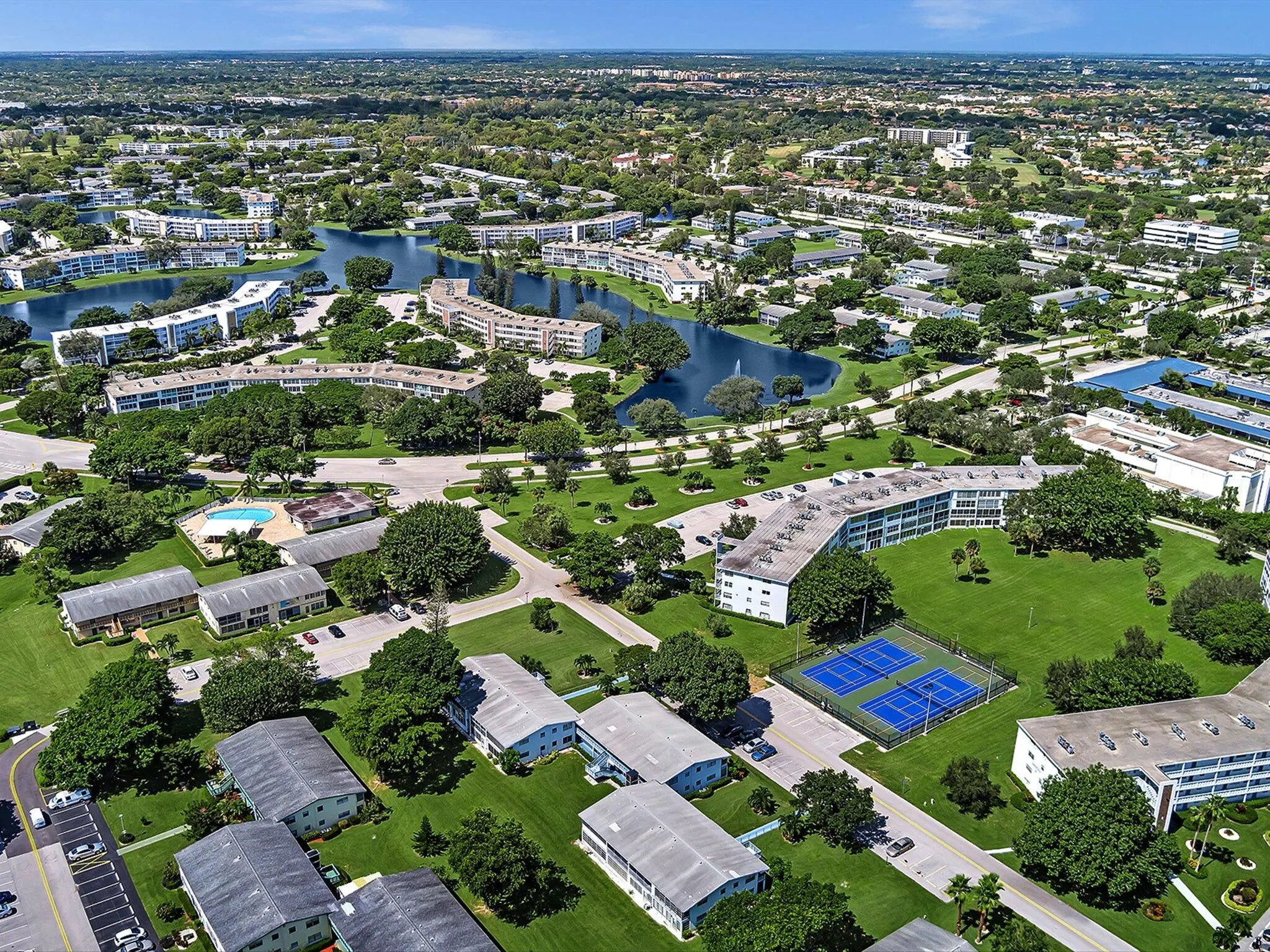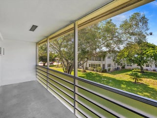 Welcome to Century Village East! This charming 1-bedroom, 1-bath condo in Tilford M offers fresh paint, professional cleaning, and a move-in ready space. Located on the second floor, it features tile floors throughout the main living areas, plush carpet in the bedroom, and a serene screened-in patio with beautiful tree views and extra storage.