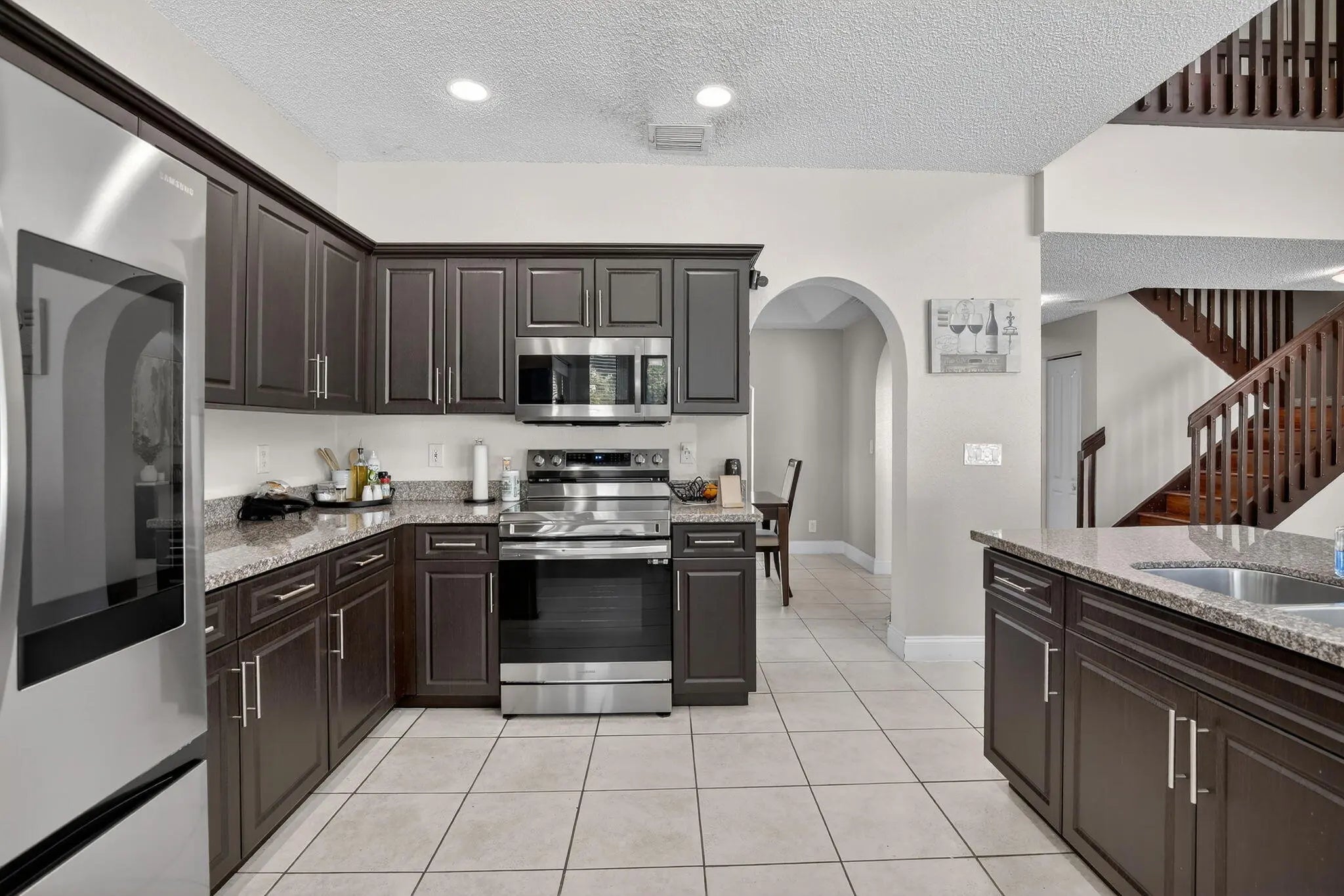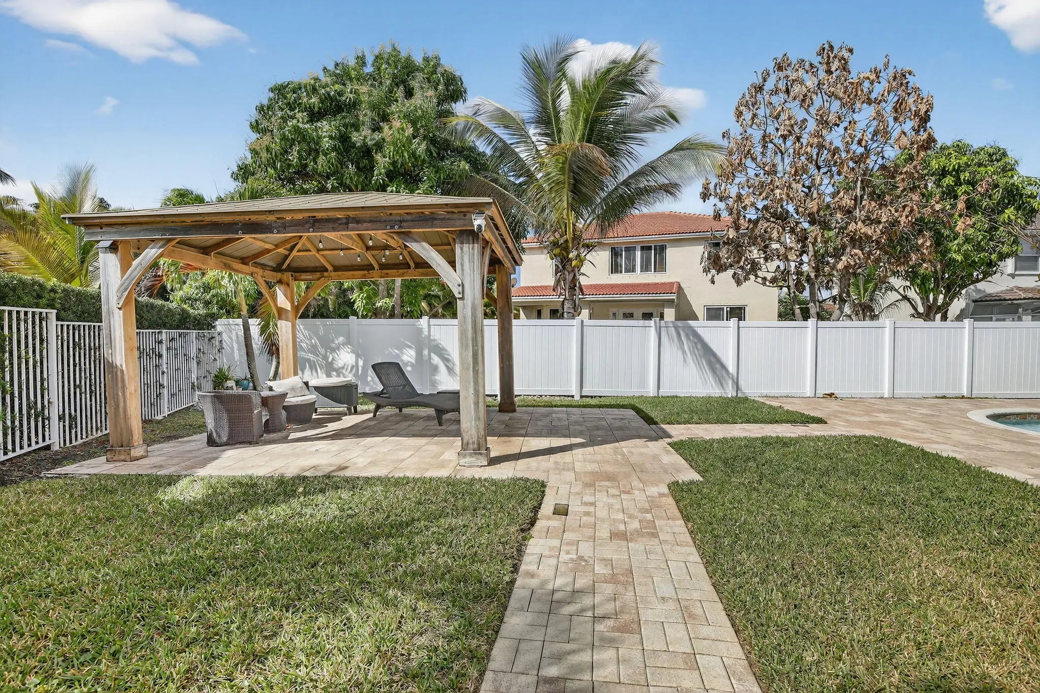 Welcome Home to the gated community of Encantada where you will find this beautiful 2 story pool home. The double door entry will greet you, flowing into the friendly living space of the formal living room & formal dining room. Continue on to the large family room & the beautiful kitchen with Smart stainless-steel appliances and eat-in nook. The oversized island is great for hosting. The downstairs bedroom is perfect for guests. Upstairs you will find the privacy of the large master bedroom and master bathroom with dual sinks, corner shower and a separate corner bathtub for relaxing. There are 2 additional bedrooms also located upstairs. Once in the backyard, you will be greeted with pavers flowing around the pool, to the separate seating & entertaining areas, and to the shady gazebo.