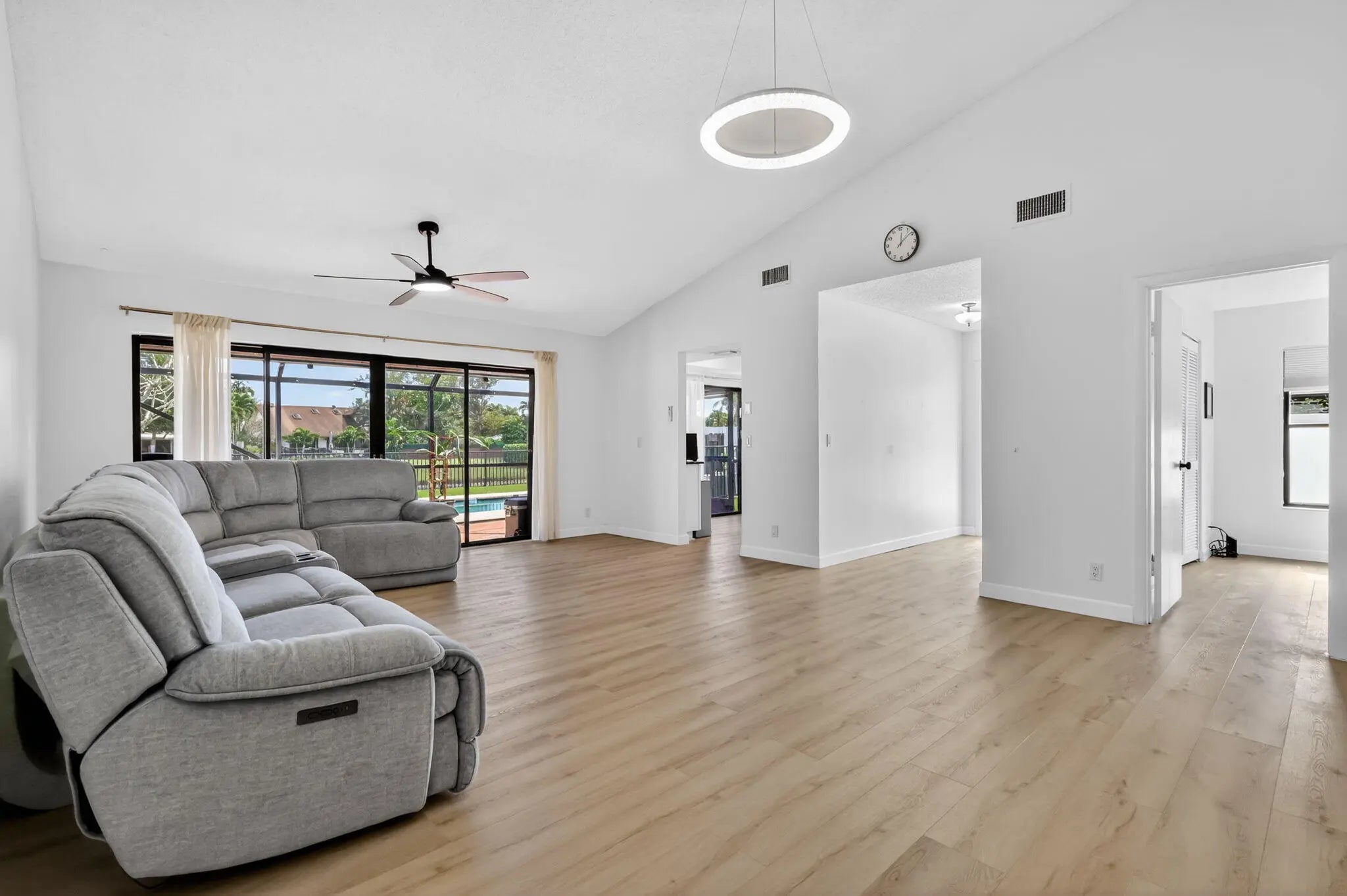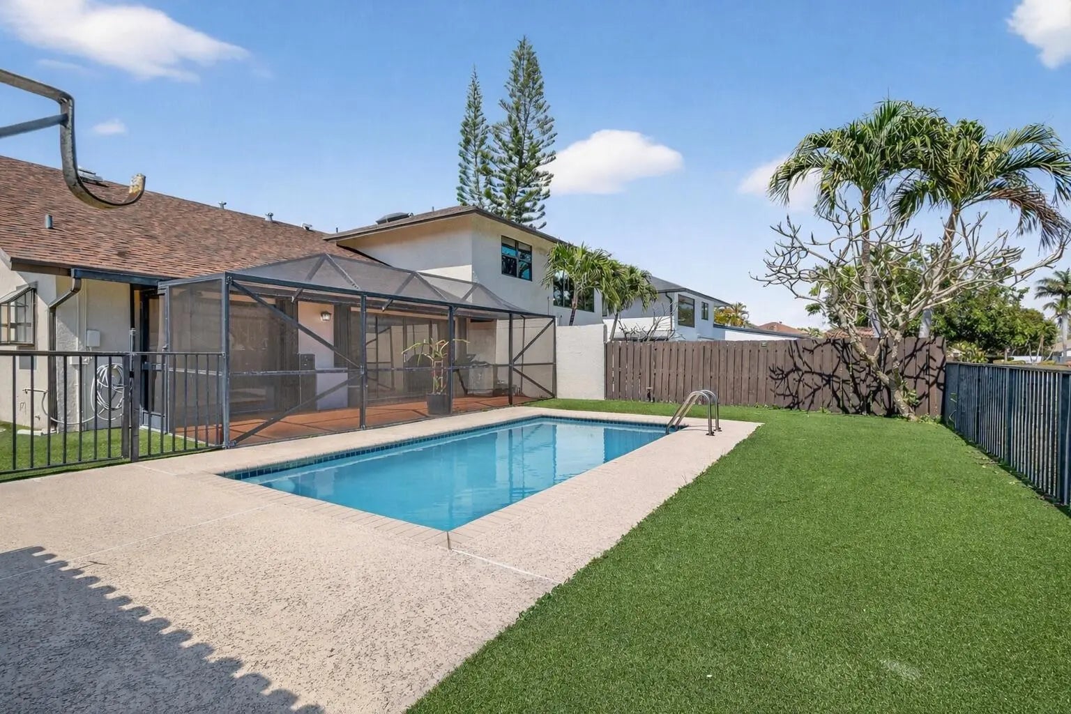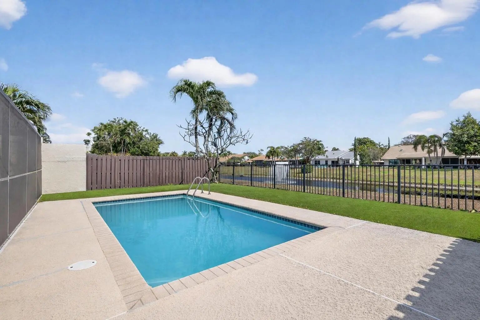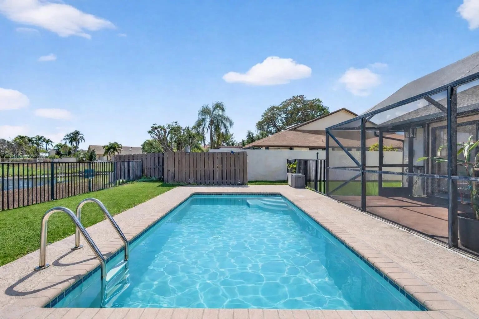 Priced to Sell! Don't miss this beautifully updated 2/2 pool home with serene lake views and a private, fully enclosed turfed yard - perfect for entertaining, pets, or simply enjoying the Florida lifestyle. Located in the desirable Woodlake community, with a very low HOA fee, this property offers exceptional value. Thoughtfully upgraded in 2024, this home features brand-new flooring throughout, new: washer and dryer, refrigerator, stylish bathroom vanities, updated lighting fixtures. And, the roof is from 2018. The open layout offers comfortable living spaces filled with natural light, while the backyard oasis provides the ideal setting for relaxing poolside with peaceful water views. Just minutes from vibrant Downtown Delray Beach, Atlantic Ave dining and shopping, and its beaches