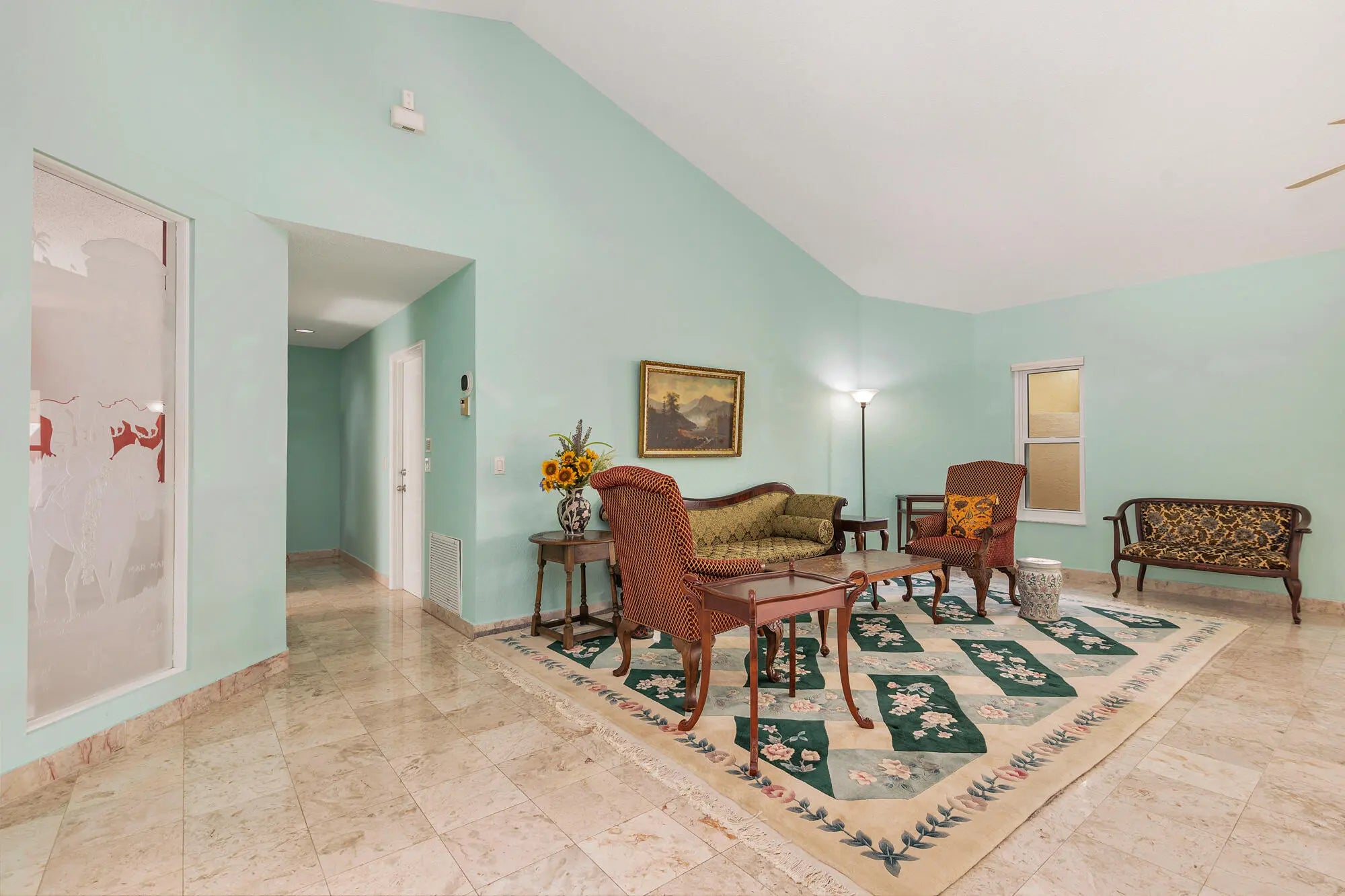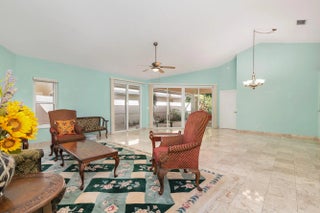 Located in sought-after Breakers West, this 3BR, 2.5BA home offers over 2,000 A/C sq ft with golf course frontage along Mayacoo Lakes. Quiet and private setting. Marble floors and vaulted ceilings highlight the spacious Great Room, which opens to a screened patio with marble pavers. Kitchen features KitchenAid stainless steel appliances and granite countertops. Large primary suite with walk-in closet, separate tub and shower. Split floor plan provides privacy for guest bedroom and versatile den (possible 3rd bedroom). Full hurricane impact glass windows, A/C (2019), Roof (2010). Non-mandatory memberships available at Breakers West, Mayacoo Lakes and Breakers Palm Beach country clubs. 15 min to PBIA, Downtown WPB and Wellington. 20 min to Palm Beach. 5 min to Kings Academy, 15 min to Oxbr