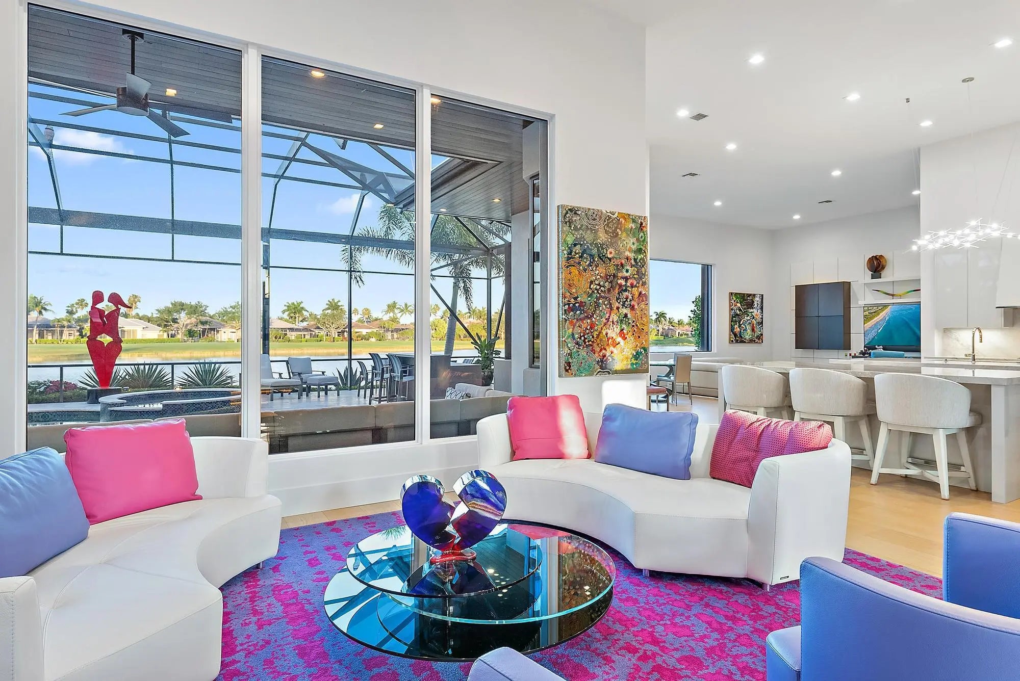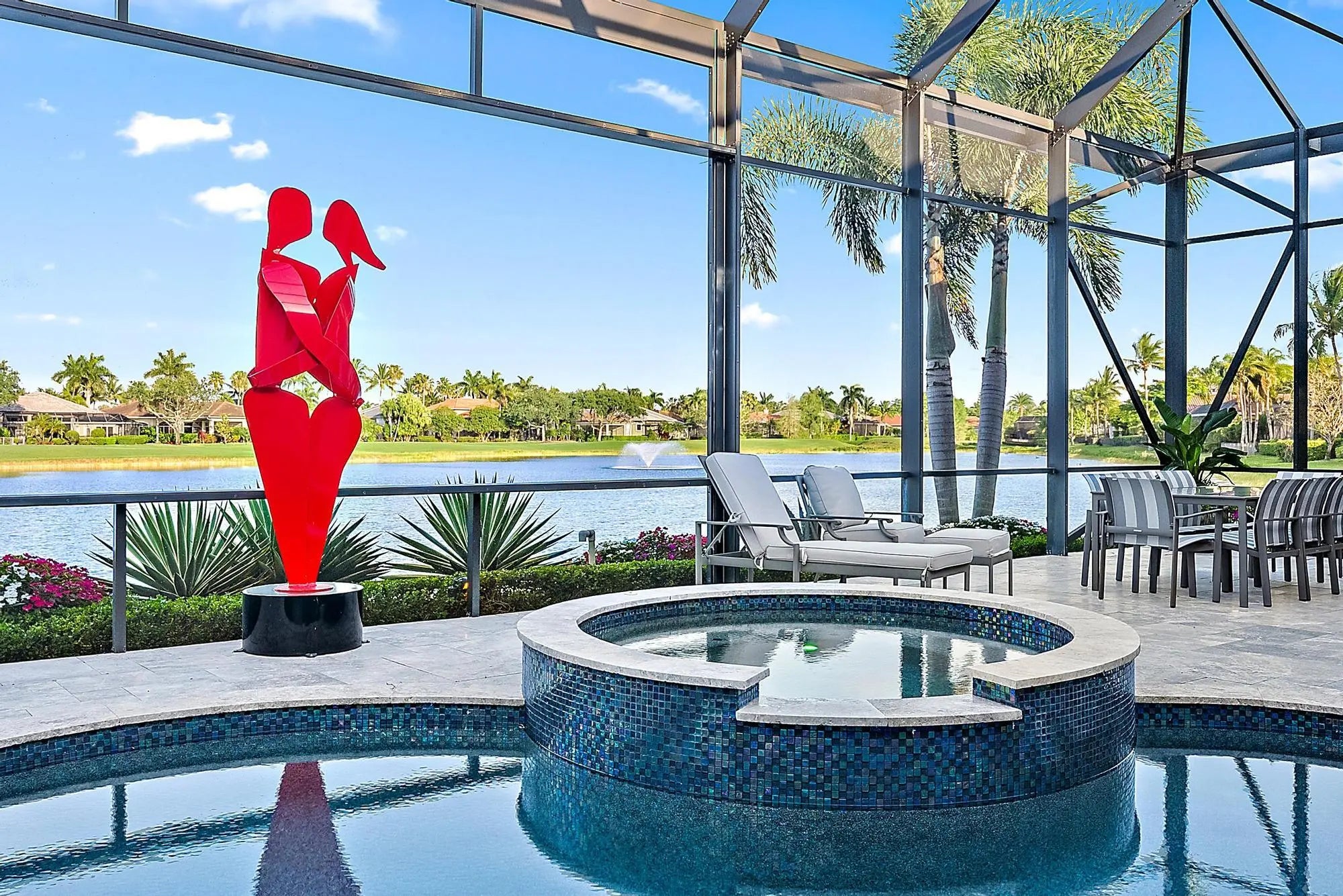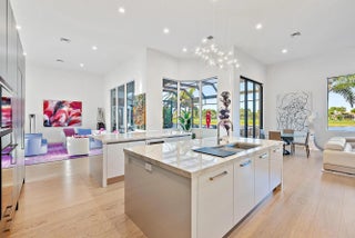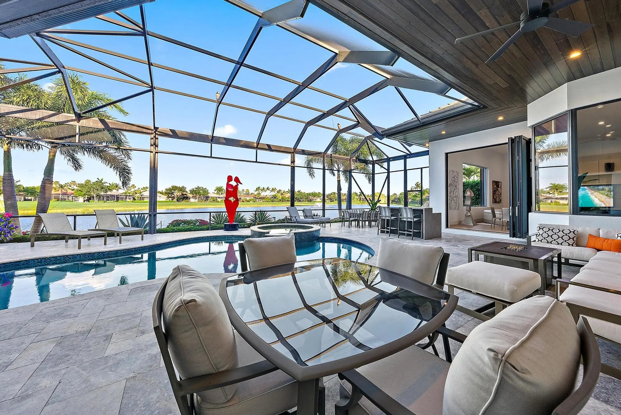 IMMEDIATE PREMIER GOLF MEMBERSHIP AVAILABLE WITH THE PURCHASE OF THIS HOME. A contemporary reinvention unlike anything Ibis has ever seen. Located in prestigious Hawk's Landing-- Ibis's ''Street of Dreams''--this fully reimagined 4BR/4BA + Den waterfront estate represents a level of transformation and design rarely achieved. Set on a prime lot with 100 feet of wide, east-facing water frontage, the architecture was thoughtfully redesigned to reflect a contemporary aesthetic and maximize panoramic views and natural light. The home underwent a comprehensive exterior transformation including impact glass throughout, a smooth-finish stucco façade, new roof (2018), redesigned driveway, and new garage doors, creating striking curb appeal and long-term peace of mind. The outdoor living experience was elevated to resort caliber with a complete redesign of the pool environment. Enhancements include new pool equipment with a saltwater system, refreshed tile work, a redesigned pool deck, and a custom outdoor kitchen featuring Sub-Zero refrigerator drawers and a premium Hestan grill. A porcelain-tiled accent wall, teak ceiling detail, accordion sliding door system, and professionally redesigned landscaping by Gary Mothersille, complemented by new outdoor lighting, complete the serene waterfront setting. Inside, the scale of renovation continues. In 2023, the main living areas were dramatically redesigned with new architectural walls, ceiling treatments, custom lighting, and engineered hardwood flooring, culminating in the installation of a stunning twin-island Downsview kitchen featuring a Wolf induction cooktop and Galley sink--a chef's showpiece blending innovation and refinement. The following year, the two guest baths were fully updated, and the primary suite was transformed into a spa-level retreat with all-new plumbing, custom fixtures, glass enclosures, and hand-painted wall coverings. An exterior pump was added to ensure superior and consistent water pressure--an often-overlooked but meaningful upgrade. The garage is equipped with a dedicated electric vehicle charging station. This residence is being offered fully furnished (artwork excluded) with an extraordinary collection of designer pieces primarily sourced from Roche Bobois, along with premium outdoor furnishings by Brown Jordan. The primary suite includes a king-size bed with a Sleep Number premium mattress, and two golf carts--EZ-GO and Club Car--are included for effortless community living. Additional enhancements include Premier Garage custom cabinetry, a refinished garage floor, integrated generator system, and extensive storage and workshop space. Located within walking distance--or a quick golf cart ride--to Ibis's world-class amenities, this home offers immediate access to a 90,000-square-foot clubhouse, three Nicklaus-family championship golf courses, five dining venues, a world-class fitness complex and spa, and premier tennis and pickleball facilities. This is not merely a renovation. It is a complete contemporary reinvention--executed with intention, precision, and uncompromising quality--offered turnkey for the most discerning buyer.