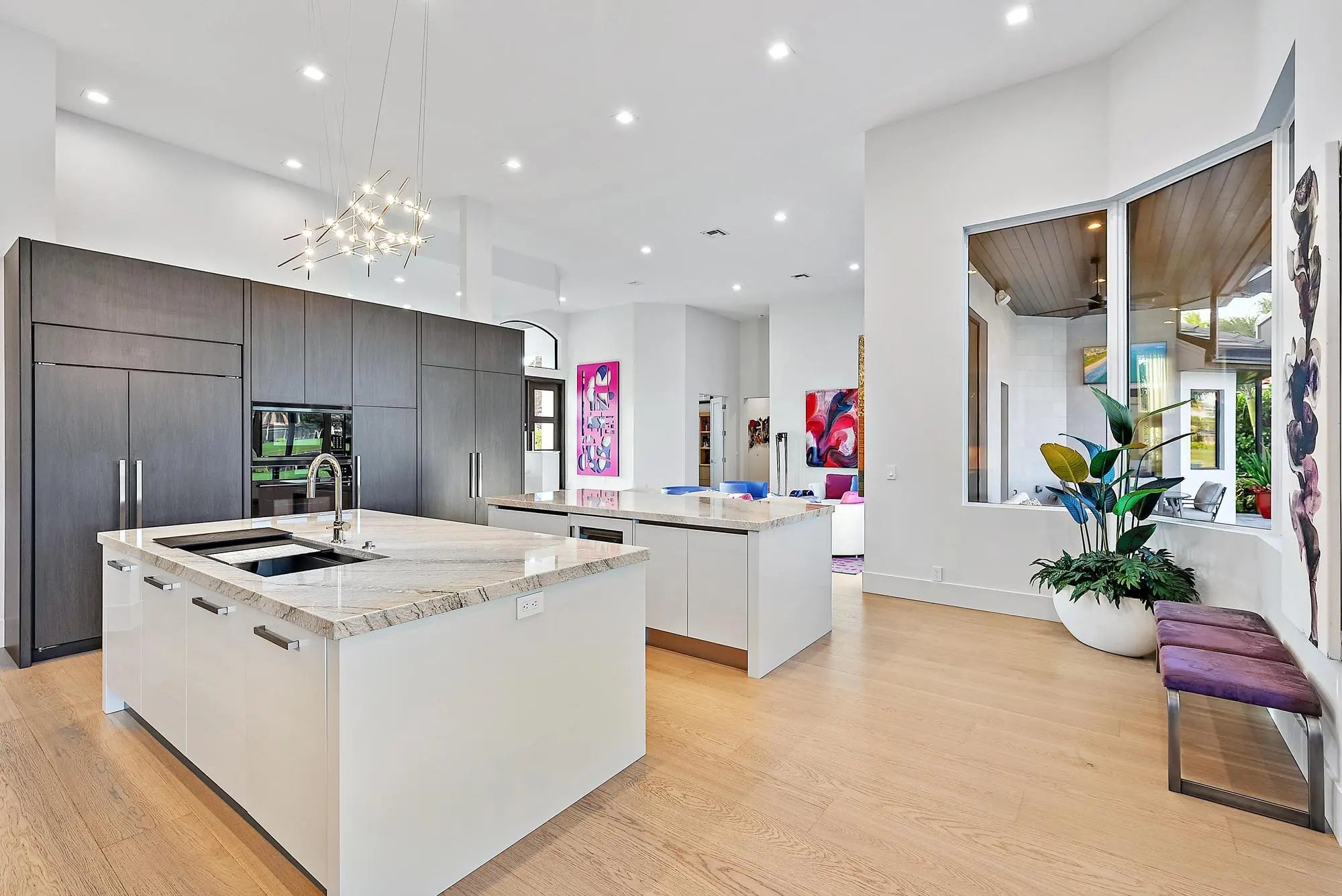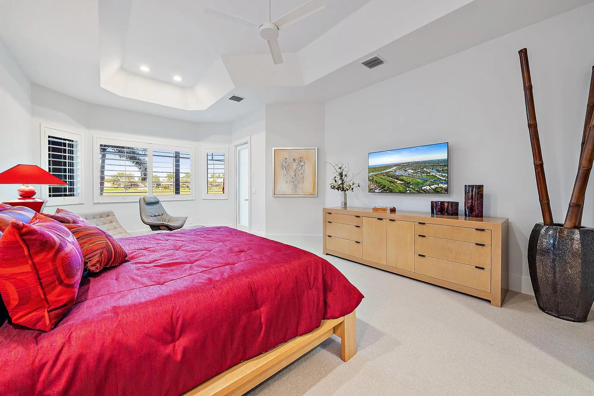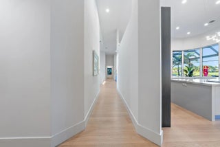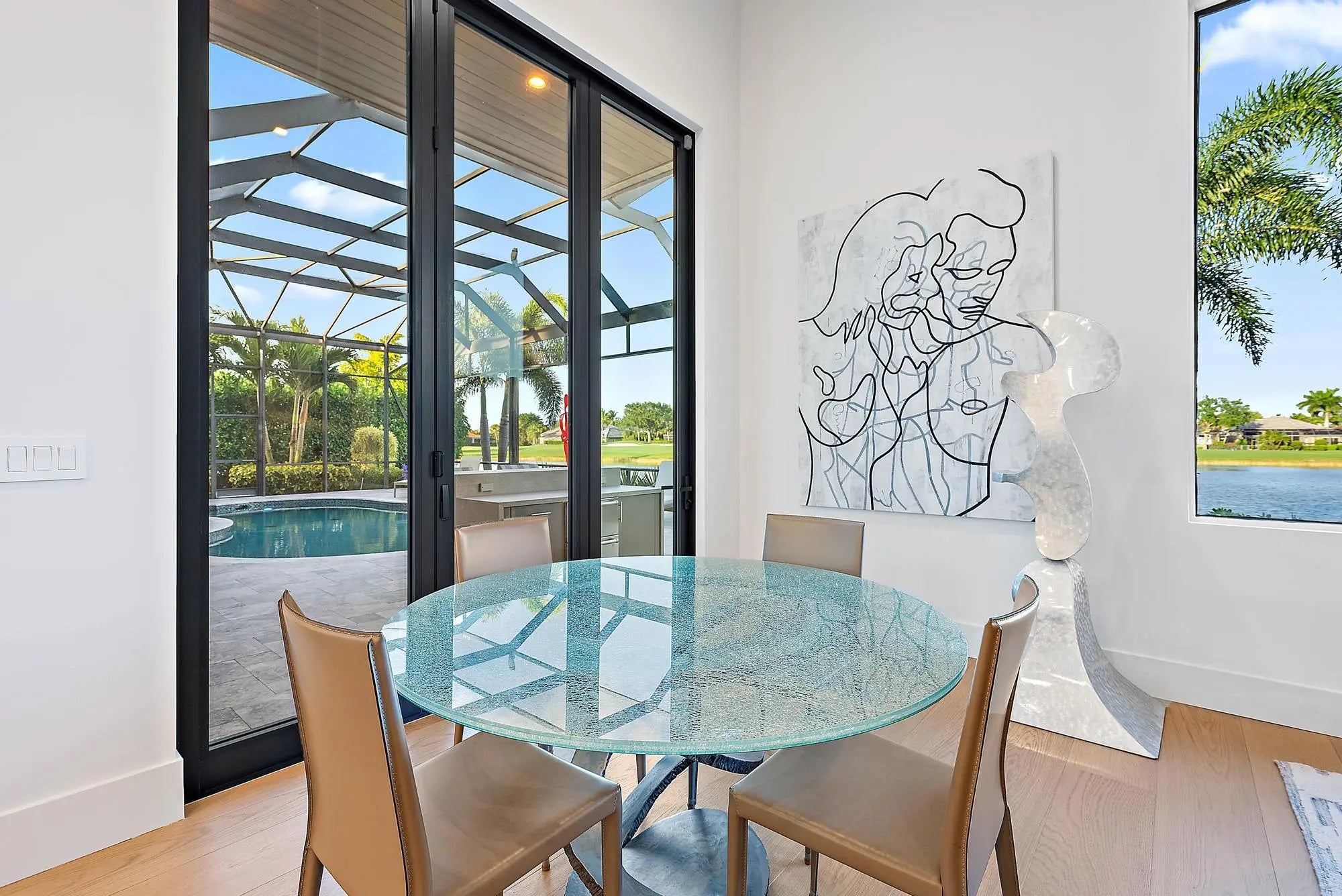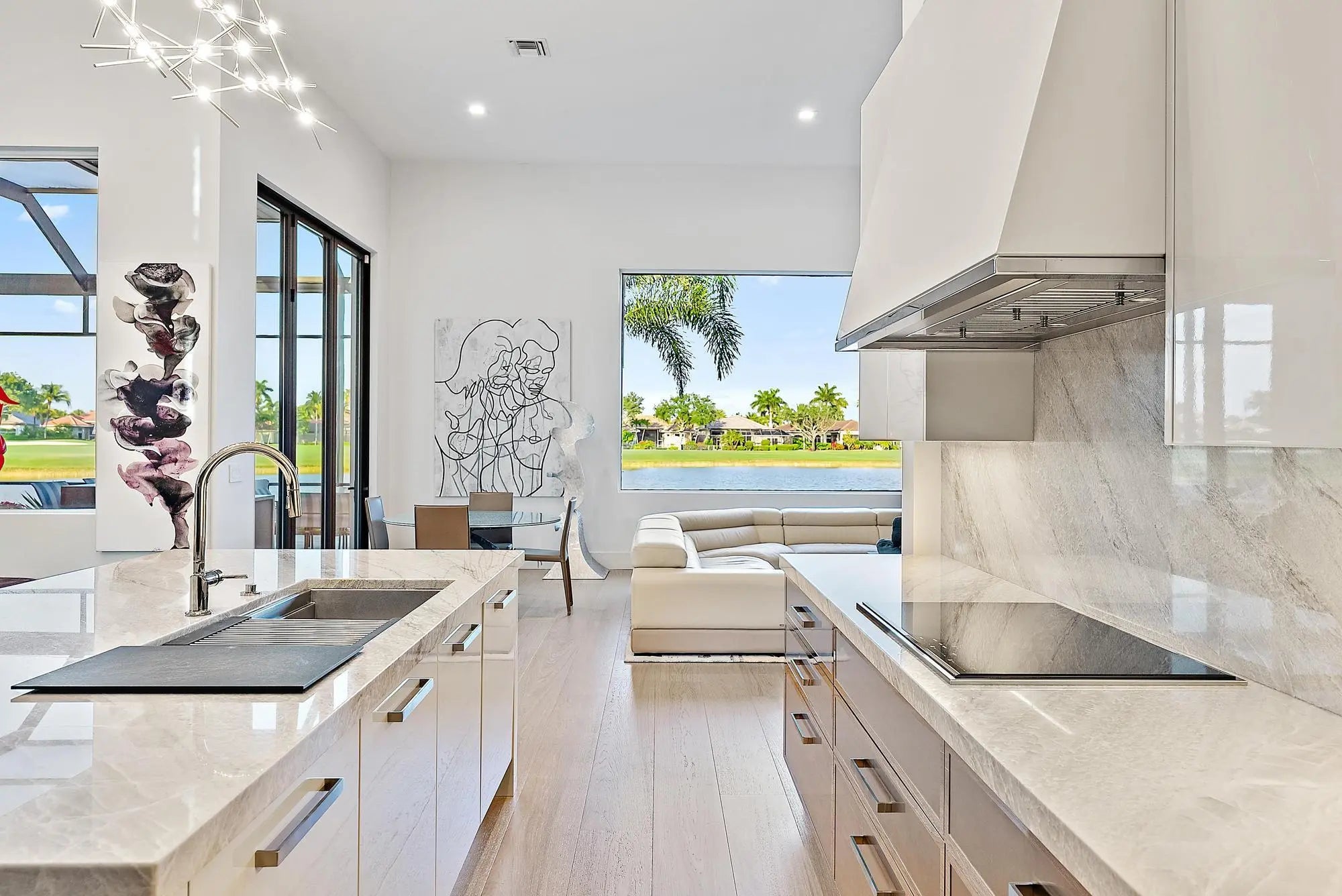 IMMEDIATE PREMIER GOLF MEMBERSHIP AVAILABLE WITH THE PURCHASE OF THIS HOME. A contemporary reinvention unlike anything Ibis has ever seen. Located in prestigious Hawk's Landing-- Ibis's ''Street of Dreams''--this fully reimagined 4BR/4BA + Den waterfront estate represents a level of transformation and design rarely achieved. Set on a prime lot with 100 feet of wide, east-facing water frontage, the architecture was thoughtfully redesigned to reflect a contemporary aesthetic and maximize panoramic views and natural light. The home underwent a comprehensive exterior transformation including impact glass throughout, a smooth-finish stucco façade, new roof (2018), redesigned driveway, and new garage doors, creating striking curb appeal and long-term peace of mind. The outdoor living experience was elevated to resort caliber with a complete redesign of the pool environment. Enhancements include new pool equipment with a saltwater system, refreshed tile work, a redesigned pool deck, and a custom outdoor kitchen featuring Sub-Zero refrigerator drawers and a premium Hestan grill. A porcelain-tiled accent wall, teak ceiling detail, accordion sliding door system, and professionally redesigned landscaping by Gary Mothersille, complemented by new outdoor lighting, complete the serene waterfront setting. Inside, the scale of renovation continues. In 2023, the main living areas were dramatically redesigned with new architectural walls, ceiling treatments, custom lighting, and engineered hardwood flooring, culminating in the installation of a stunning twin-island Downsview kitchen featuring a Wolf induction cooktop and Galley sink--a chef's showpiece blending innovation and refinement. The following year, the two guest baths were fully updated, and the primary suite was transformed into a spa-level retreat with all-new plumbing, custom fixtures, glass enclosures, and hand-painted wall coverings. An exterior pump was added to ensure superior and consistent water pressure--an often-overlooked but meaningful upgrade. The garage is equipped with a dedicated electric vehicle charging station. This residence is being offered fully furnished (artwork excluded) with an extraordinary collection of designer pieces primarily sourced from Roche Bobois, along with premium outdoor furnishings by Brown Jordan. The primary suite includes a king-size bed with a Sleep Number premium mattress, and two golf carts--EZ-GO and Club Car--are included for effortless community living. Additional enhancements include Premier Garage custom cabinetry, a refinished garage floor, integrated generator system, and extensive storage and workshop space. Located within walking distance--or a quick golf cart ride--to Ibis's world-class amenities, this home offers immediate access to a 90,000-square-foot clubhouse, three Nicklaus-family championship golf courses, five dining venues, a world-class fitness complex and spa, and premier tennis and pickleball facilities. This is not merely a renovation. It is a complete contemporary reinvention--executed with intention, precision, and uncompromising quality--offered turnkey for the most discerning buyer.