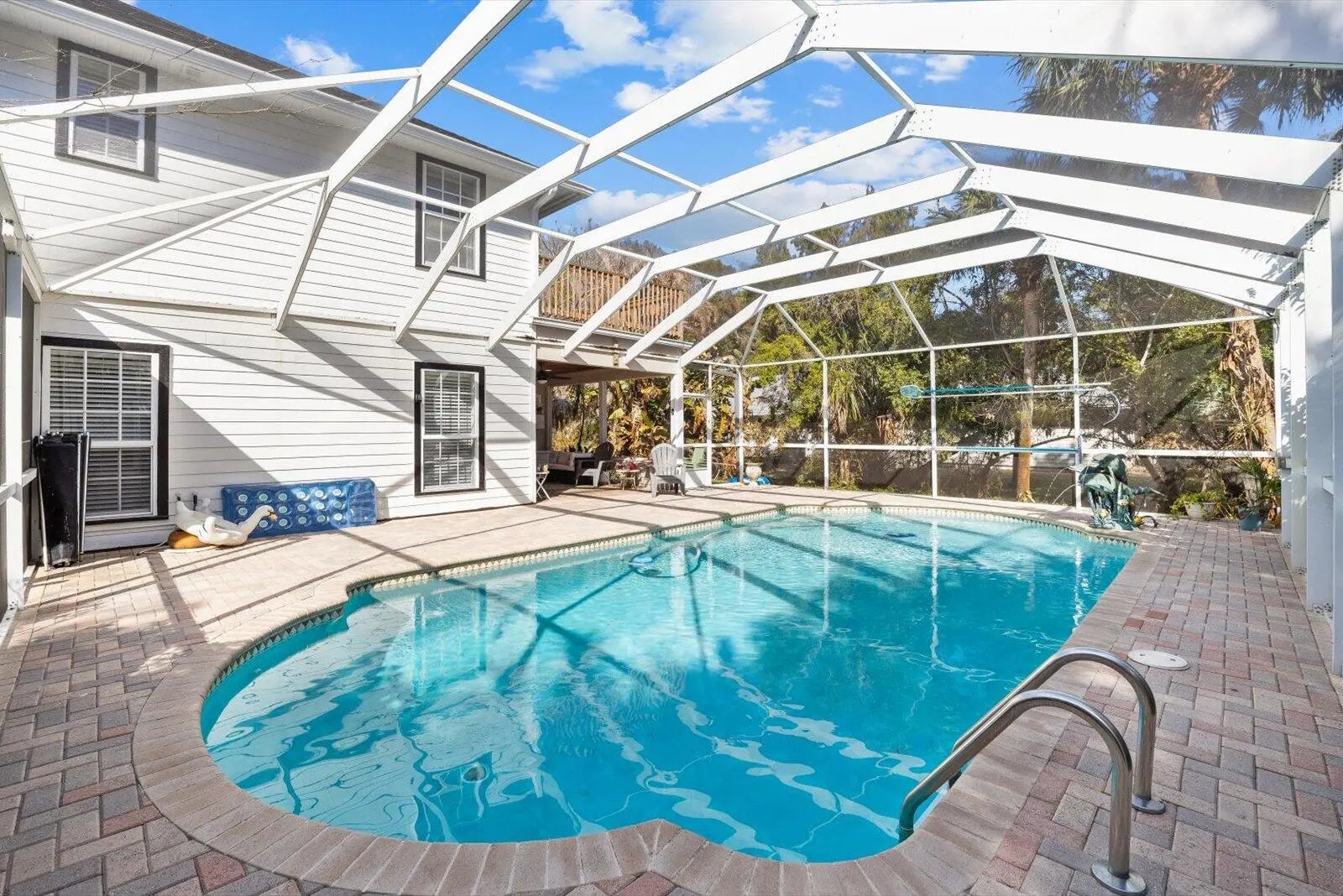 Located in the desirable Westwind community of Vero Beach, this spacious 4-bedroom, 2.5-bath two-story pool home sits on a private .49-acre corner lot. Offering over 3,000 square feet of living space (4,429 total sq ft), this residence features a newer roof, impact windows throughout, and including new flooring upstairs. The open floor plan provides generous living and entertaining space with abundant natural light, along with a formal dining room. The kitchen and main living areas flow seamlessly, creating an ideal layout for everyday living and entertaining. Upstairs bedrooms are well-sized, and the primary suite offers comfort and privacy with a balcony. Conveniently located near shopping, dining, schools, and beaches.