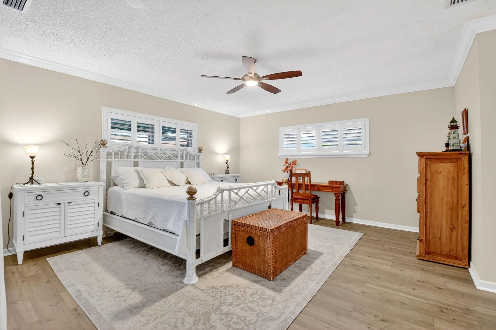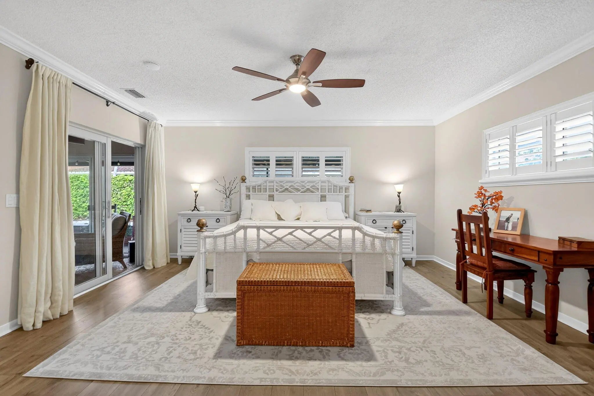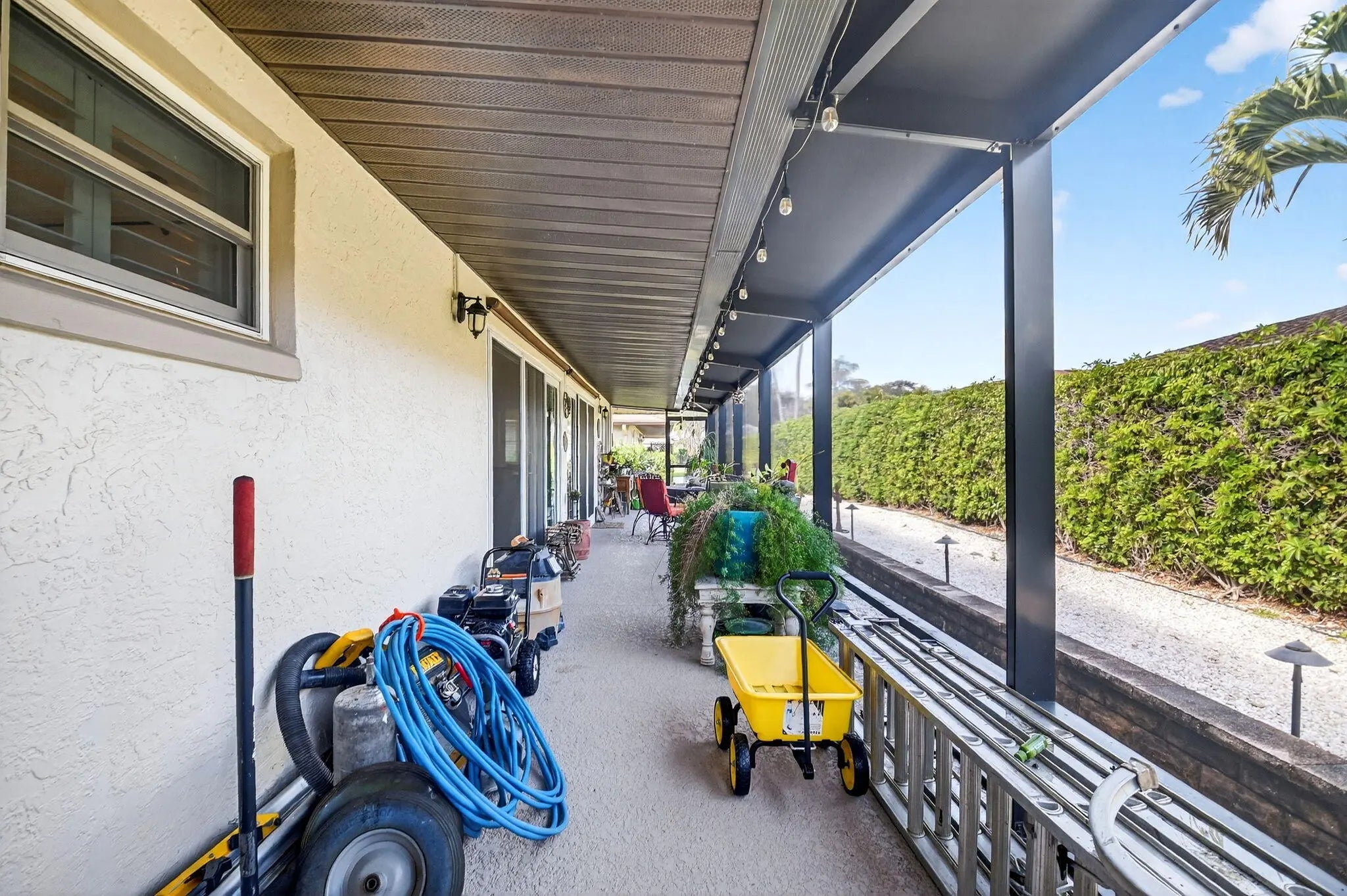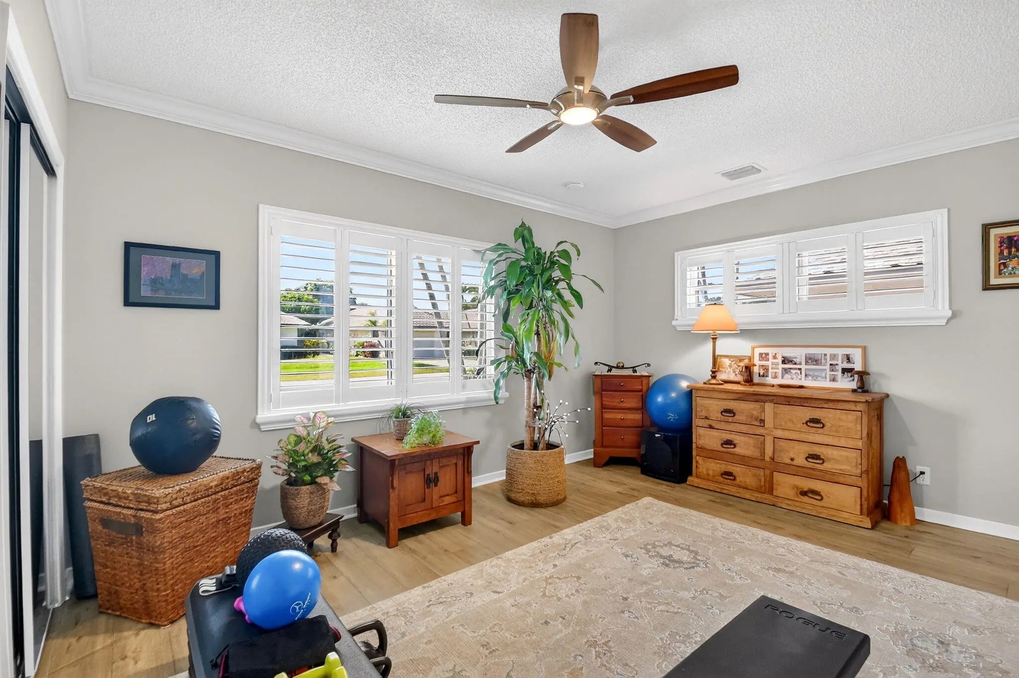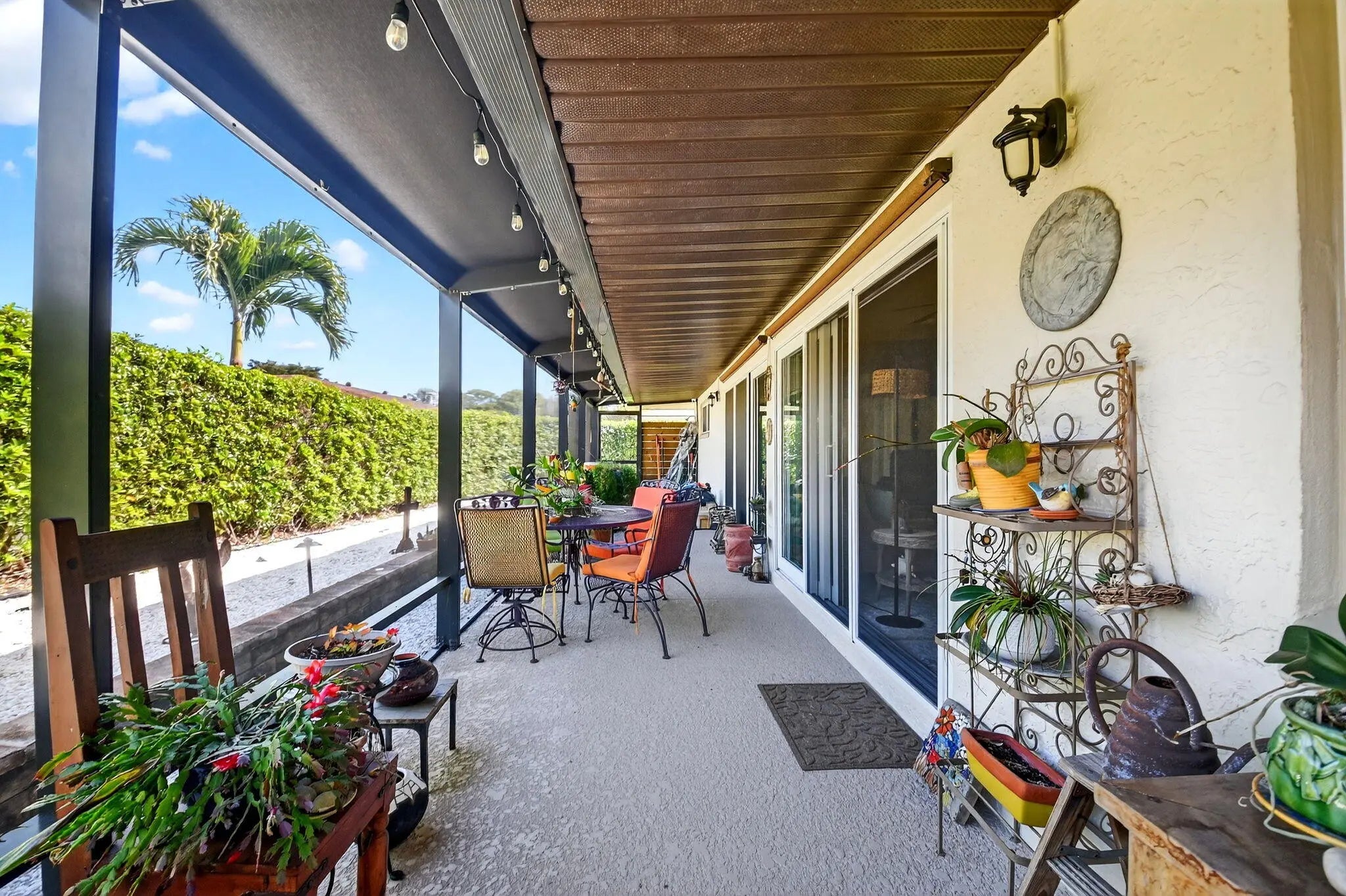 Welcome to 10265 Greentrail Drive N, a meticulously updated residence nestled in the serene 55+ community of Pine Tree Village in Boynton Beach, Florida. This stunning property offers 2,304 square feet of thoughtfully designed living space, featuring three spacious bedrooms and two modern bathrooms. Upon entering, you are greeted by an open-concept layout that seamlessly integrates the living, dining, and kitchen areas, creating an inviting atmosphere for both relaxation and entertainment. The kitchen is a chef's dream, boasting an island with stone countertops, dual convection ovens, and Kohler porcelain cast iron farmhouse sink with a garbage disposal. White kitchen cabinets with a pantry provide ample storage, while recessed lighting enhances the space's elegance. The great room is a highlight, featuring vaulted ceilings and improved lighting, complemented by Norman plantation shutters throughout the home. The interior and exterior have been freshly painted, offering a crisp, clean aesthetic. The Florida room, with its new 10-foot hurricane impact sliding doors, opens to a covered, screened patio that spans the length of the home, perfect for enjoying the tranquil surroundings. Additional features complete impact windows, sliders and doors, a newly insulated impact garage door with a security opener, overhead storage shelves, and an outdoor shower stall. The home is equipped with a 2026 AC unit, new hot water heater and new ductwork, ensuring comfort and efficiency. The garage is enhanced with a new chemical-resistant flooring, providing durability and style. The flooring throughout the home, including the bathrooms, is a beautiful wood laminate, adding warmth and continuity to the space. The property also includes a newly landscaped patio with plenty of room for outdoor seating and entertaining. Located in the desirable Pine Tree Village community, this home offers convenient access to local amenities, shopping, and dining. It is a perfect blend of modern upgrades and classic charm, ready to welcome its new owners. This property is currently for sale and represents a unique opportunity to own a piece of paradise in Boynton Beach. Schedule a private viewing and experience the exceptional lifestyle this home has to offer.