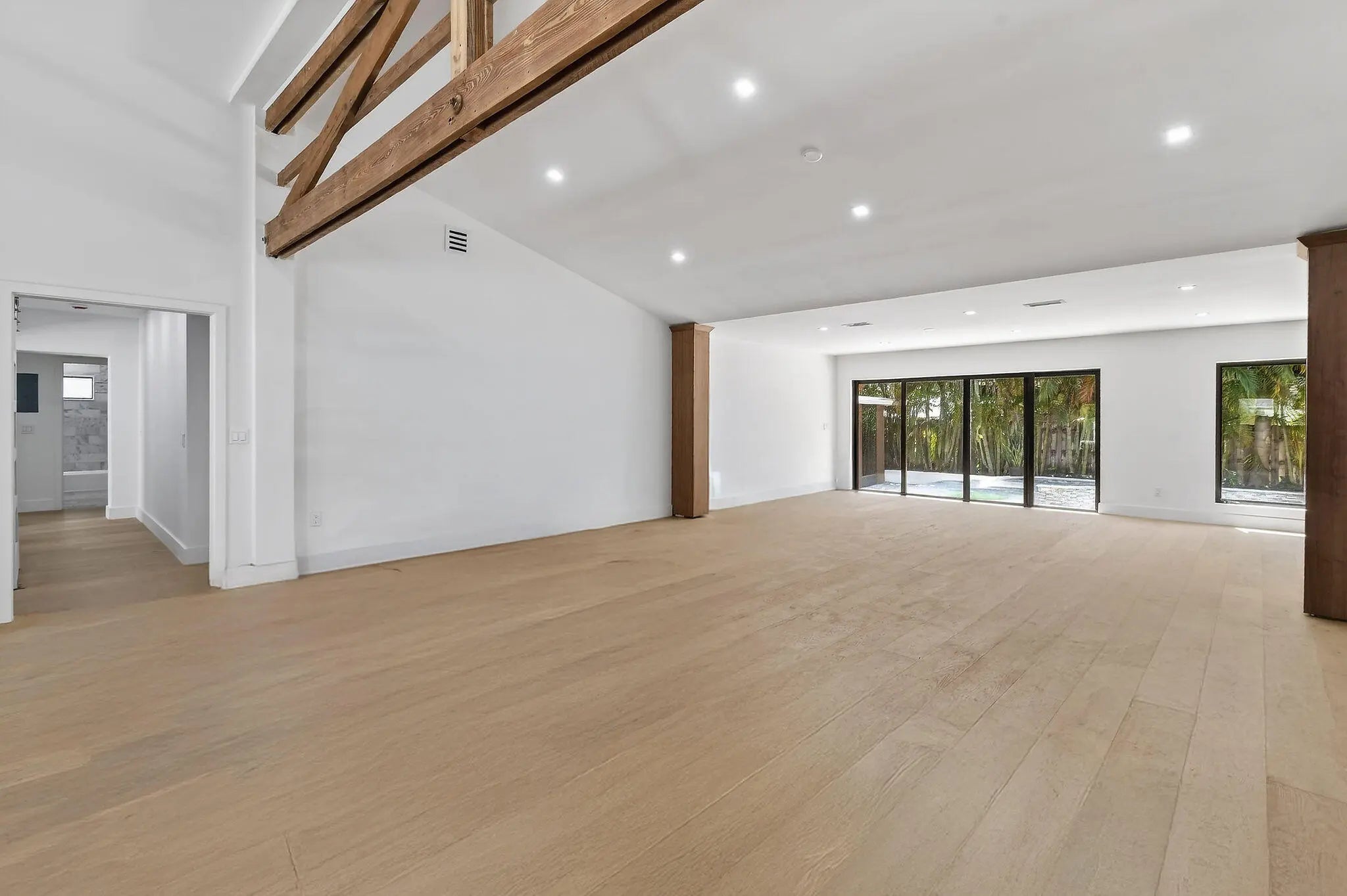 Perfectly positioned a few blocks from the Intracoastal in the coveted SoSo enclave, this extensively renovated home delivers turnkey luxury with exceptional indoor-outdoor living. Major improvements include a new roof, updated electrical and plumbing systems, brand-new A/C, and full impact glass for comfort and security. With 5 bedrooms, 4.5 baths, soaring ceilings, and rich wood floors throughout, the residence offers a bright, airy feel ideal for modern living. The spacious floor plan transitions seamlessly to an inviting pool area surrounded by mature landscaping -- a true setting for entertaining and relaxed South Florida living. Set on an oversized corner lot, this property combines privacy, scale, and an unbeatable location near the Intracoastal, beaches, and downtown West Palm.