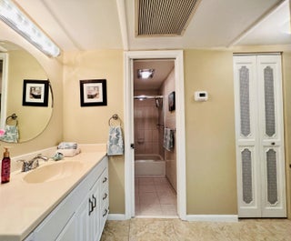 ELEGANT IN 55+ CENTURY VILLAGE! Over Sized 1/1.5 With In Unit Washer & Dryer and a PET FRIENDLY Building!!!! Beautifully Maintained With a Floor Plan Designed for Gracious Living! Large Kitchen With Window for Natural Light and Crisp White Appliances (including a dishwasher). Spacious Bedroom Suite With Full Ensuite Bath Featuring Updates & a Tub/Shower Combination. Long Lanai Accessed by Sliders Off the Living Area. Neutral Tile Flooring Flows Throughout. Sold Furnished As Shown W/ Tasteful Seasonally Used Furnishings. Well Maintained Pet Friendly Building (1 Cat or Dog - Max Weight 30lbs) and New Roof (2023). Century Village Is A Vibrant 55+ Community Centrally Located in Highly Desirable Palm Beach County, Florida. Enjoy An Active Lifestyle With Resort Style Amenities... Century Village is a 55+ Resort Style community with so much to offer - Much To Offer - shows, movies, clubs, pools, security, and transportation service. The Clubhouse features a theater, indoor pool, card room, community/party room, billiard room, shuffleboard, tennis, pickleball, bocce, and two outdoor pools, Numerous heated outdoor pools throughout the community. Separate fitness center with gym and outdoor heated pool & resistance pool. Two guarded gates and 24-hour roving security patrol.