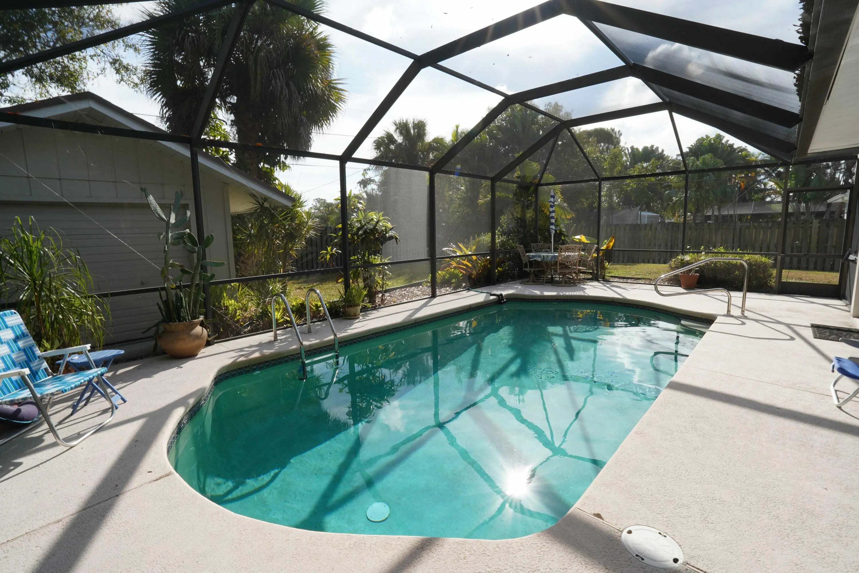 Imagine life without the ''cookie-cutter'' compromise Nestled on the Vero mainland, this isn't just a house; it's a retreat designed for those who value character and room to breathe. While much of Florida feels crowded, this property offers a rare tropical paradise where mornings begin with rustling palms and evenings are spent entertaining under the stars. A Home with Soul & Character Step through the foyer and feel the warmth. Unlike modern builds that can feel cold and repetitive, this living space is anchored by a magnificent wood-burning stone fireplace--the ultimate centerpiece for cozy Florida winters. Look up to find natural wood plank ceilings and custom finishes that lend a rustic elegance you won't find in a standard subdivision. Chef's Kitchen: A masterclass in detail featuring granite countertops, high-end stainless steel, and custom-lit cabinetry that illuminates the tumbled marble backsplash. The Entertainer's Lanai: Slide back the doors to the heartbeat of the home. An enormous covered, screened lanai featuring a shimmering Diamond Brite pool--perfect for summer BBQs and year-round relaxation. The Rarest Opportunity: A Double-Lot Estate Perhaps the most incredible feature is the additional full-size buildable lot included with the home. In a market where privacy is the ultimate luxury, this adjacent land offers endless potential: Ultimate Privacy: Maintain your sprawling, one-acre tropical estate. Future Expansion: Perfect for a detached guest house, "mother-in-law" suite, or professional studio. Savvy Investment: Build a second home to sell or hold the land for future appreciation. Functional Luxury & Storage This home is as practical as it is beautiful. The oversized master suite features three closets, while the 2.5-car garage and separate workshop provide ample space for boats, motorcycles, or a high-end hobby shop. Property Quick-Facts: Location: Mainland Vero Beach (10-15 mins to the beach--no high-rises, no rush!) The Build: 3 Bed / 2 Bath | 1,520 Sq. Ft. of pure charm. The Land: Includes a Second Buildable Lot. Garage: 2.5 Car + Separate Workshop. Key Features: Stone Fireplace, Wood Ceilings, Granite Kitchen, Screened Pool. Don't settle for ordinary. Experience the true character of Vero Beach. ---