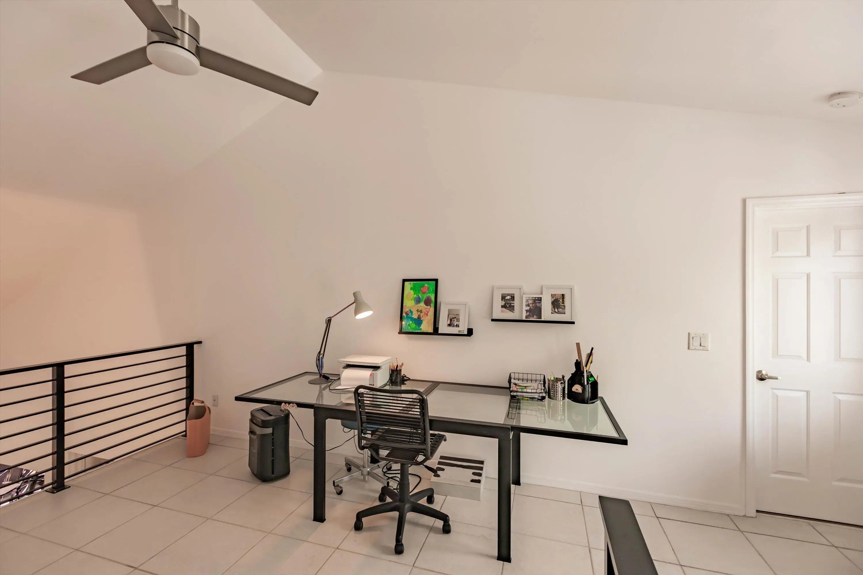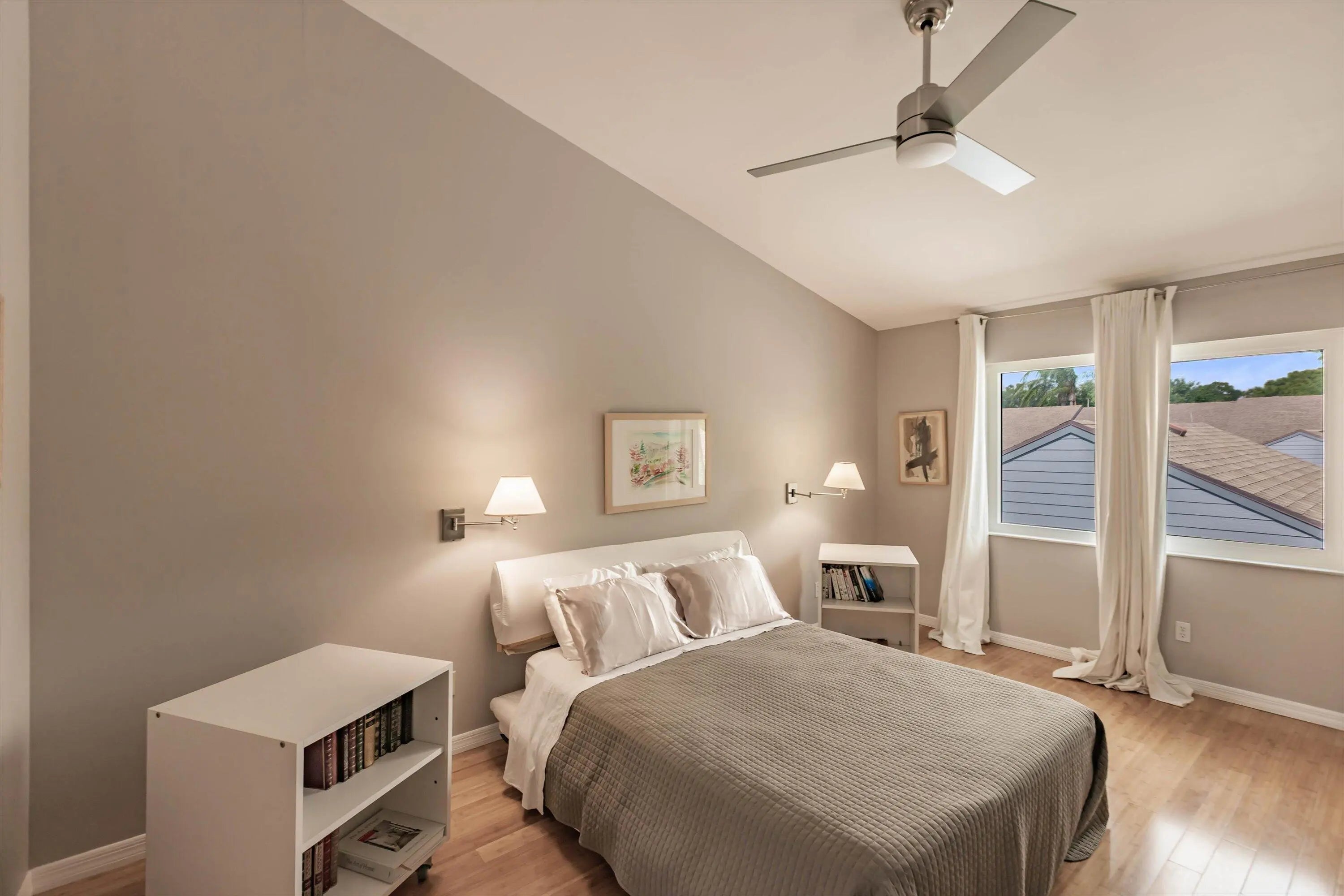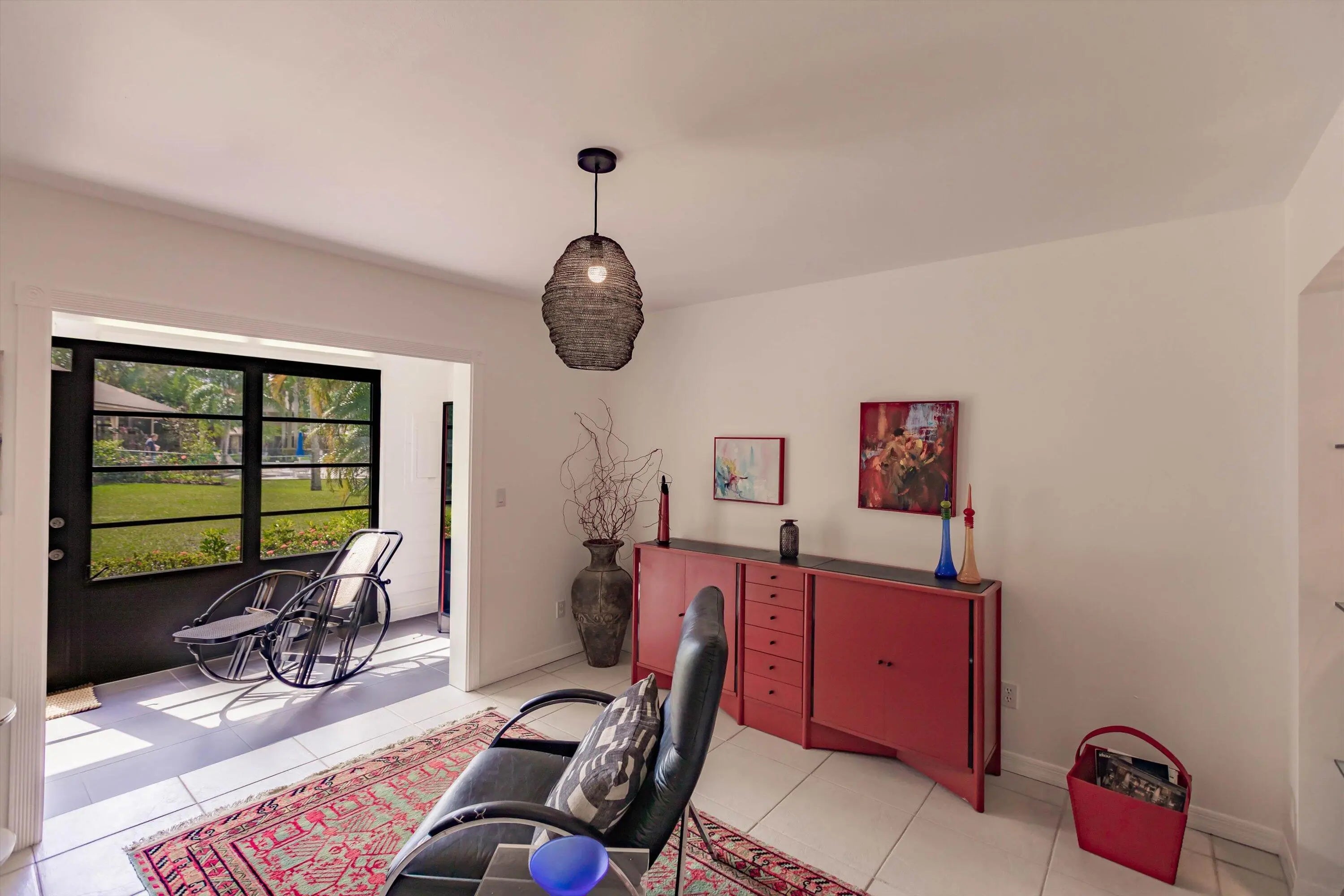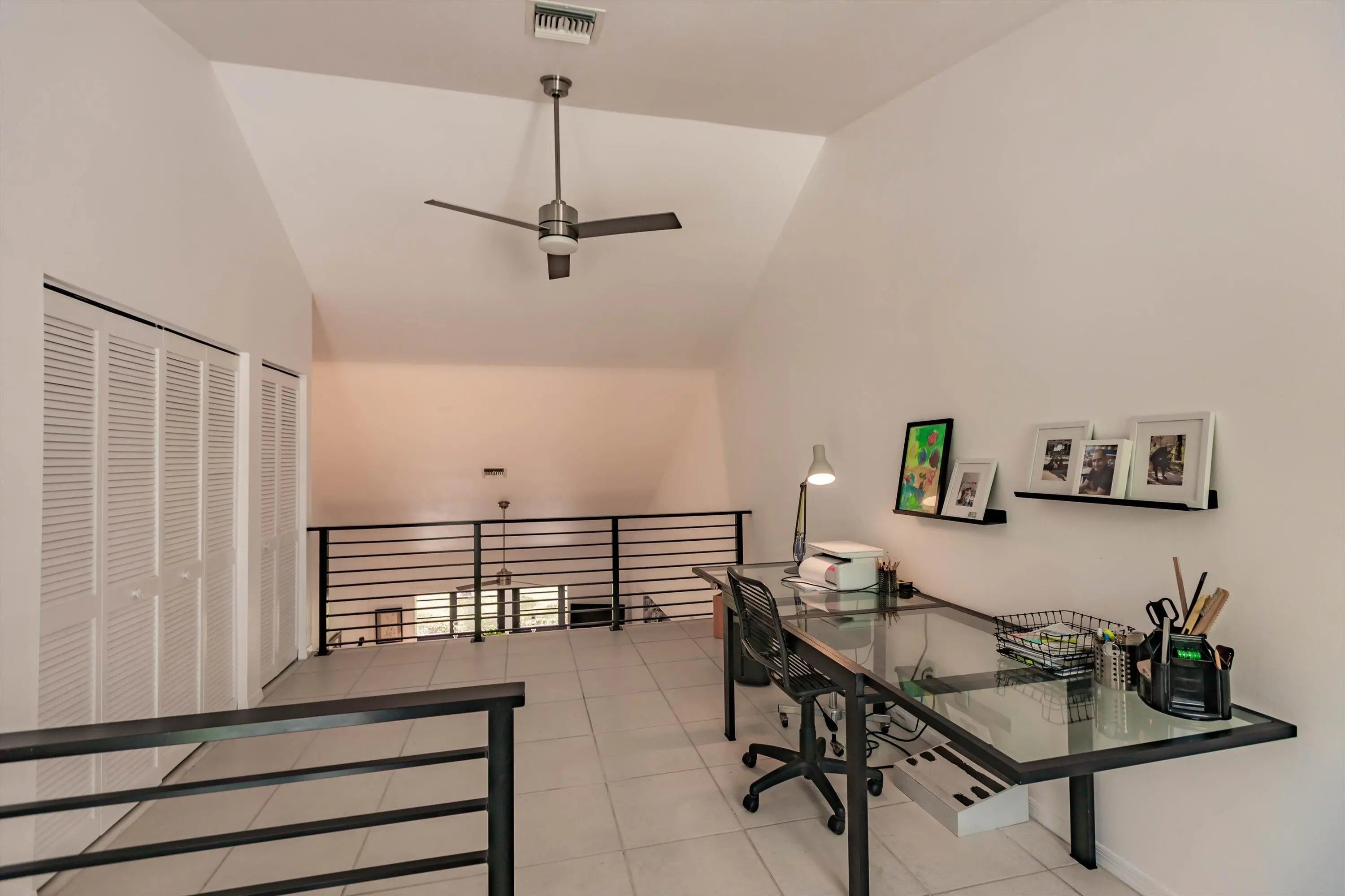 Fully renovated: modern kitchen with SS appliances and granite counters. Remodeled baths with designer tiles. New Water heater. Upgraded lighting and fans. Modern staircase and railings add to the designer look. Impact windows except the patio which is enclosed for more living space. 2Bed+Loft+Den (easily converted back to 3rd bed). Nearly turn-key with furnishings included as well as linens and kitchen items. Artwork and personal items excluded. Community pool just steps away. Also available is a clubhouse and another larger pool, tennis and pickleball. Close to Tom Fazio designed golf course and beaches. Come and see this exceptional design with open spaces and high ceilings that make this feel like a single family home with less maintenance.