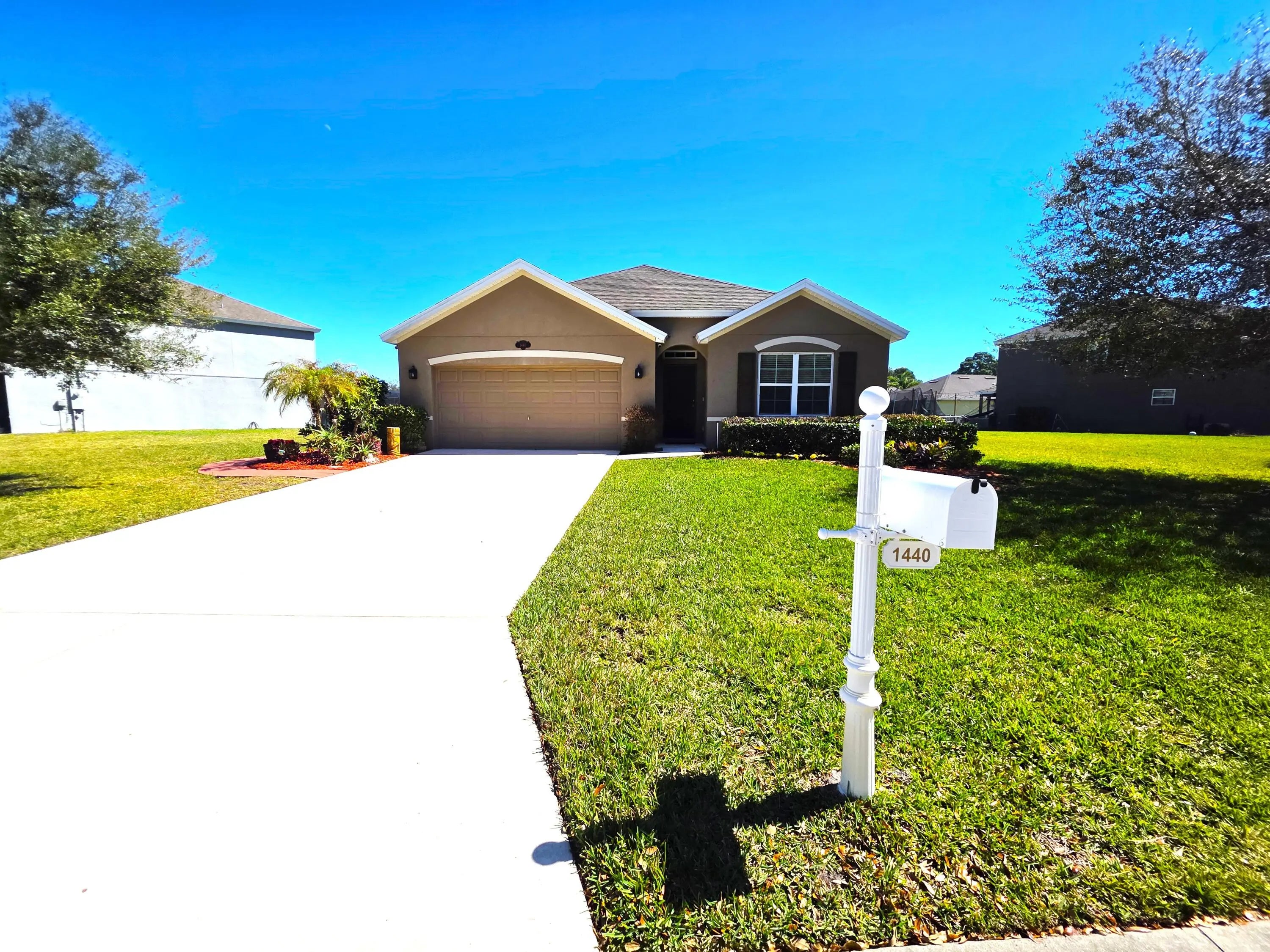 Unfurnished annual rental Available now. Lake front!!! Single- family stunning home in Lexington Place gated community. This 4-bedroom, 2-bathroom, 2 car garage home. Open concept floor plan, kitchen with island, pantry and beautiful backsplash. Kitchen charms with stainless-steel appliances, 42' wood cabinets, soft close drawers, granite countertops, breakfast area, island- bar with adjoining great room with dining/living space and is perfect for entertaining. Master bedroom with huge walk-in closet. Master bath with double vanities, separate toilet room and shower cabin. tile flooring throughout main living areas. Step out back to a beautifully maintained large backyard with covered Patio backed to a community lake. Flourishing, beautifully landscaped and well-maintained, gated Lexington Place community. This community is conveniently located near the shopping center, close to beaches, dining, and entertainment, popular golf course, restaurants, medical center and the hospital. This is the perfect blend of comfort, style, and convenience. Maintenance Included: Landscaping, Exterior Pest Control, Sprinkler system, monthly AC filter replacement.