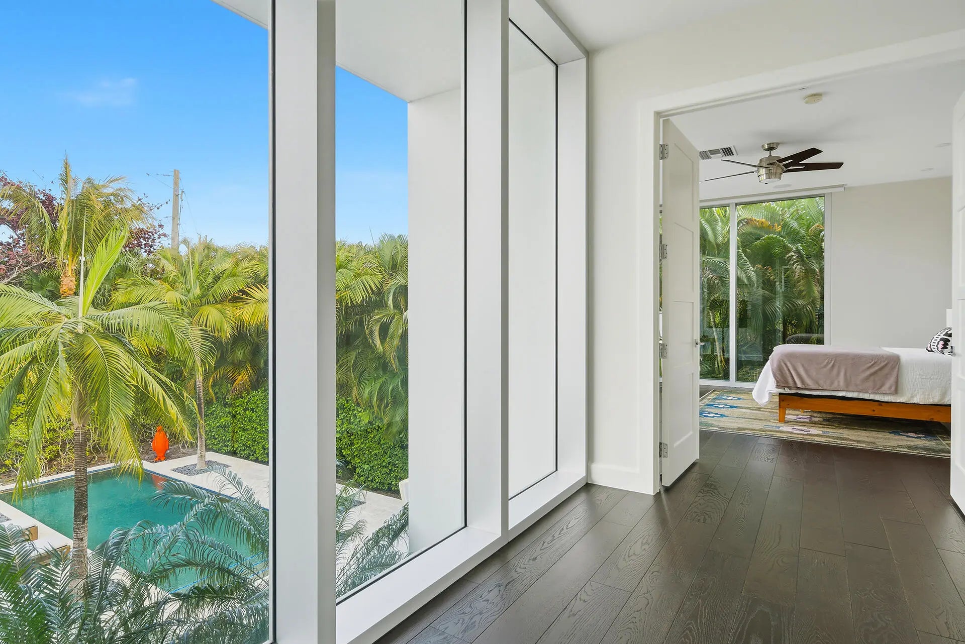 Striking Contemporary in ultra-trendy SoSo, Just one home off Flagler Drive. Built in 2016, this light-soaked 3BR/3BA stunner delivers soaring ceiling, a dramatic floating stairway, open-concept kitchen and living area with floor to ceiling windows and sliders, sleek modern lines, indoor/outdoor dining/entertaining and a resort-style pool with fountain framed by lush tropical landscaping. Recently elevated with New HVAC. hot water heater, security system, flooring, pool pump, blackout shades and automated patio screens. A polished, high-style retreat steps from the intracoastal.