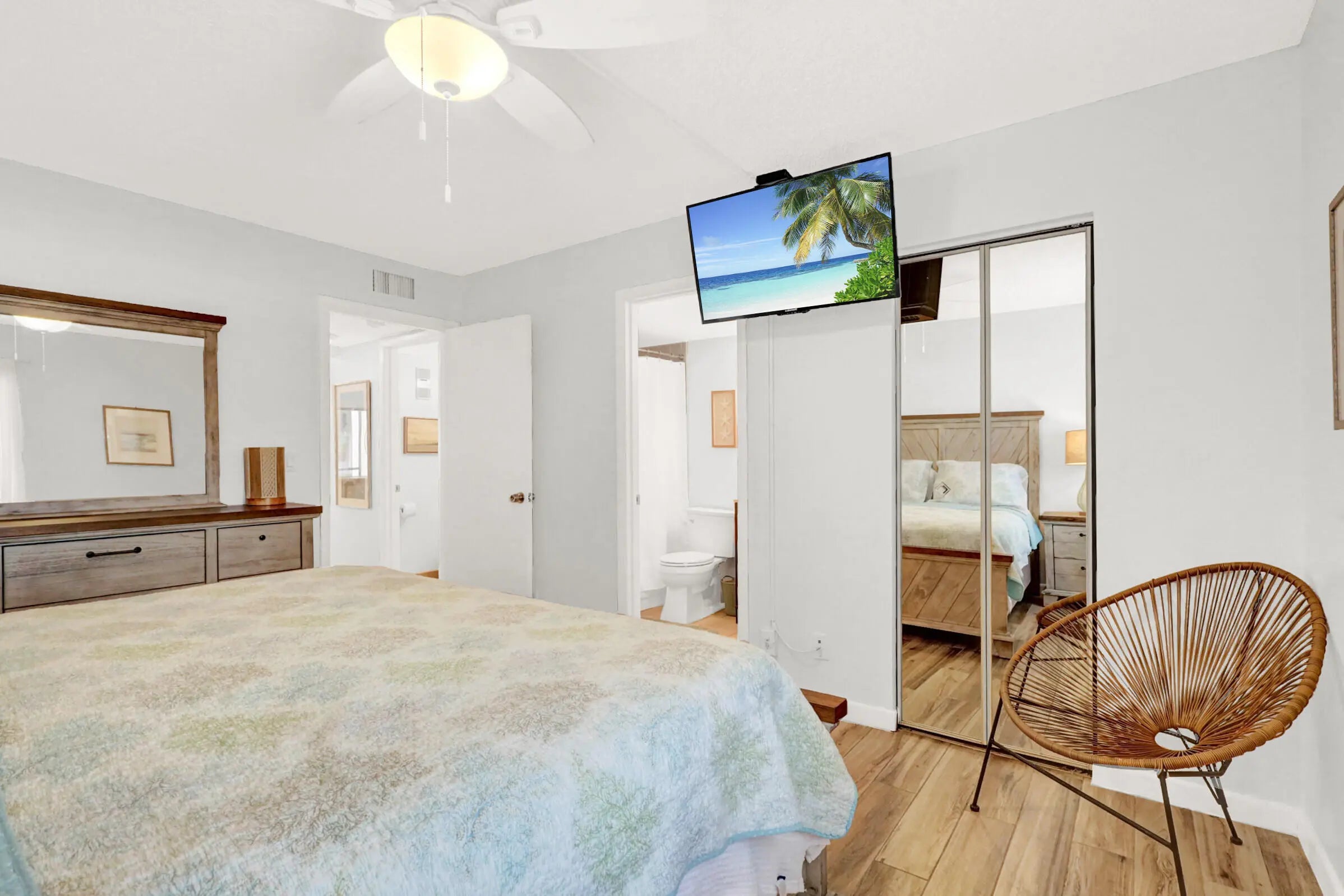 Experience the quintessential beach lifestyle with this fully furnished 1 bed/1.5 bath condo, available for offseason starting in April for $2200. This light and bright home is located on the ground floor in the highly sought-after Jupiter Ocean and Racquet Club community. This relaxing retreat boasts an open and airy ambiance, perfect for embracing the beach vibe. Indulge in the comfort of a king-size bed, newly renovated walk in shower and half bath, the convenience of a new appliances, and in-unit washer/dryer. Step out onto your renovated screened-in patio and savor picturesque western sunsets while overlooking the tranquil lake. Take advantage of the condo's private pool as well as the close proximity to the beach, just a leisurely two-minute walk away (beach equipment is provided) All this while being a stones throw to Carlin Park, Maltz Theater, U Tikki Bar and Jetty's. Book today!