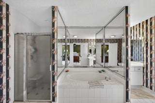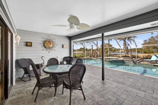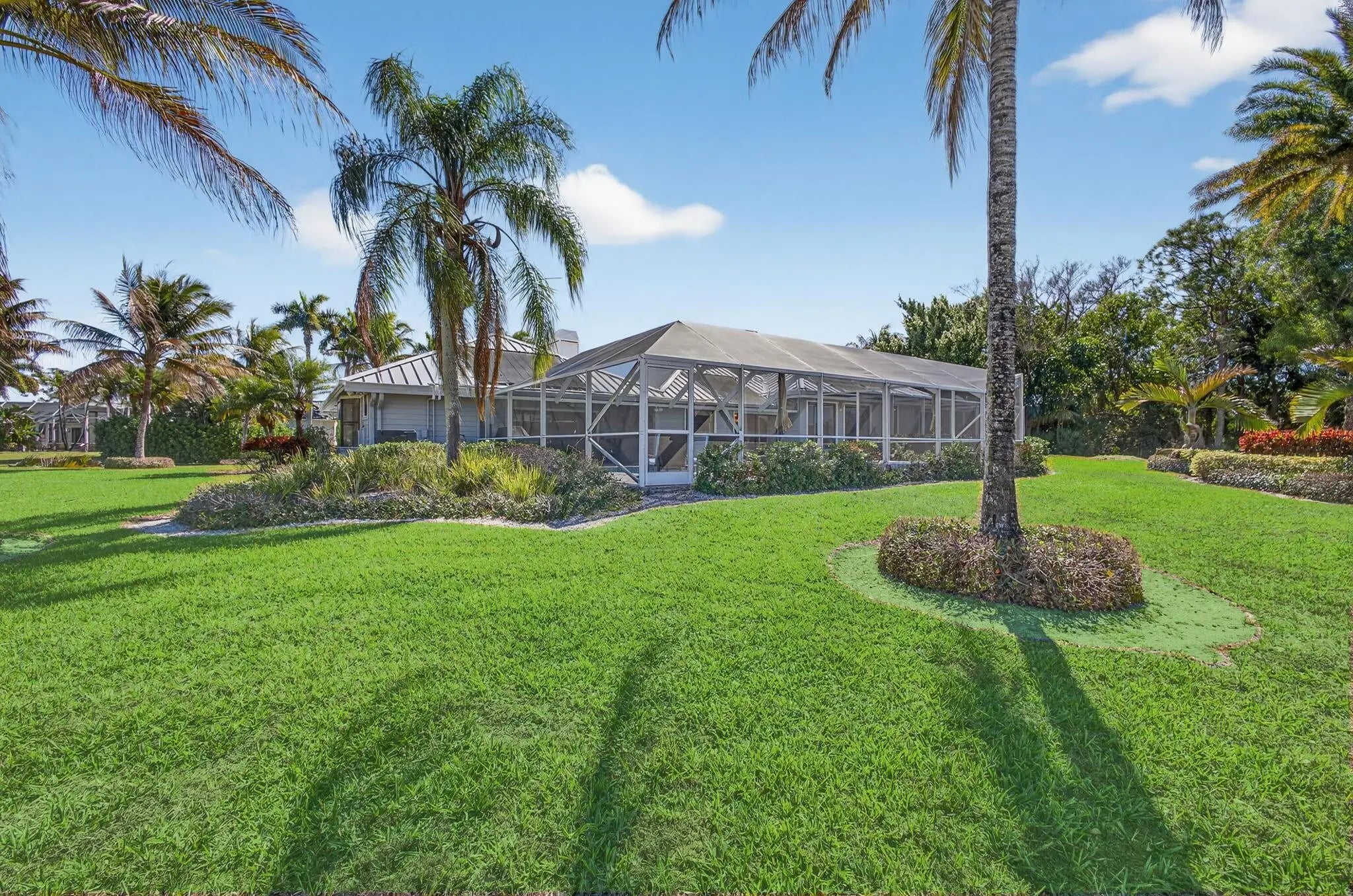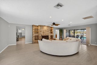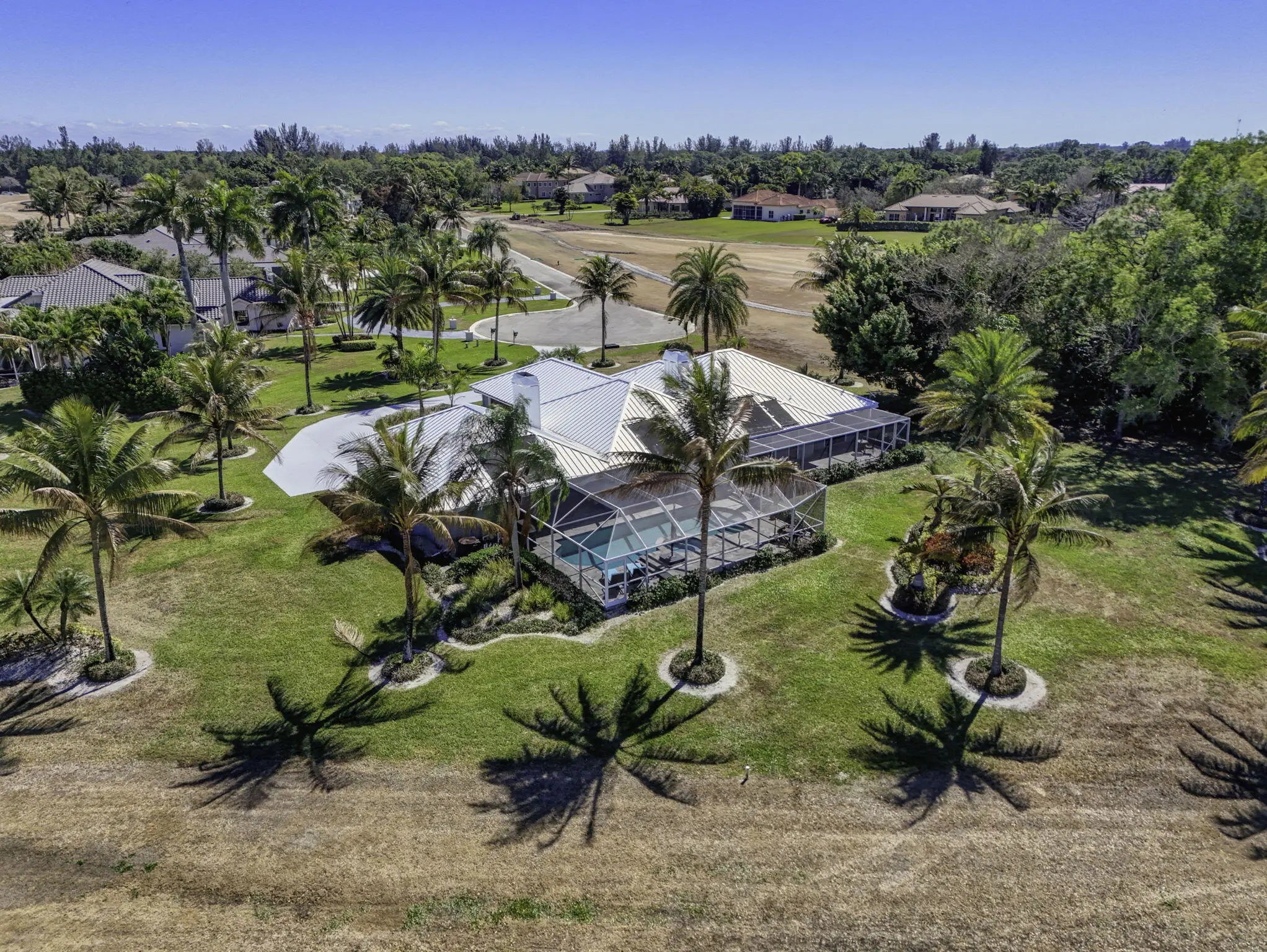 The premier lot in Bay Hill estates located at the end of a cul-de-sac this 1.19 acre lot boasts panoramic views of PGA's estate course as well as a glimmering lake. This key west style home features a metal roof, solar, 500 gallon propane tank that fuels the whole house generator and a garage big enough for 2 cars and a golf cart. Long winding drive way framed by majestic palms. Oversized patio areas around the pool include a covered and screened porch. 3 fireplaces accent the large spacious bedrooms and living areas. Garage features a whole wall of built in storage cabinets and a solar hot water heater. Huge 21'x16' primary bedroom has 2 large walk in closets. Newer porcelain tile, wood look, tile floors in the living areas. Photovoltaic Electric System converts sunlight into electric