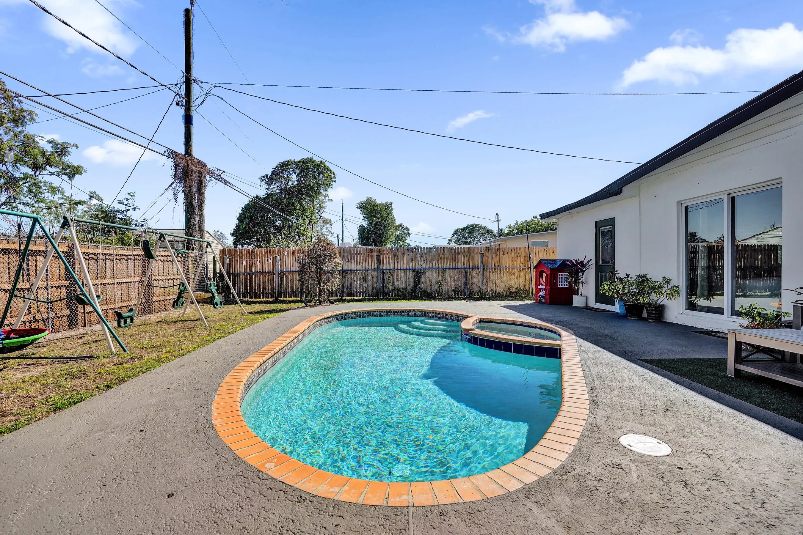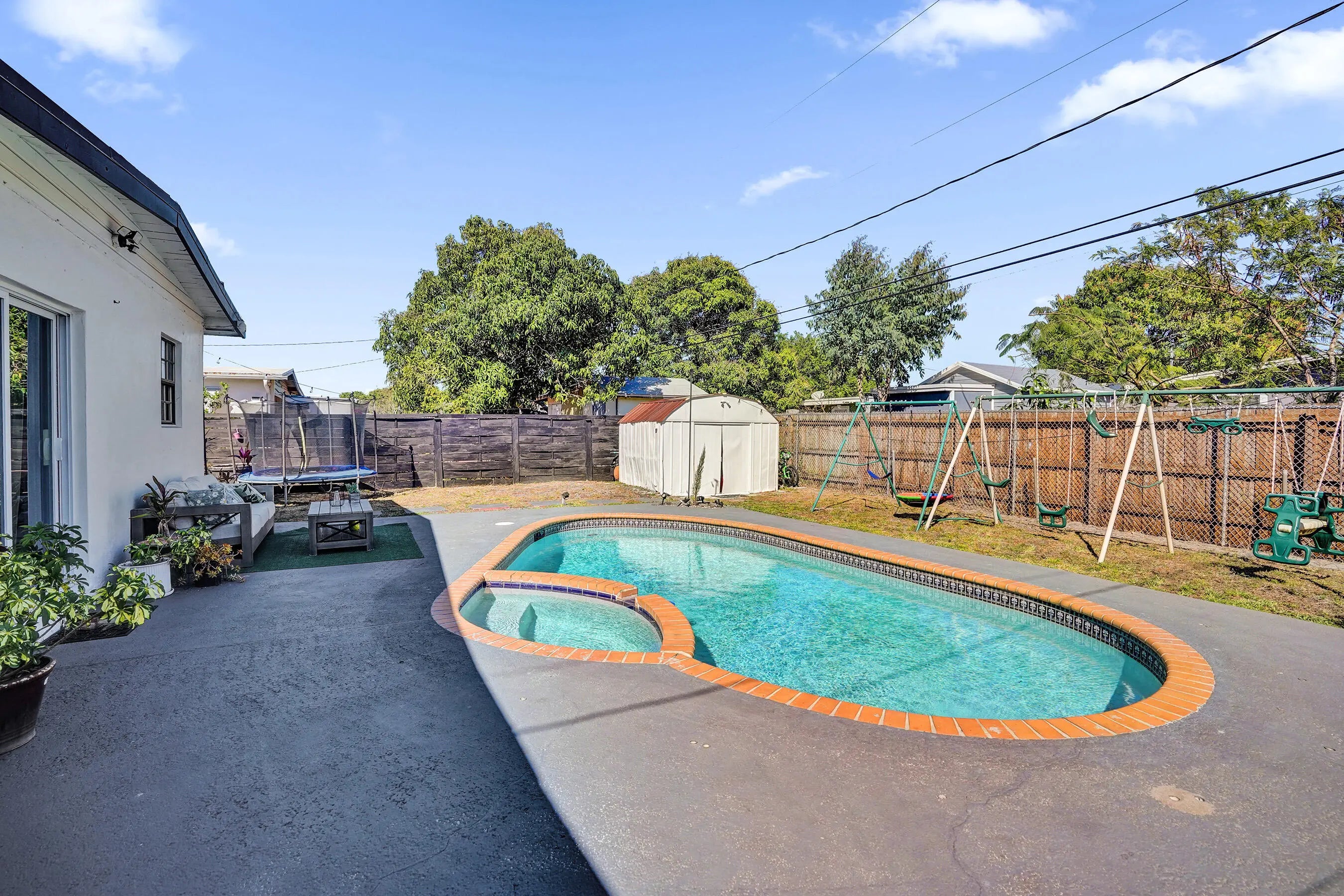Stop searching and start living! Beautiful 3 bed 2 bath POOL home in a NO HOA community with ADU potential/ multi-generational living. Tons of upgrades: newly remodeled bathrooms, a smart lock on the front door, recess lighting throughout the home, porcelain tile, a beautiful accent wall, cozy electric fireplace, granite kitchen countertops, revamped kitchen cabinets, 2024 new refrigerator, 2025 farm sink, all stainless steel kitchen appliances, and a new electrical panel. The split floor plan gives the enhanced privacy you need from children/ guests. The master bedroom is super spacious and boasts 2 CLOSETS (including a massive walk-in). The FULLY GATED backyard is a spacious oasis with ample space, a storage unit, an in-ground freshwater pool and a Jacuzzi with jets! Bring your RV/boat and park it in your backyard. With no HOA restrictions, you can even build an in-law suite/efficiency if you'd like?! Great location close to local schools. Experience the dining and entertainment of Palm Springs and Lake Worth from one central location. Only 7 miles from the beaches of the beautiful Atlantic Coastline. Easy commute from I-95. Make this home yours today.