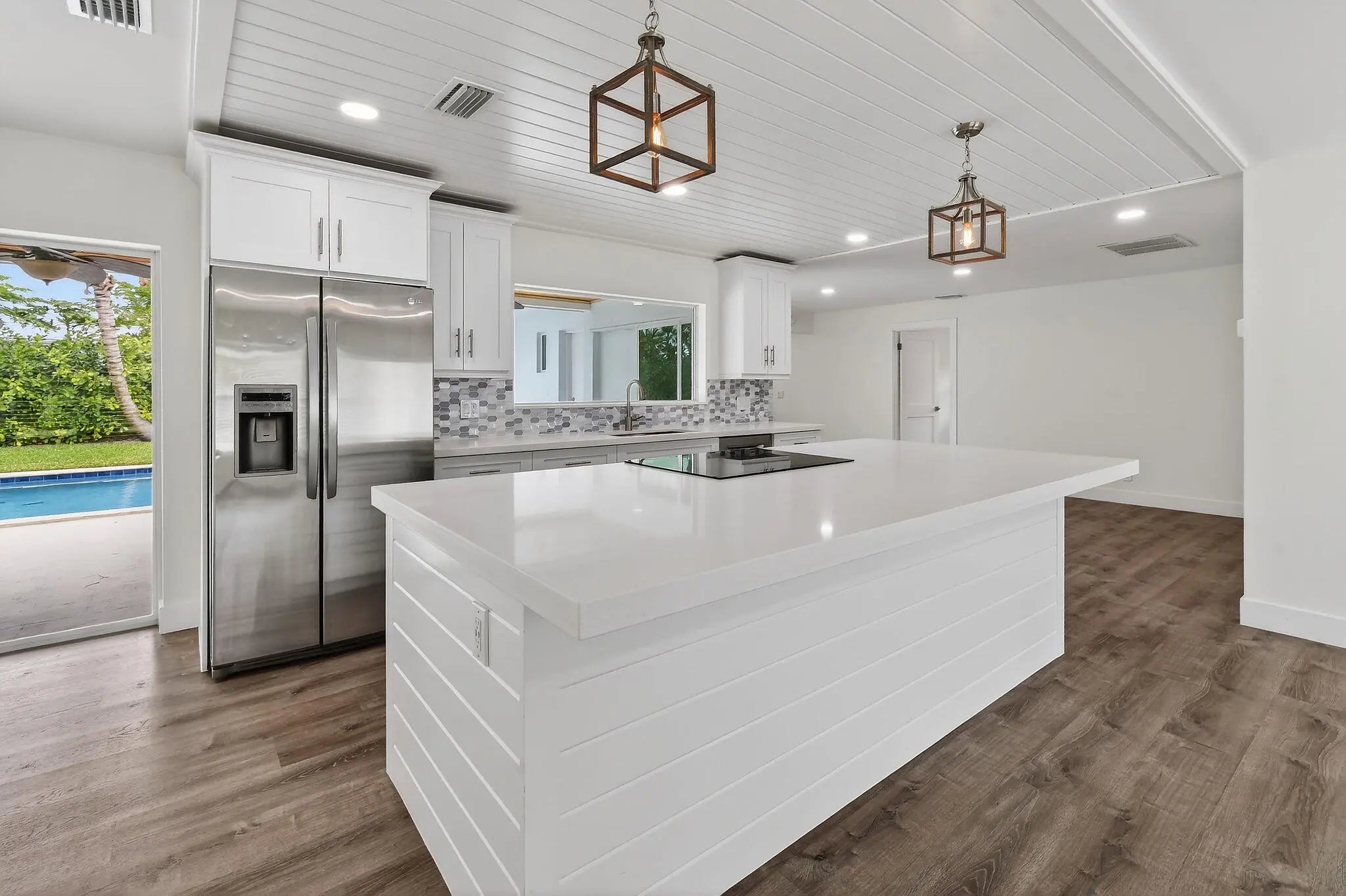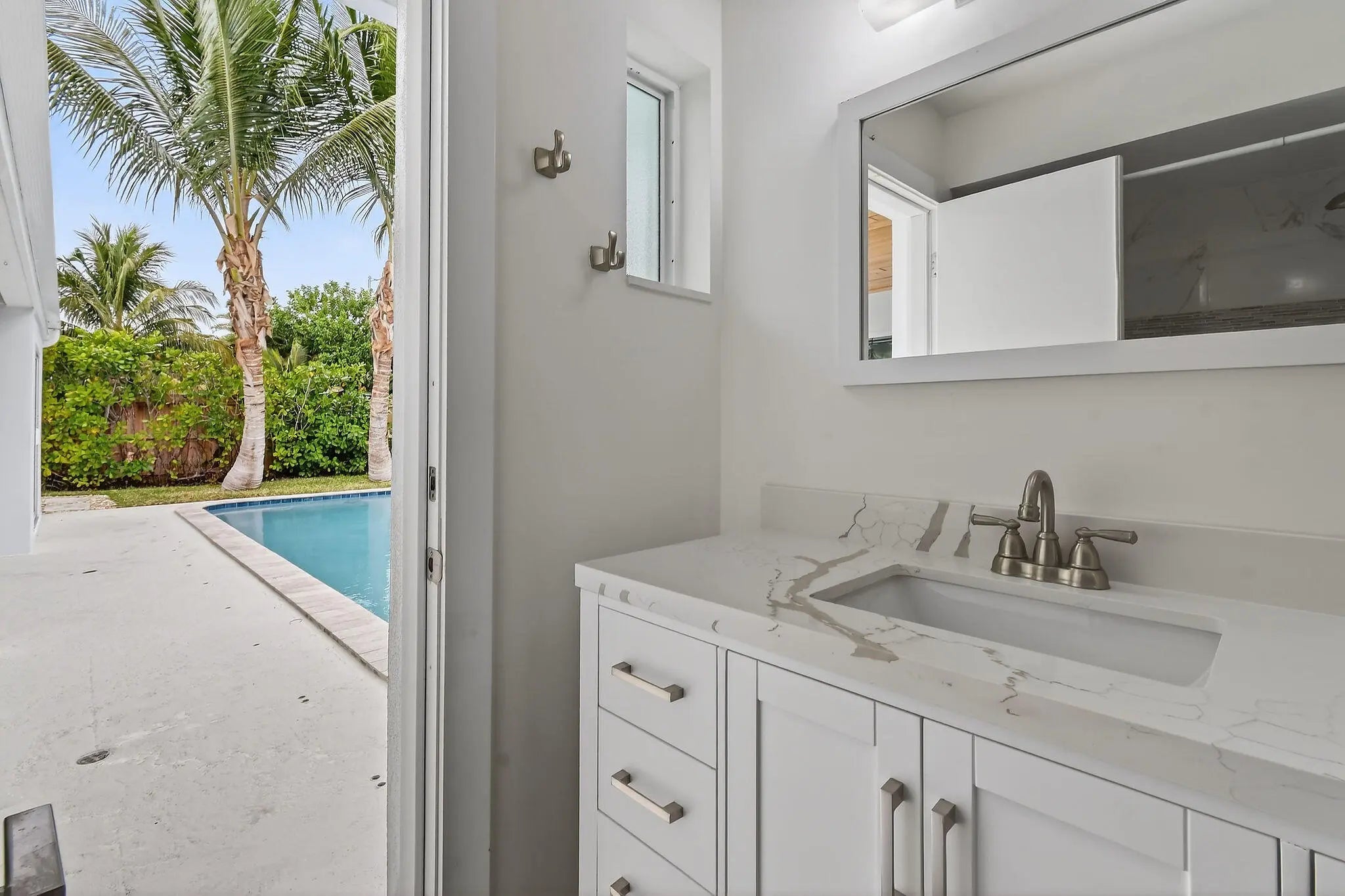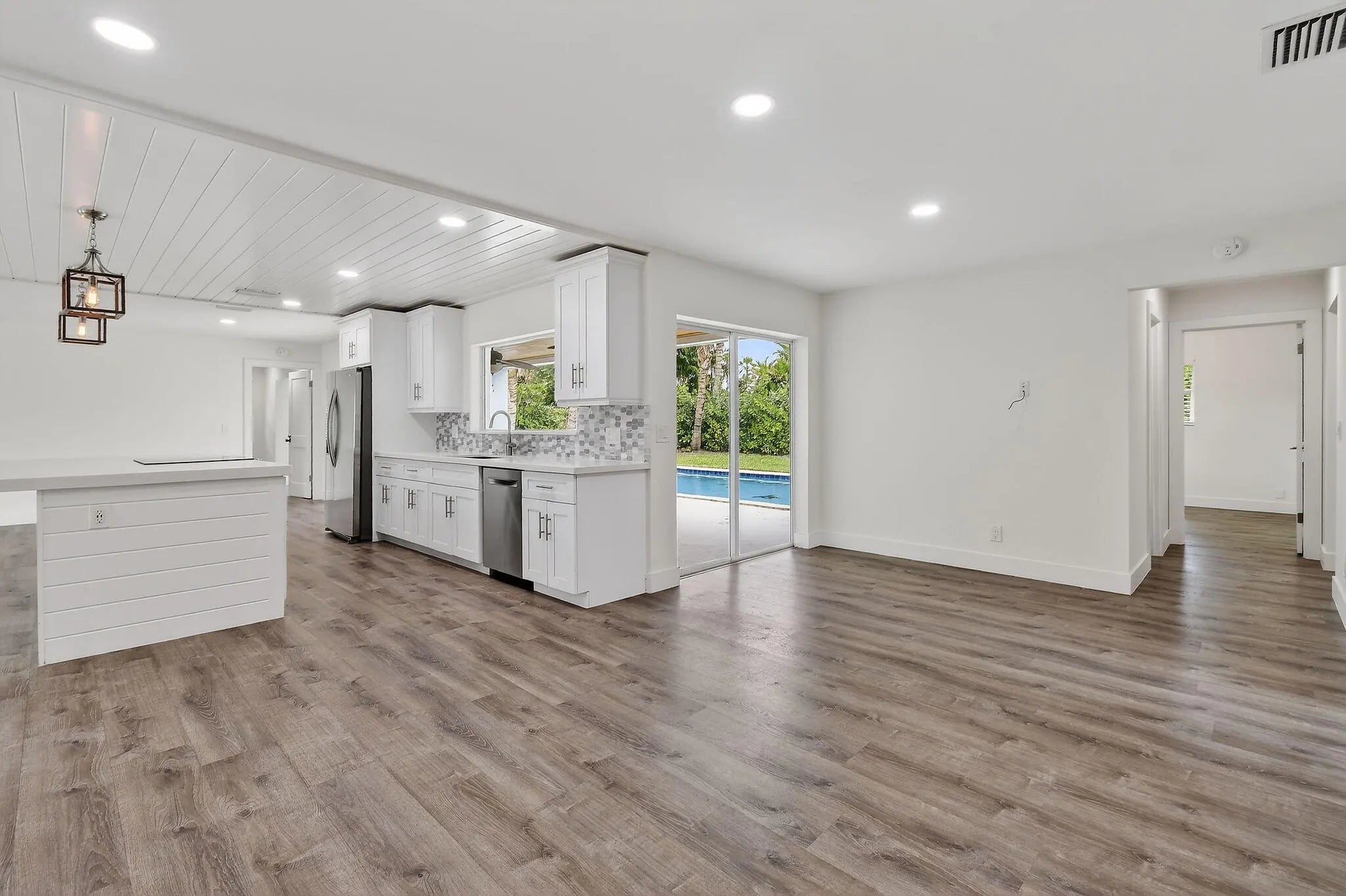 Life in Bermuda Terrace is all about ease, access, and enjoying the outdoors and 19228 Caribbean Court captures that spirit beautifully. This renovated 4 bedroom, 2 bath CBS pool home sits on a spacious lot in one of Tequesta's most desirable neighborhoods, offering both comfort and peace of mind. Recent upgrades include impact windows and doors, a metal roof, brand new AC, a whole house 500 gallon generator, and a two car garage. Inside, the home flows effortlessly, with a well-appointed kitchen featuring quartz countertops and stainless steel appliances that opens naturally to the living spaces. A large interior utility room with washer and dryer adds thoughtful functionality. The outdoor space is where this home truly shines. Fresh landscaping and newly laid sod frame a private pool and covered patio with tongue-and-groove ceilings, an ideal setting for morning coffee, evening dinners, or entertaining guests year-round. Bermuda Terrace offers a rare opportunity for those who love life on the water, with access to a gated boat ramp, tiki hut, and picnic area (annual fee), as well as wet and dry slips (fee-based, waitlist). From here, enjoy direct access to the Loxahatchee River, Intracoastal Waterway, Jupiter Inlet, and the Atlantic Ocean. Just a short distance from excellent schools, local dining, shops, beaches, and parks, this home delivers the best of Tequesta living in an established, welcoming community.